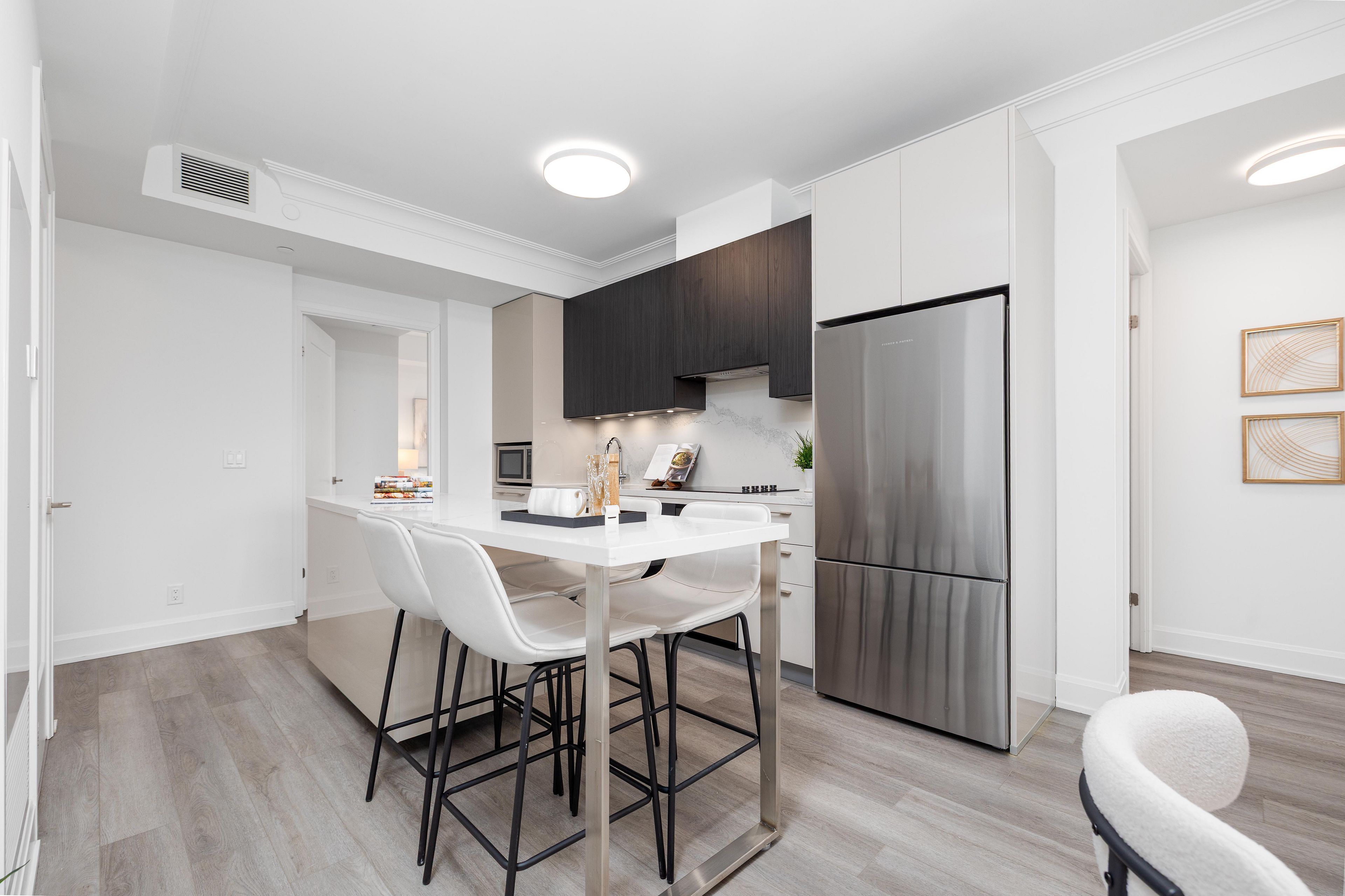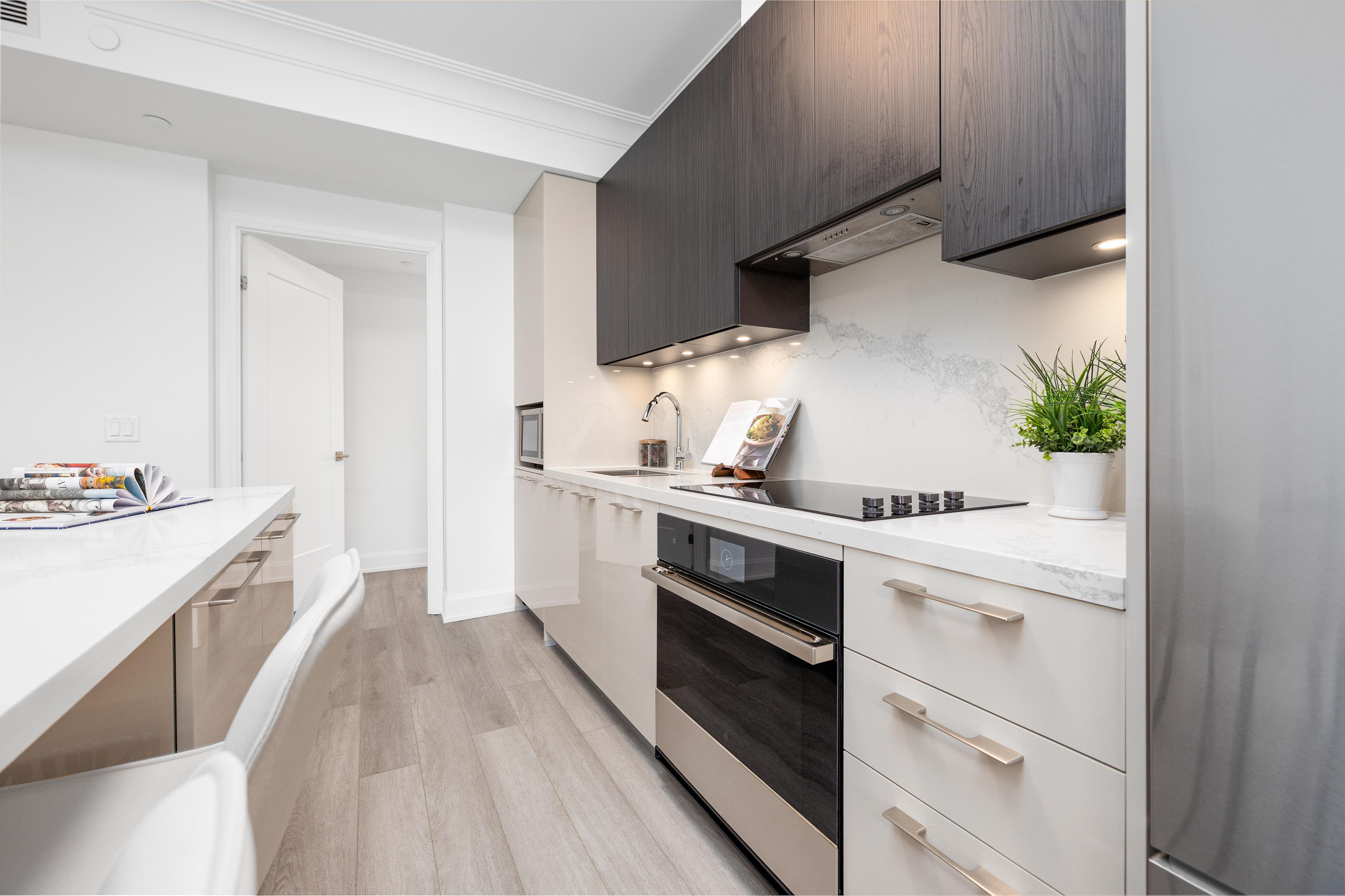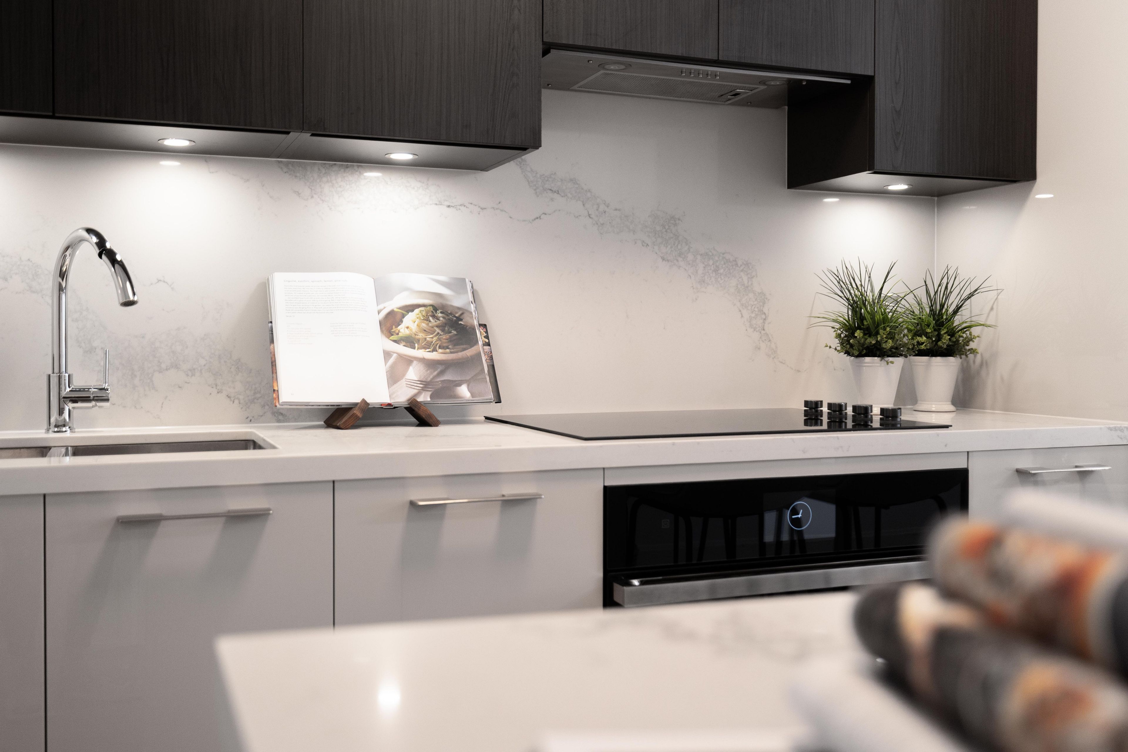 • Modern kitchen with quartz countertops and high-end built-in appliances.