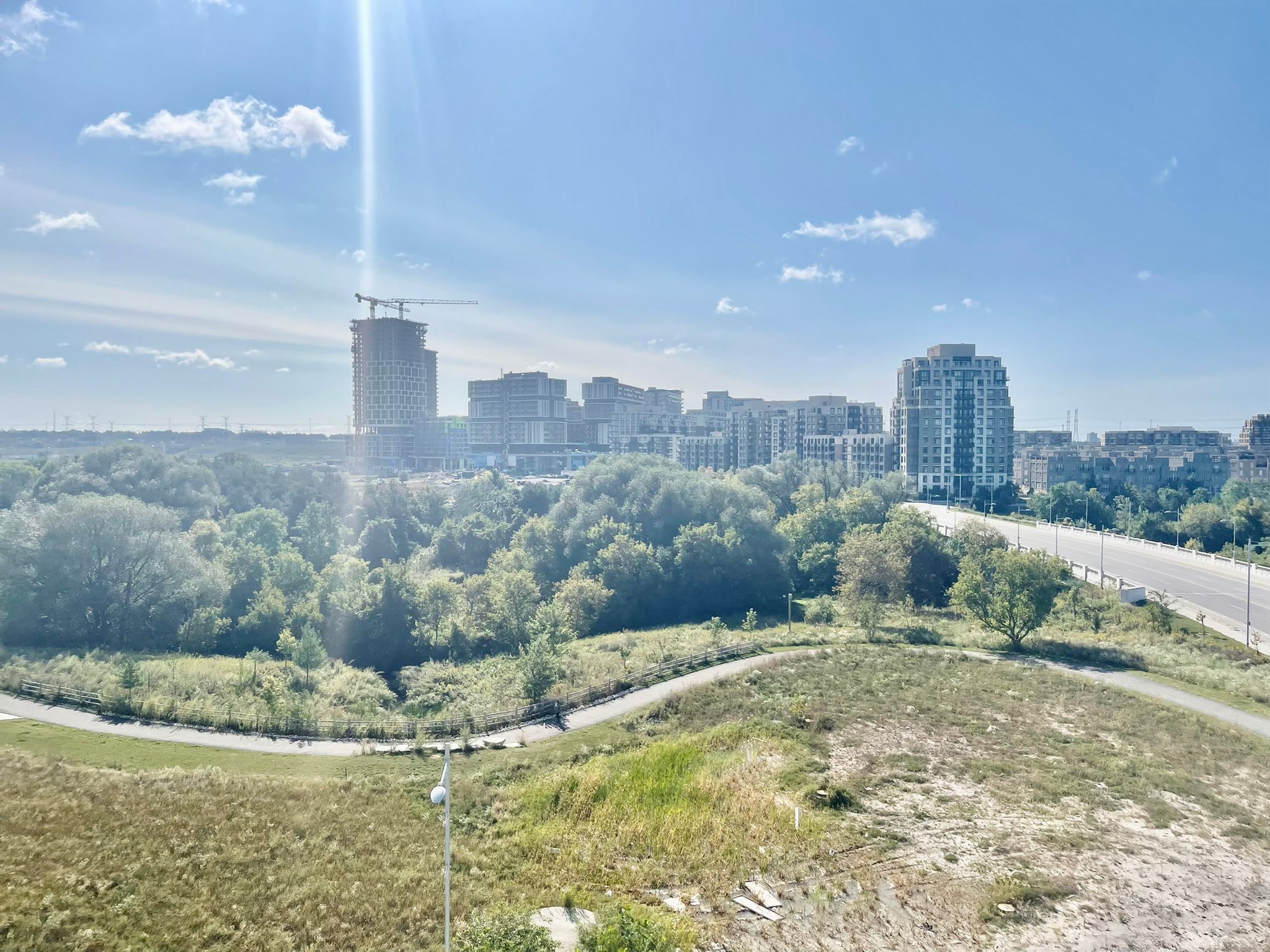 Available immediately!! Wow!! Rare over 1200 sqft 3 beds(all 3 ensuites) 4 baths(guess washroom)+ parking+locker+huge 300 sqft balcony. Stunning riverview condo in the vibrant heart of markham. Spacious suite offers over 1,200 sq ft of well-designed living space, featuring 3 bedrooms, each with its own ensuite bathroom, plus a convenient guest powder room-ideal for privacy and modern living. Soaring 9-ft smooth ceilings and laminate flooring throughout create a bright and contemporary atmosphere, enhanced by over $80k in premium upgrades, including crown moulding. The stylish kitchen is equipped with quartz countertops, an extended upper cabinet design, a modern backsplash, and premium built-in appliances including a stove, oven, and dishwasher, with a large island that functions as a breakfast bar. Step out onto the impressive nearly 300 sq ft wrap-around balcony and enjoy unobstructed south-east views overlooking the park, ravine, and rouge valley creek, with abundant natural sunlight throughout the day. The unit includes two parkings and a locker, a valuable asset in this prime location. Residents enjoy public transit at their doorstep, including viva and go stations, with easy access to hwy 7, 404, and 407. Just minutes to no frills, whole foods, lcbo, cineplex, downtown markham, top-rated schools, future york university campus, and a wide selection of restaurants and retail. Rogers wifi included. Don't miss this rare opportunity to own a luxurious, amenity-rich home in a highly sought-after community.