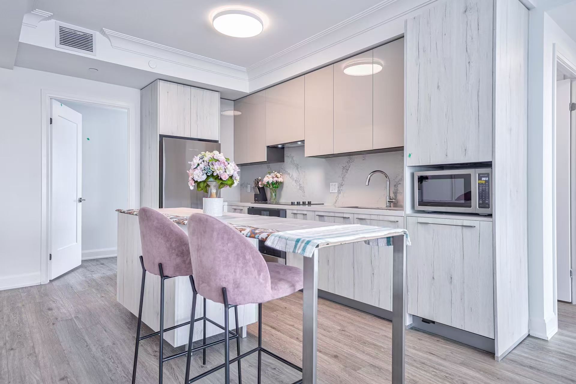 • Spacious kitchen shared with two roommates, featuring high-end appliances.
