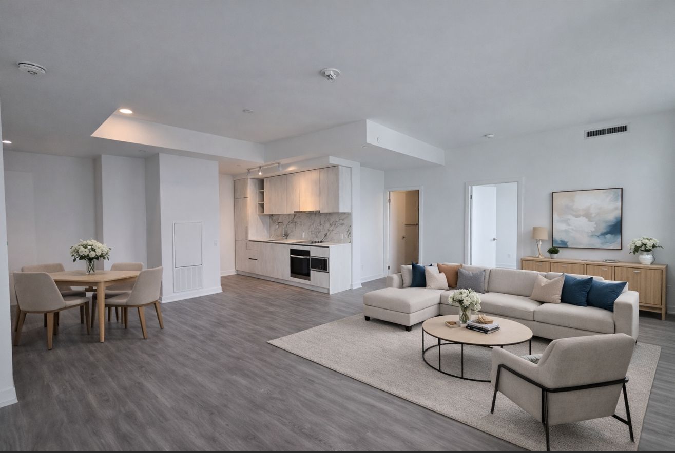 • Modern kitchen features built-in appliances and soft-close cabinetry.