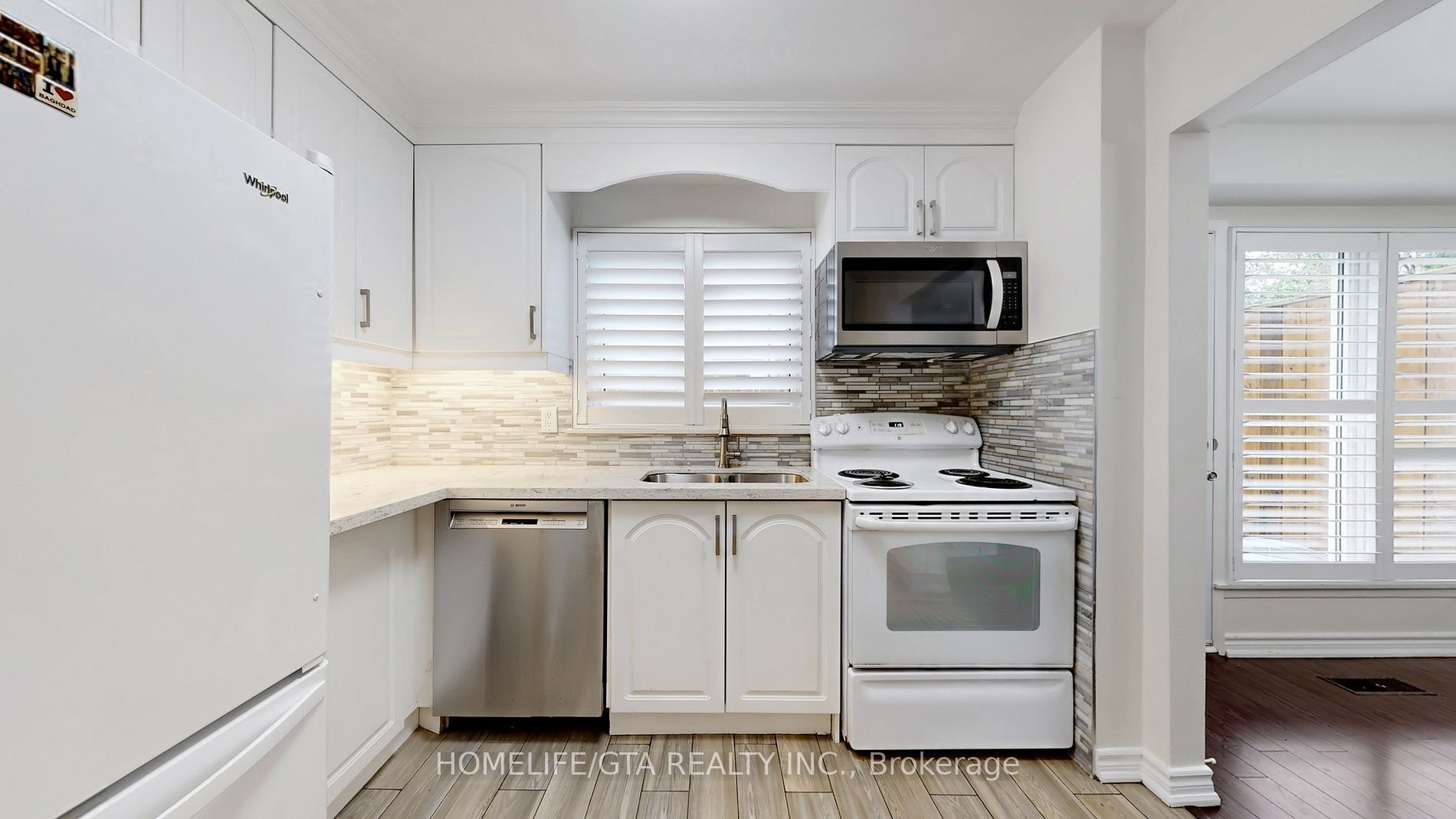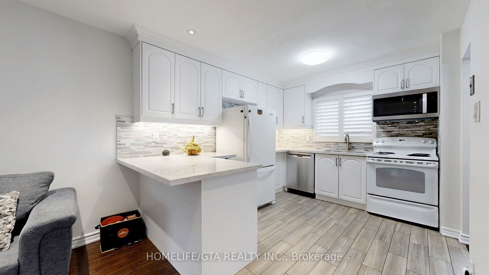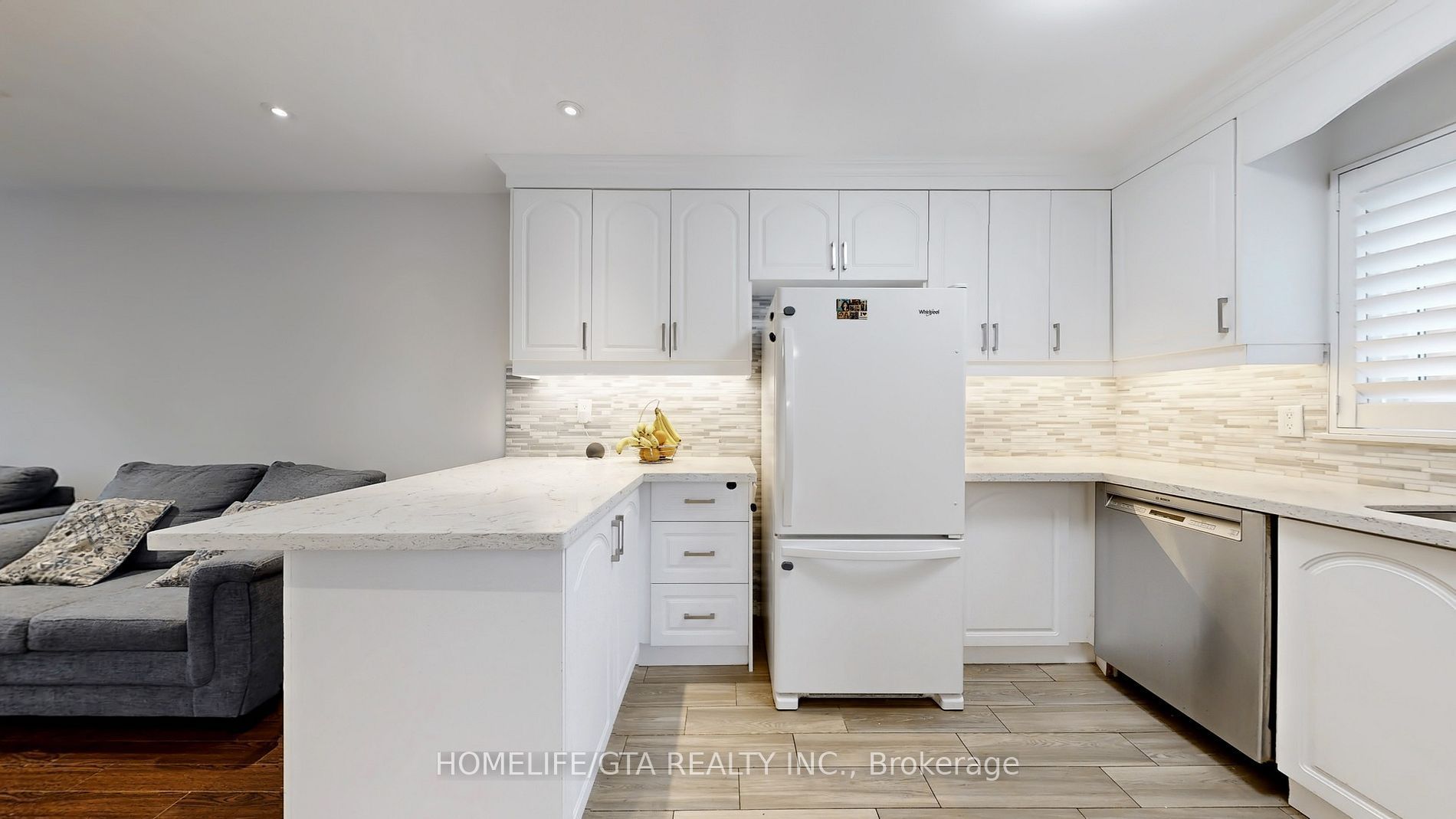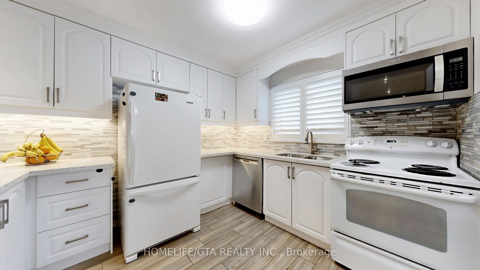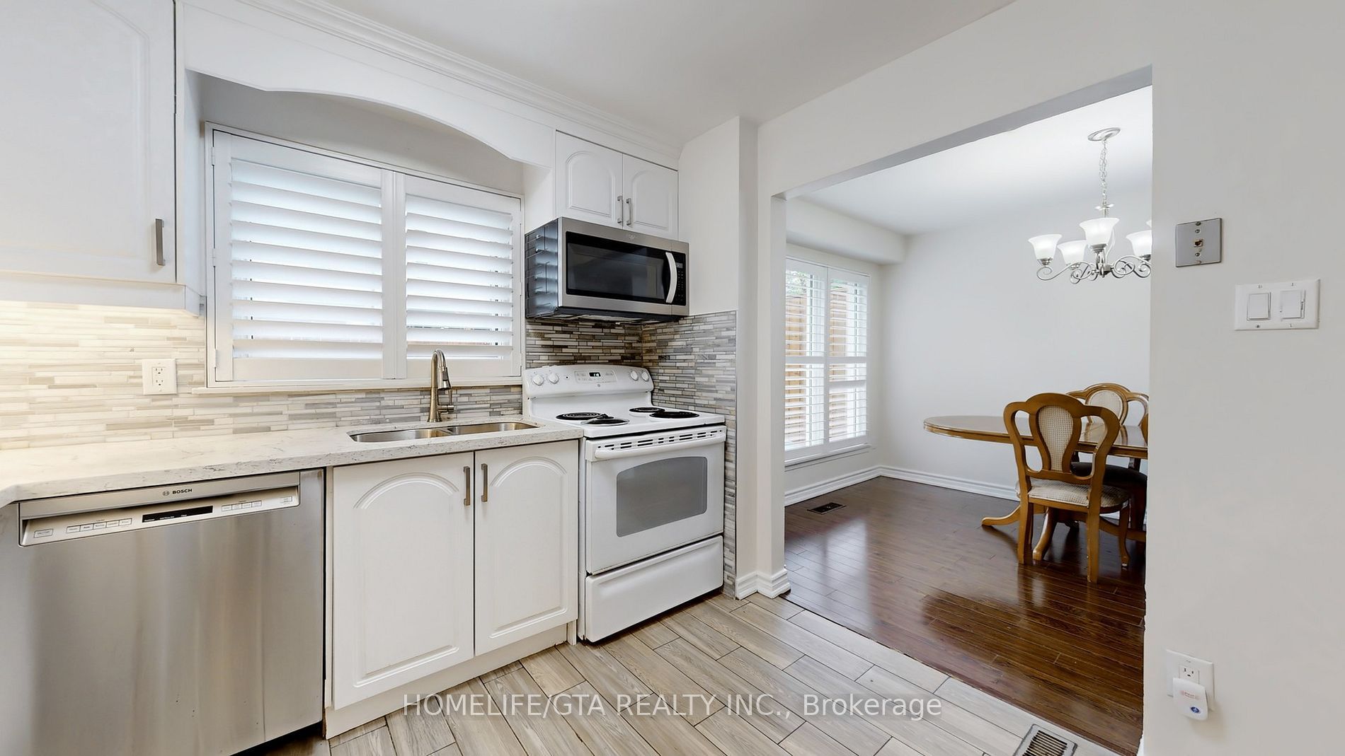 • Updated kitchen with quartz counters and stylish backsplash.