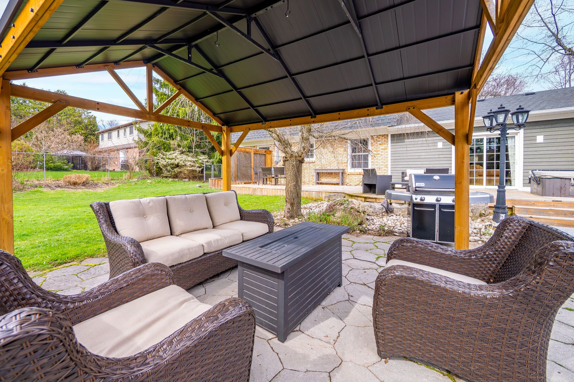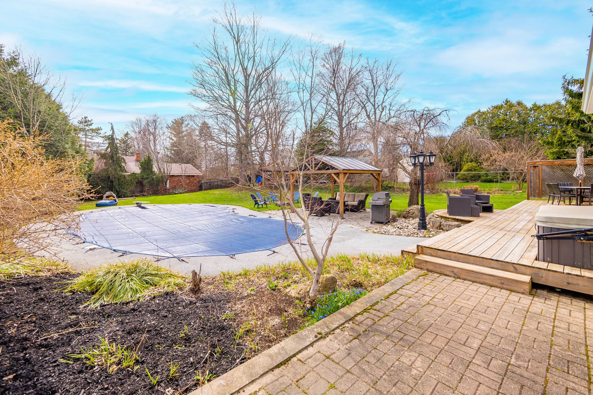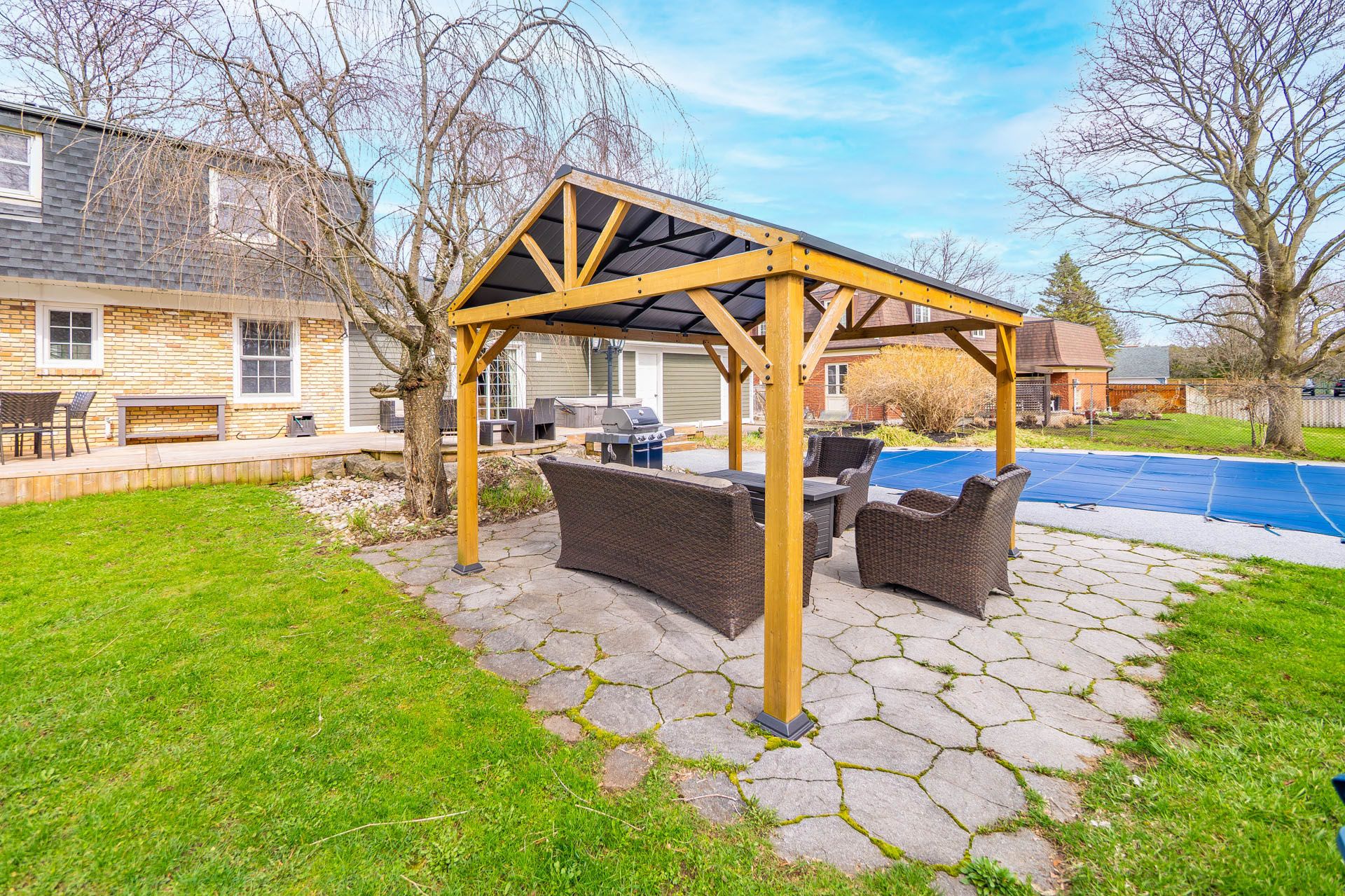 • Private backyard retreat with a pool, deck, and new gazebo for relaxation.
