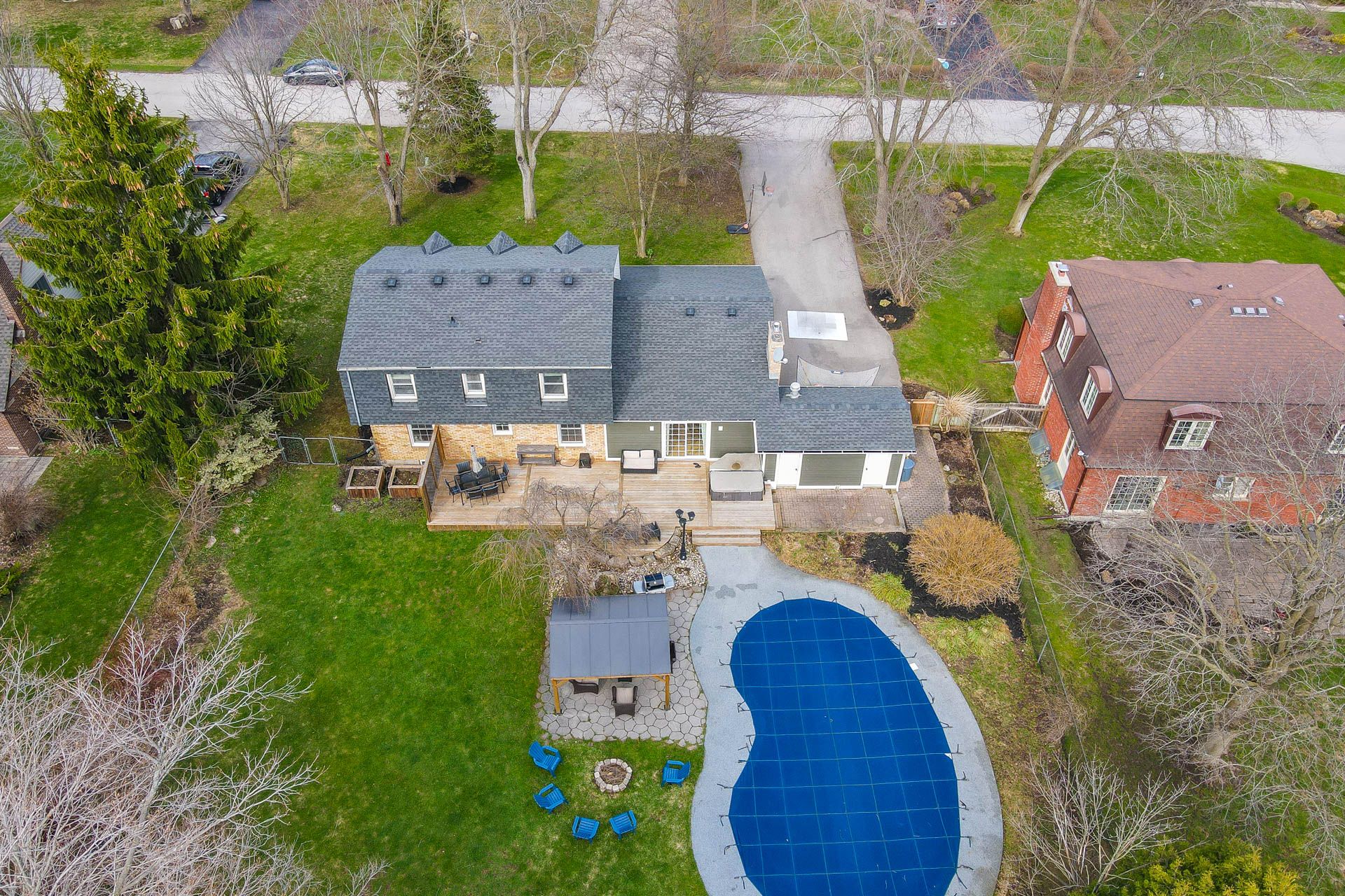 Welcome to wildan estates, a sought-after enclave known for its exceptional sense of community, where you get a true neighbourhood feel, unlike anywhere else. This fully updated home, set on a 0. 5-acre lot, is ideally located just steps to parks and scenic trails. From the moment you arrive, the curb appeal is undeniable with cape cod natural wood siding, along with updated eaves, fascia, soffits, and exterior pot lights that enhance both style and function. Inside, the main floor has been completely renovated to offer a bright, open-concept layout ideal for everyday living and entertaining. The custom kitchen and dining space features stunning cabinetry by the willow woodshop, complemented by elegant hanstone calacatta gold quartz countertops, a sprawling 11' island complimented by new high end appliances. Hardwood flooring flows seamlessly throughout the main level, accented by pot lights and a cozy gas fireplace overlooking your serene backyard. Upstairs, you'll find 4 bedrooms and two beautifully renovated bathrooms! Extra updates include updated stair runners and a refreshed mudroom with an updated window and door. Step outside to your fully fenced private backyard retreat, complete with a spacious wood deck, a rubbercrete pool surround, and a concrete pool that has been recently professionally repainted, creating a fresh and inviting space for summer enjoyment. The new cedar gazebo and hot tub offer the perfect place to unwind or entertain. This move-in ready home offers the perfect blend of modern upgrades, functional living space, and outdoor enjoyment, an exceptional opportunity for buyers seeking comfort, style, and a lifestyle close to nature. Conveniently located between hamilton, guelph, cambridge, & milton. There are two large sheds (15'x10') and (8'x12') and an estimated cost for a future garage has been explored.