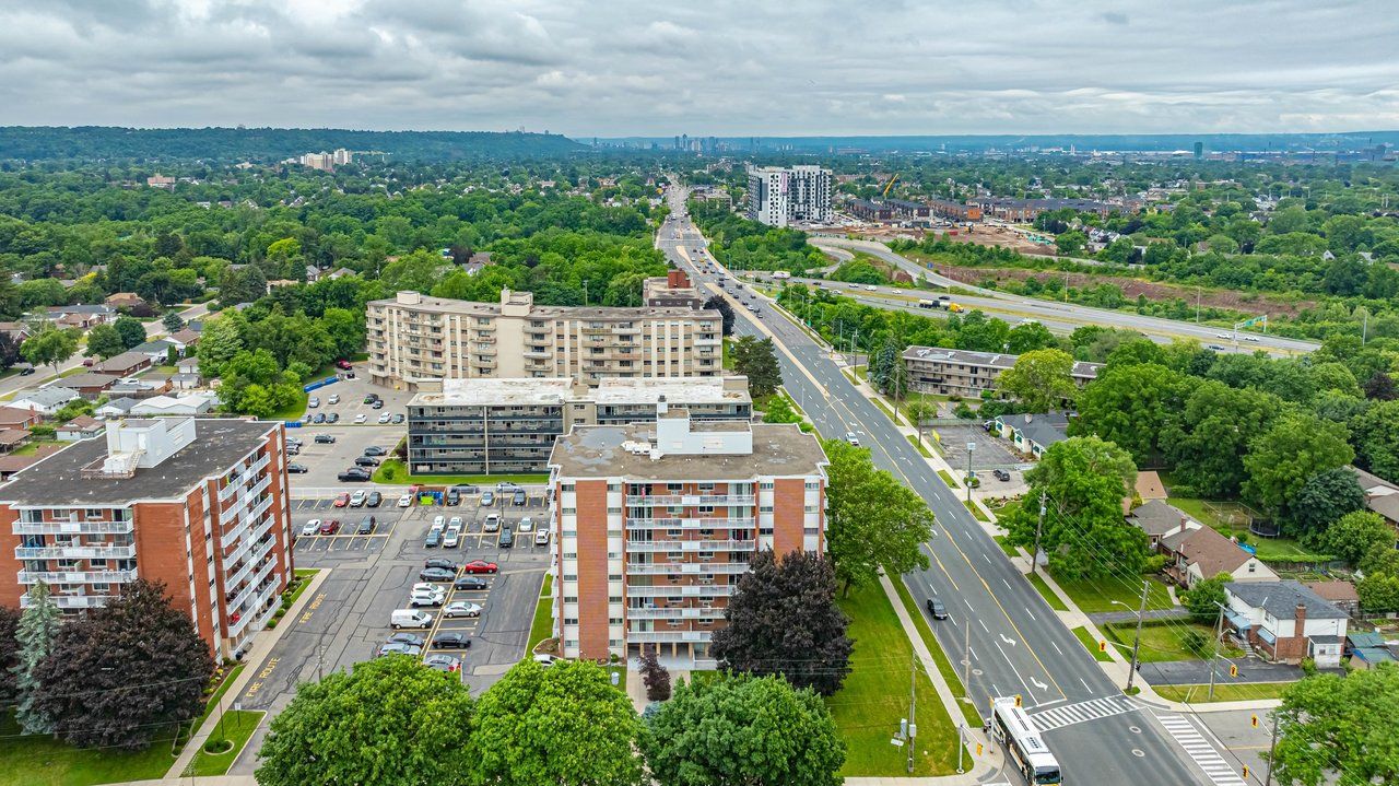 Stop renting, start owning: incredible value in this dream condo! Meticulous penthouse level condo with breathtaking views, all for less than what you're currently paying in rent! This isn't a pipe dream; it's a reality with all utilities included in the condo fees. ( rare find) spacious design, flooded with natural light. The heart of this condo is the spacious eat-in kitchen, featuring, shaker style cabinets & a stylish ceramic backsplash. Cooking & entertaining will be a joy with the convenience of led pot lights & a double sink. Living area and bedroom with hardwood flooring complemented by newer baseboards, trim, doors, & casements. Storage is no longer an issue with custom closets, including a generous double closet in the front entrance & an expansive his-and-hers (8-foot) closet in the master bedroom. The modern 4-piece bath boasts elegant ceramic tile, providing a spa-like experience. But the appeal doesn't stop there. Step out onto the 23' x 4' balcony & soak in the amazing panoramic views of hamilton & the bay. Enjoy your morning coffee or evening cocktails while taking in the stunning scenery. And convenience? You've got it! Just minutes to qew, transit, shopping, specialty shops and grocery stores, premium parking spot right in front of the building (#130) makes coming and going a breeze. This condo is truly a rare find, especially considering the utilities & basic cable are included! Say goodbye to those surprise bills & hello to predictable monthly expenses. Don't miss this opportunity! Stop throwing your money away on rent and invest in your future.