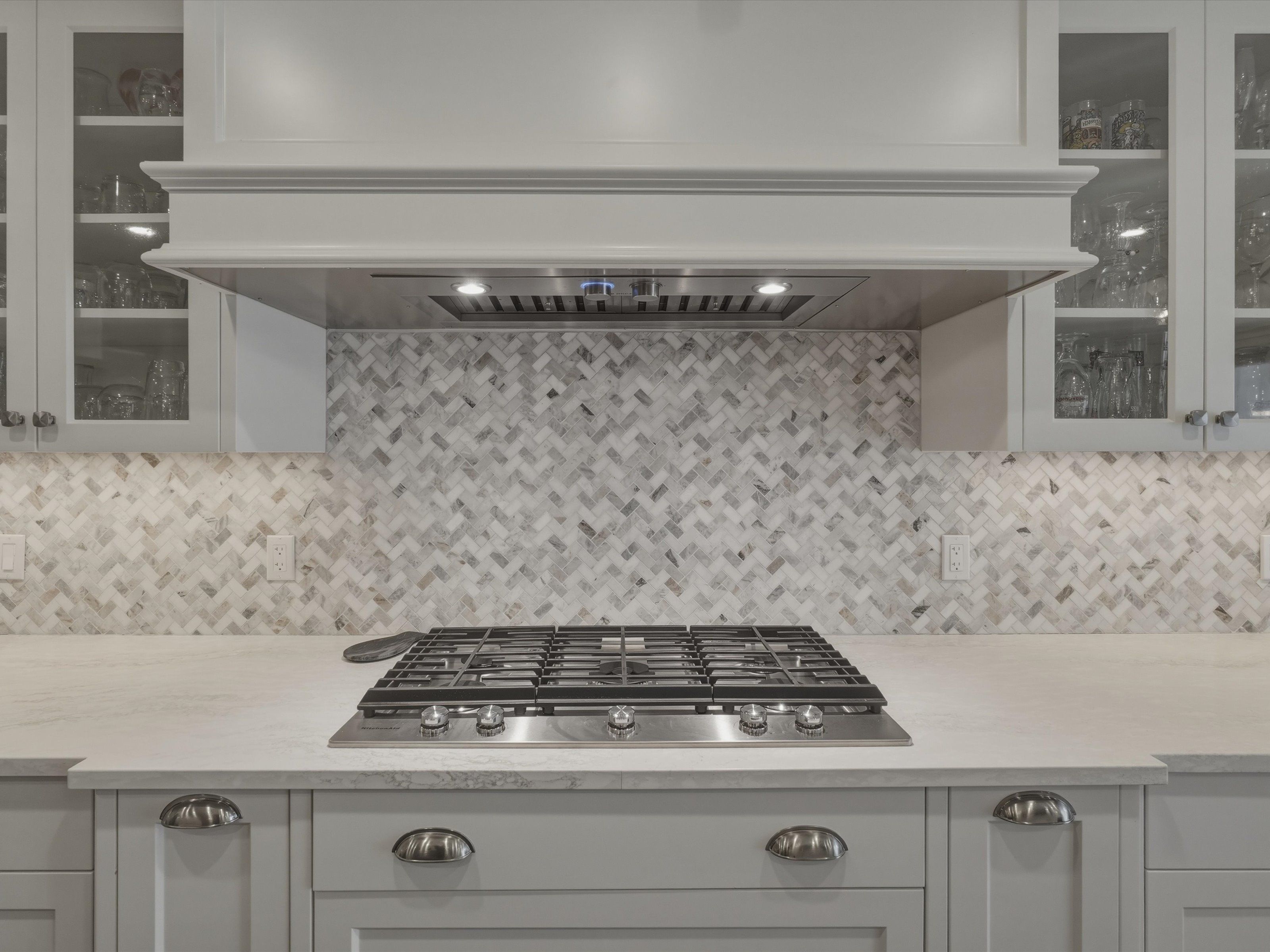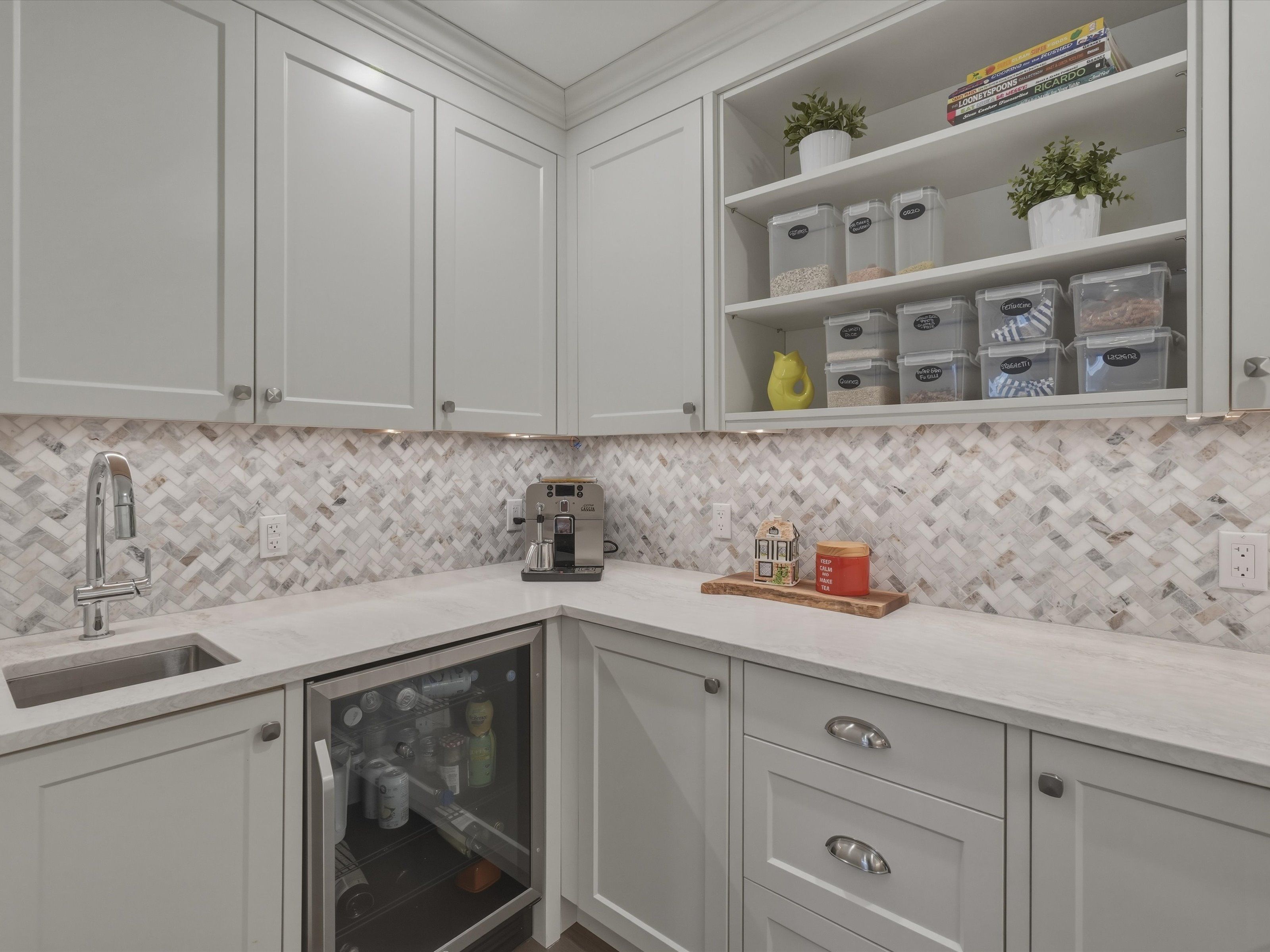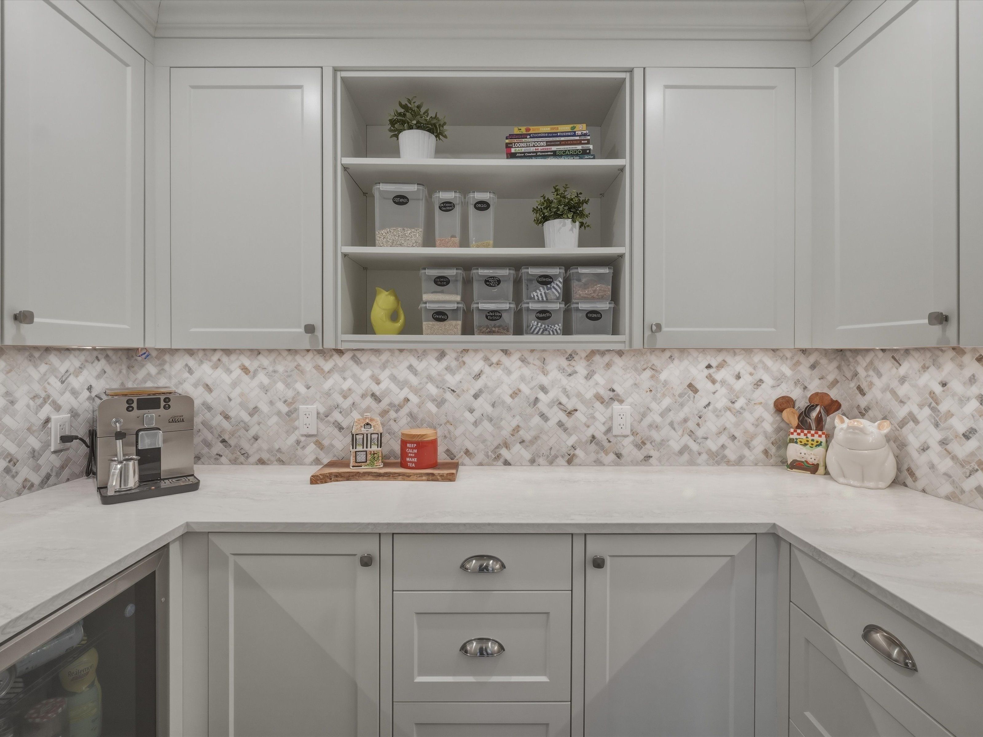 • Custom kitchen with premium appliances and a walk-in pantry for convenience.