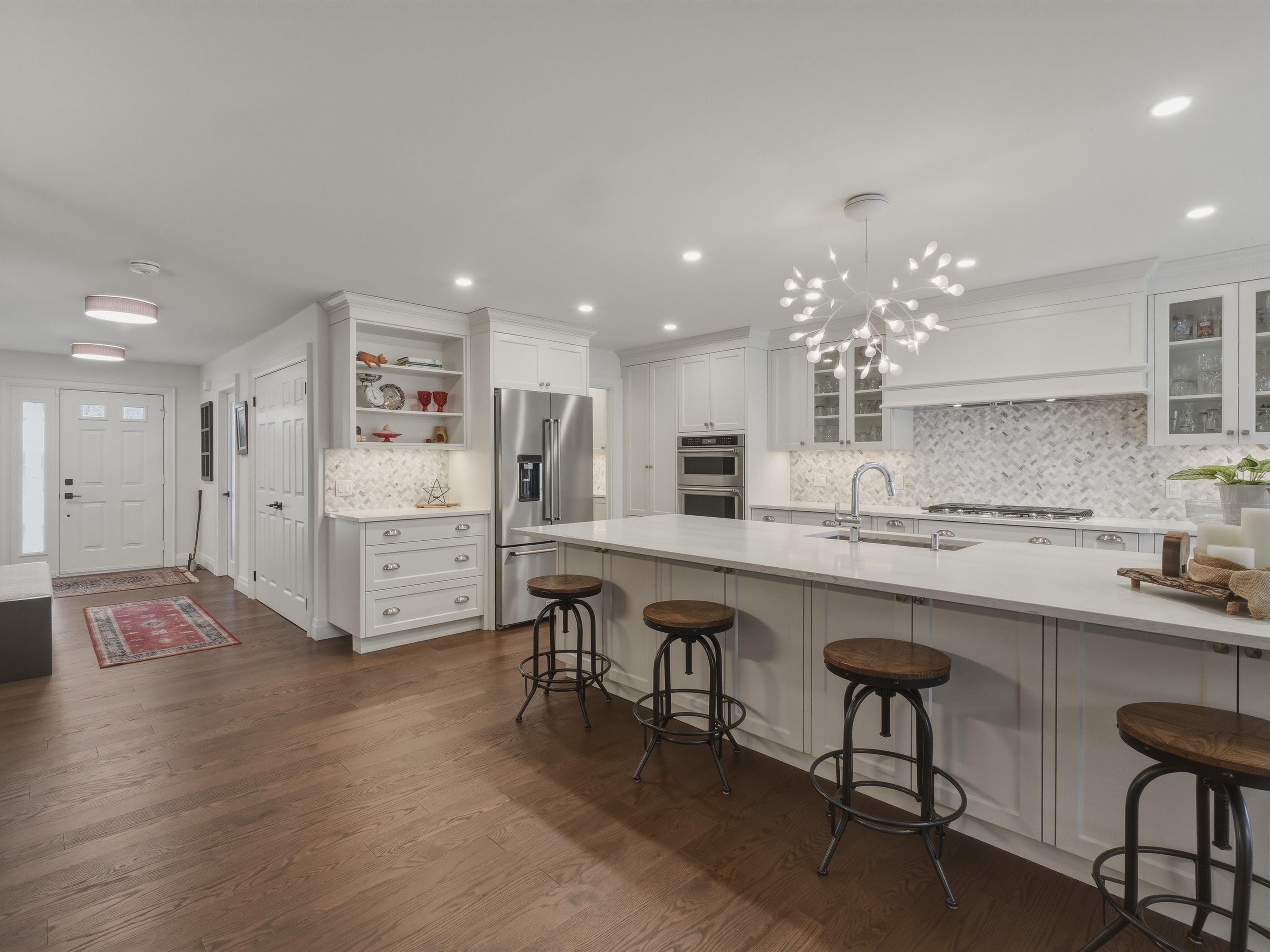 Tucked into the sought-after pineridge community, this beautifully reimagined home is the definition of turn-key muskoka living, where thoughtful design meets everyday comfort & elevated style. The curb appeal sets the tone with a maintenance-free trex composite front porch, leading into a bright, refined interior featuring smooth ceilings, upgraded trim, and wide-plank red oak flooring throughout. Every detail has been carefully curated to create a space that feels both luxurious & welcoming. At the heart of the home is a show-stopping custom kitchen designed for entertaining. Complete with cambria quartz countertops, a marbled herringbone backsplash, under-cabinet lighting, and premium kitchenaid appliances including a built-in oven & microwave, this space blends function & style effortlessly. A walk-in pantry with its own sink and bar fridge adds convenience and a touch of indulgence. The living area is equally impressive, anchored by a sleek valor 60" electric fireplace and a custom solid walnut tv cabinet, creating the perfect space to unwind after a day in muskoka. The primary suite offers a private retreat, featuring a walk-in closet with custom built-ins and a spa-inspired ensuite with heated floors, solid walnut cabinetry, cambria quartz counters, a curb-less glass shower, and a toto washlet bidet seat-bringing a boutique hotel feel right into your daily routine. Three beautifully finished bathrooms, each with tile flooring & high-end finishes, plus a thoughtfully designed laundry room with raised whirlpool washer & dryer, every inch of this home has been optimized for comfort and ease. Step outside to your granite flagstone backyard patio, ideal for summer evenings. Located just minutes from downtown gravenhurst, with easy access to shops, dining, trails, & the waterfront, this home offers the perfect balance of modern living and muskoka lifestyle. Extensively upgraded, meticulously finished, and completely move-in ready-this is one you don't want to miss.