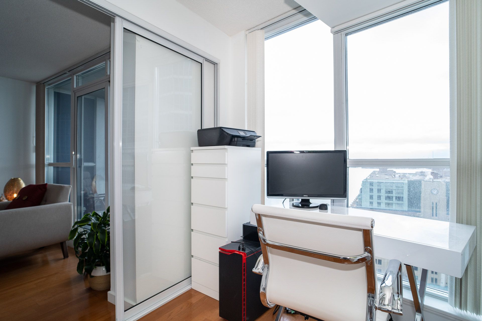 • Versatile enclosed solarium perfect for office or guest space.