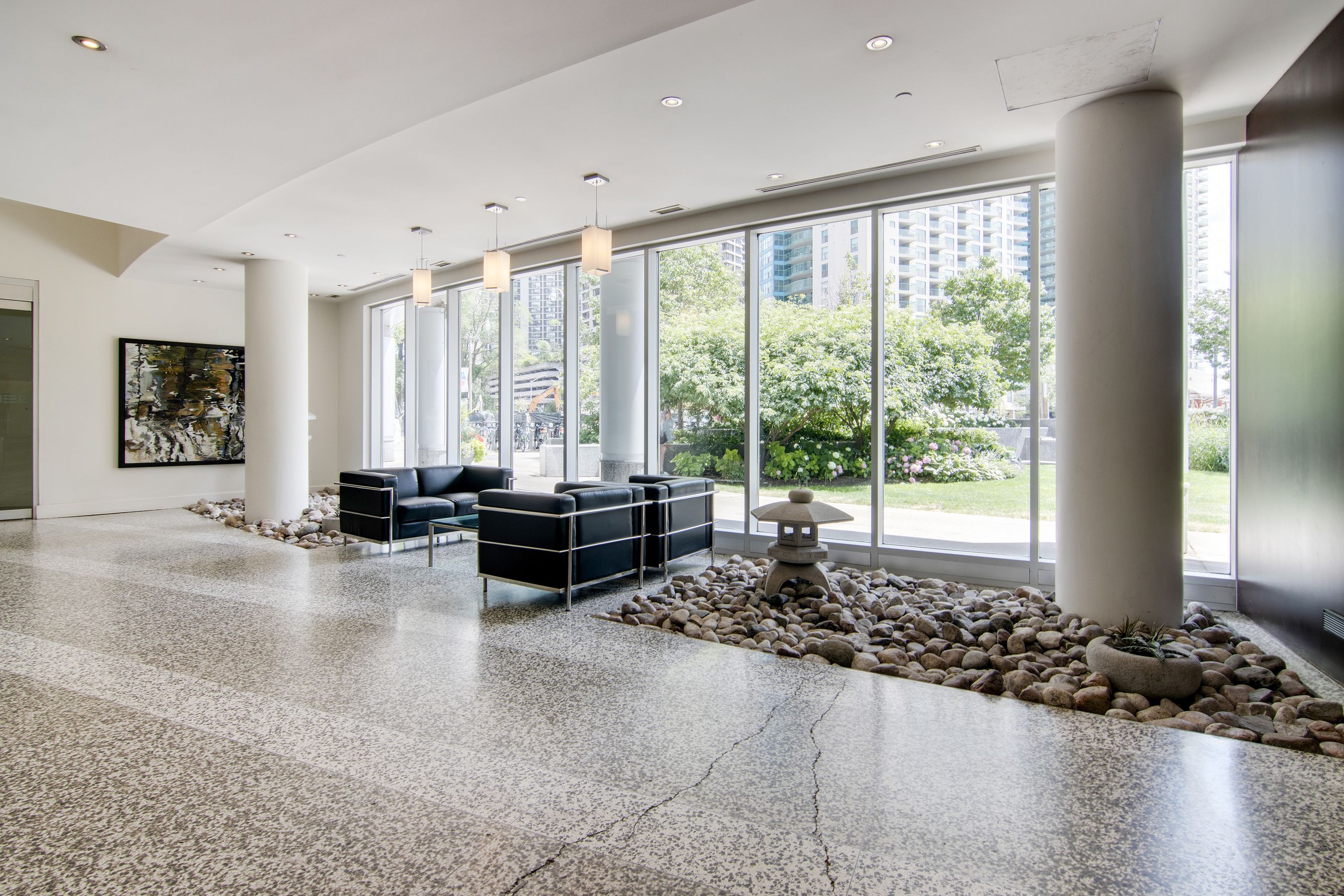 • Enjoy high ceilings and expansive floor-to-ceiling windows.