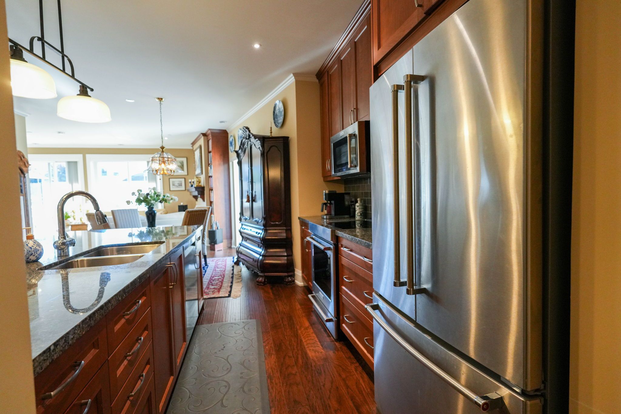 • Open living space features hardwood flooring and modern design elements.