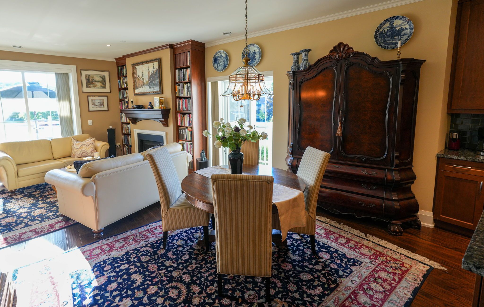 • Walkable location near theatre, library, shops, and restaurants.
