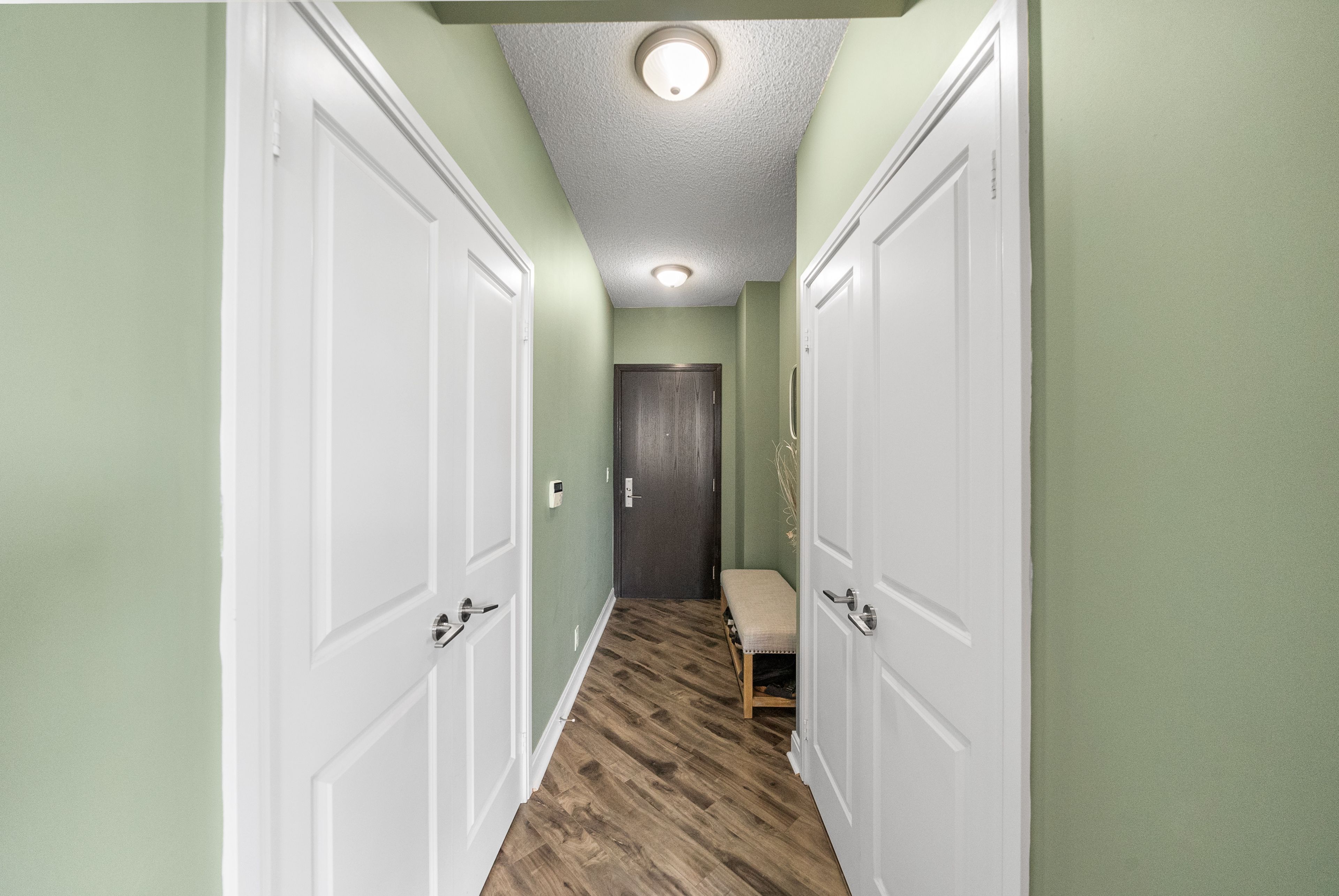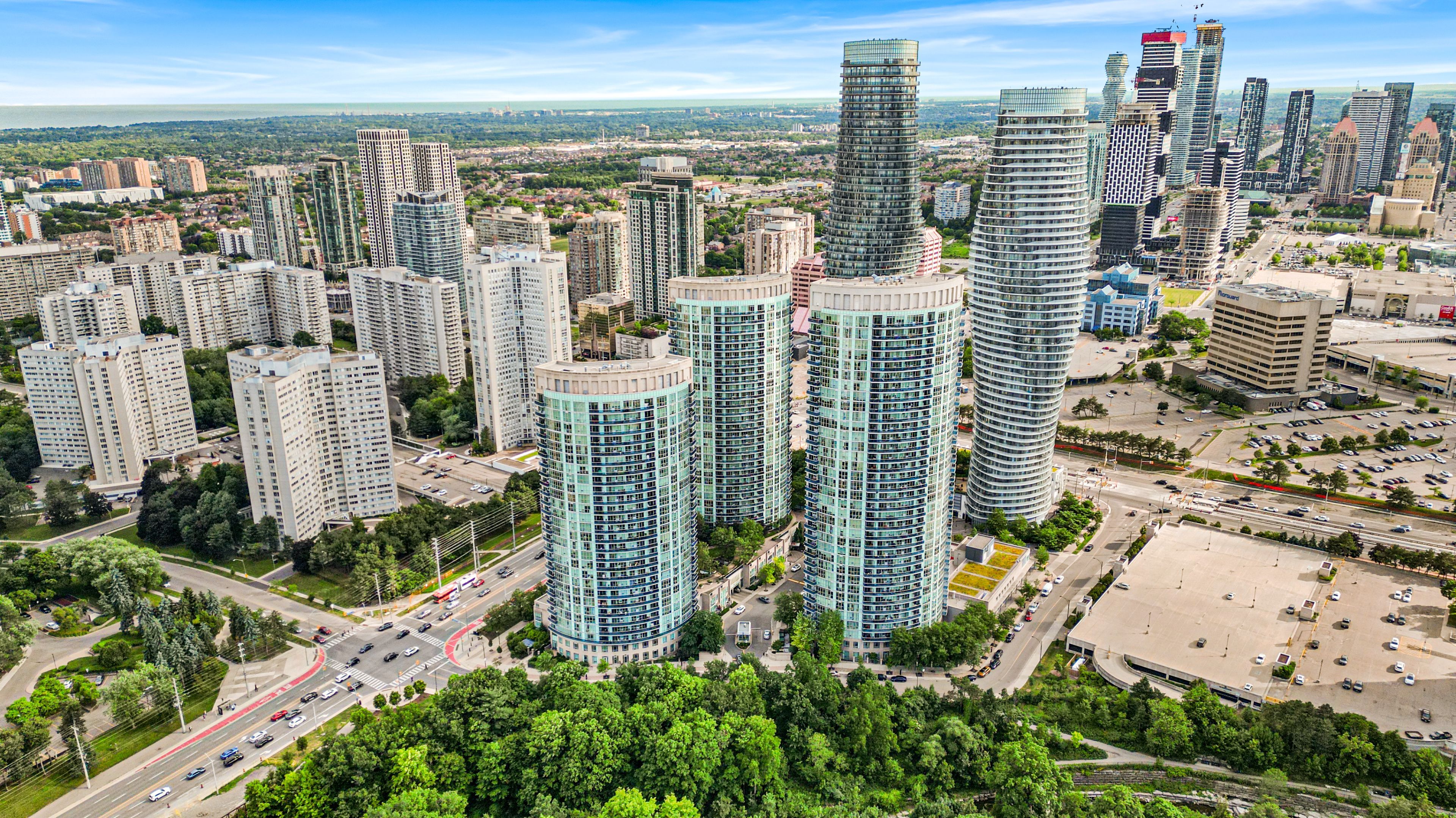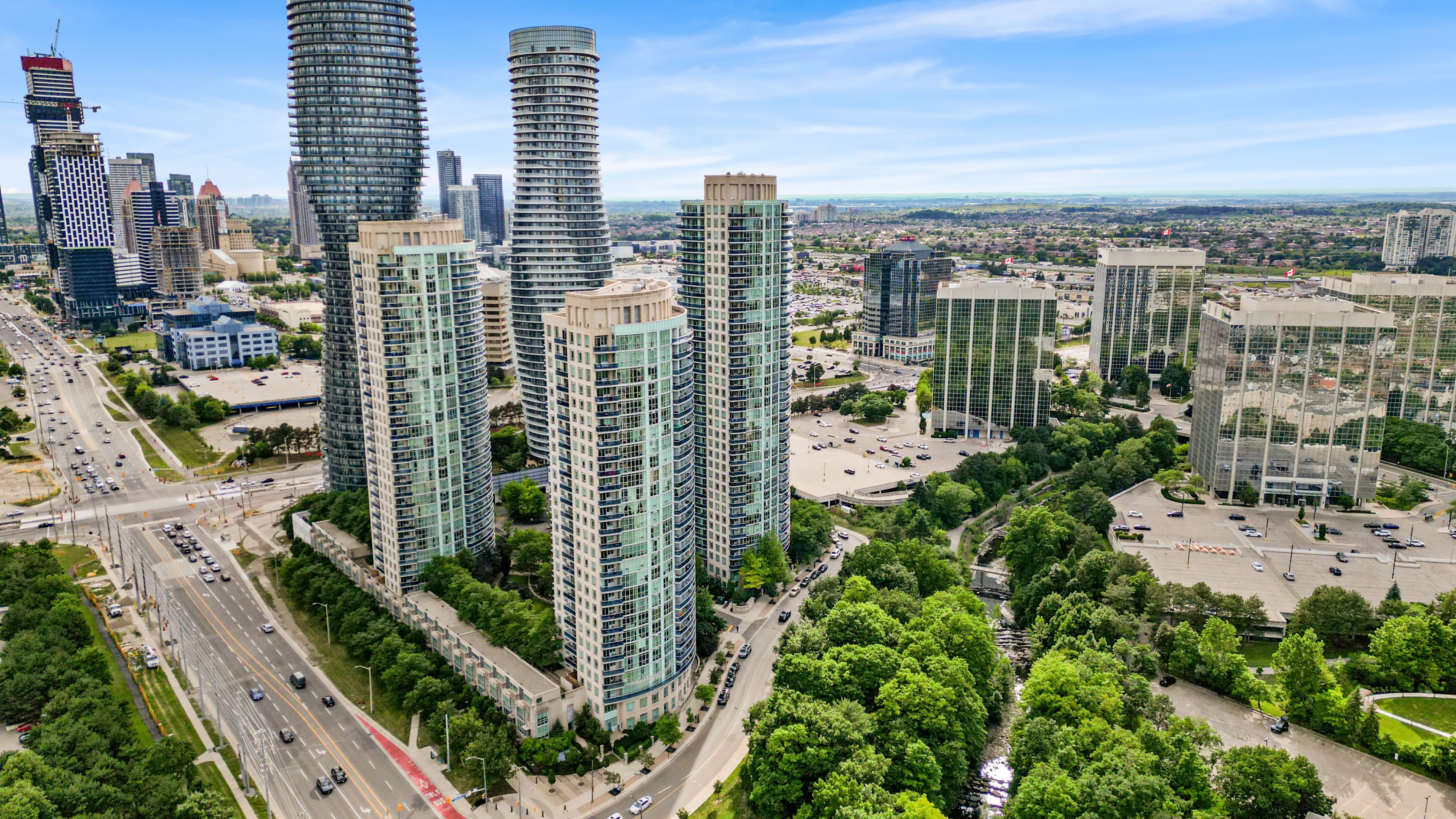 Welcome to this bright and spacious corner unit 2-bedroom, 2-full bathroom condo at the iconic 80 absolute ave, offering a rare and highly sought-after 2-car tandem parking plus a private locker and open balcony. Water and heat included in maintenance. This well-designed split-bedroom layout provides excellent flow and privacy, ideal for professionals, couples, or small families. Floor-to-ceiling windows invite natural light and offer tranquil views of the lush green canopy, creating a serene backdrop year-round. This unit has been recently renovated with new flooring, fresh paint and updates made to the bathrooms and new appliances (dishwasher and stove). Located in the heart of downtown mississauga, you're just minutes from square one shopping centre, fine dining, entertainment, and the future lrt line, with easy access to hwy 403, 401, and qew perfect for commuters. Residents of this award-winning building enjoy unparalleled amenities, including indoor and outdoor pools, a full fitness centre, squash and basketball courts, theatre room, running track, guest suites, party rooms, 24-hour concierge, and more. Only a handful of units in this building offer a 2-car tandem parking space plus your own private locker directly behind your parking spaces. This unit faces absolute ave and does not face the busy street, offering quiet and relaxing views from your private balcony. Don't miss your chance to live in one of mississauga's most prestigious and amenity-rich communities!