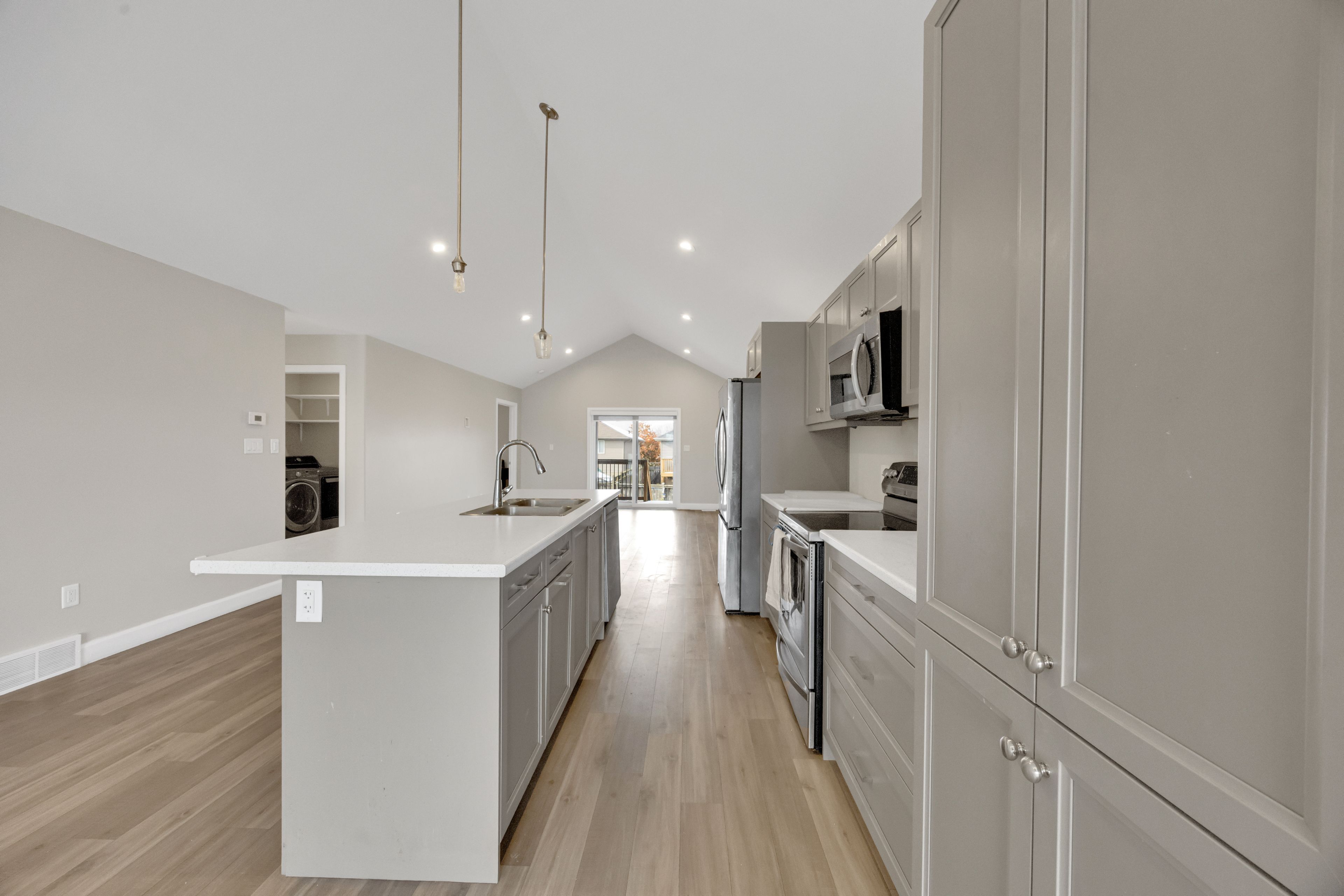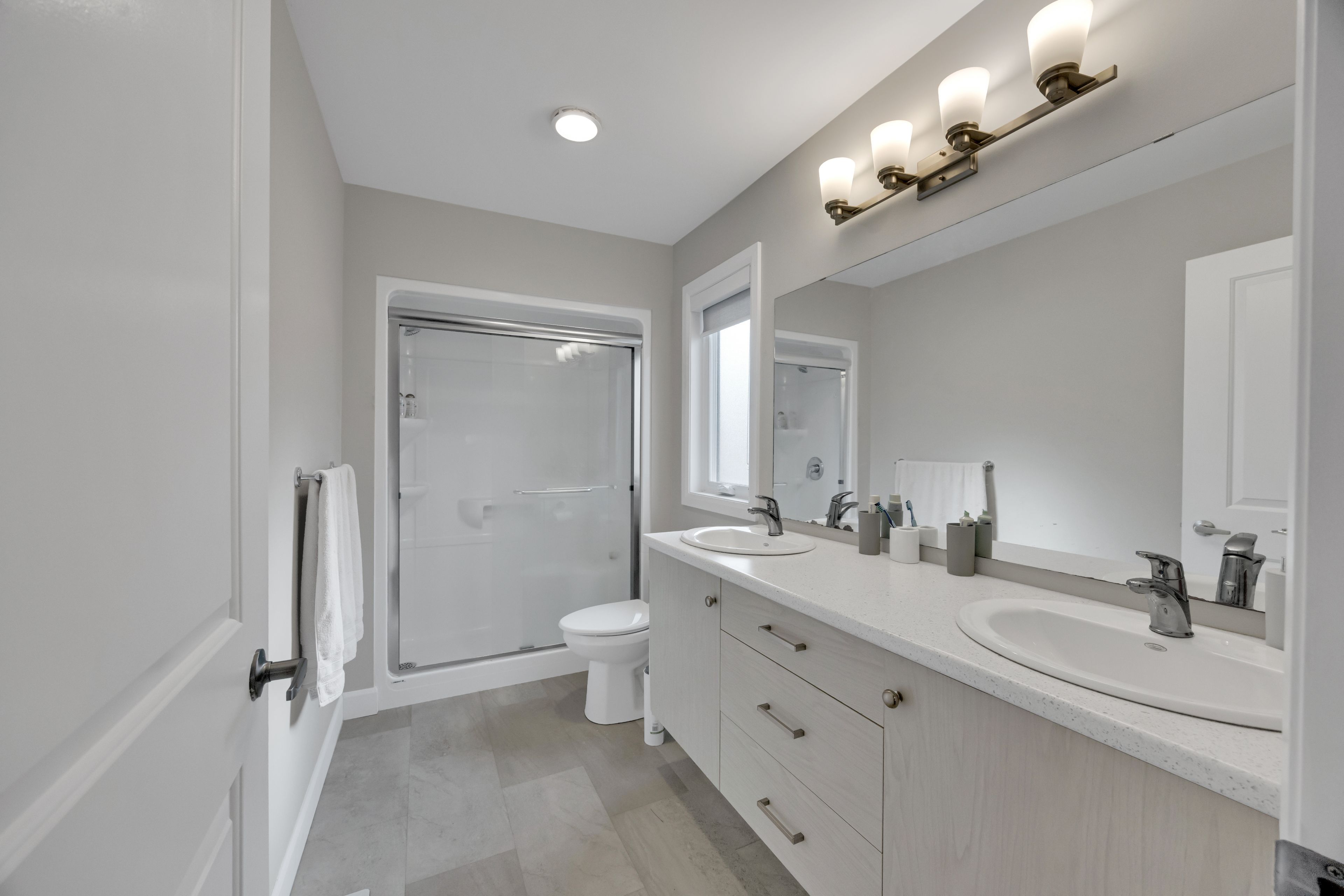 Discover this beautifully designed rare find, 4-bedroom, 4-bathroom home, offering approximately 2,400+ sq. Ft. Of finished living space across two bright and spacious levels. Built just three years ago, this home perfectly blends modern comfort and functionality. Step inside to an open-concept main floor featuring a bright living and dining area, and a modern kitchen with a deep double-door pantry - ideal for storage and convenience. Each of the four bedrooms is filled with natural light and offers generous closet space, while the primary suite boasts a private ensuite and a large walk-in closet. A separate laundry room is available on both floors, adding extra convenience. The fully finished basement offers incredible versatility with 2 bedrooms, 2 full bathrooms, a modern kitchen, and its own laundry area - perfect as an in-law suite or rental potential. Enjoy seamless indoor-outdoor living with patio doors leading to a covered wooden deck and a private backyard, ideal for entertaining or relaxing. Additional features include: attached garage, drywalled and painted, with inside entry and automatic door opener 240-volt outlet in garage for electric car charger. Wide concrete driveway accommodating up to 6 vehicles prime location - minutes from highway 401, close to parks, schools, walking trails, and everyday amenities. This move-in-ready home offers exceptional design, space, and value - truly built to impress.