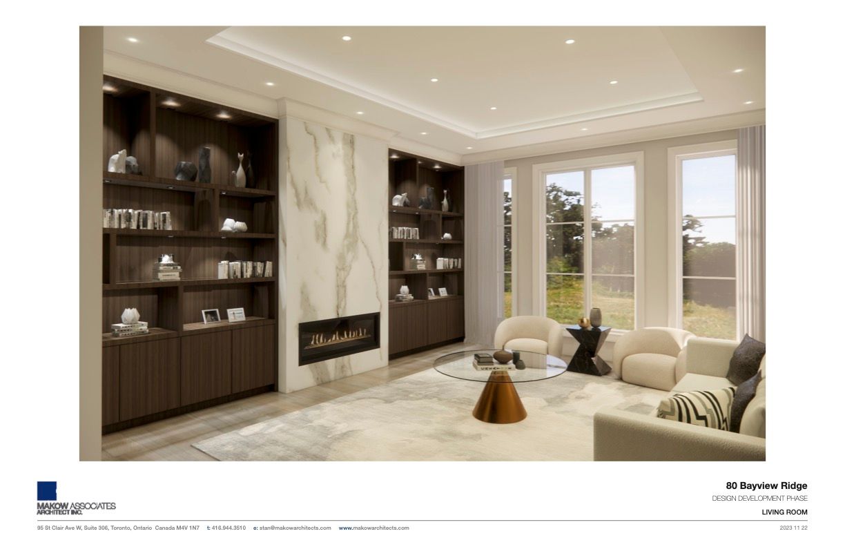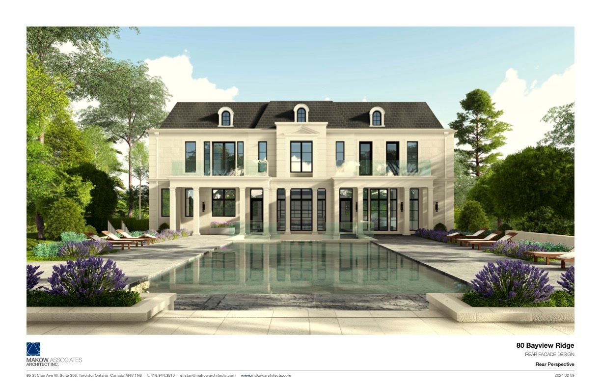 Prestige. Privacy. Possibility. 80 bayview ridge - a signature estate opportunity in one of toronto's most coveted enclaves. Set on an extraordinary 100 x 250 ft estate-style lot, this remarkable property offers exceptional scale, mature greenery, and a beautifully maintained in-ground pool framed by lush perennial gardens-an oasis of complete privacy in the heart of bayview ridge. The existing residence, measuring 7,715 sq. Ft., is warm, inviting, and comfortably livable. Sunlit interiors feature multiple skylights and five fireplaces, enhancing both charm and ambiance. Generous principal rooms include a richly appointed wood-panelled library with fireplace, a classic living room, a formal dining room adorned with luxurious silk wall finishes, and a grand family room with skylight, fireplace, and walk-out to the serene backyard. The walk-out lower level elevates everyday living with a dedicated theatre room, spacious recreation and entertainment areas, and flexible spaces ideal for hosting, relaxing, or accommodating extended family. A three-car garage and the estate's exceptional lot size complete this distinguished offering. While the home is perfectly enjoyable as-is, the value lies in the land and redevelopment potential. Architectural plans by makow architects for a new luxury residence of over 18,000 sq. Ft. Are available, and the building permit is already approved and ready, making this a truly turnkey opportunity for a future signature estate. An exceptional bayview ridge address where privacy, timeless elegance, and limitless opportunity converge-whether you choose to live, enhance, or build new.