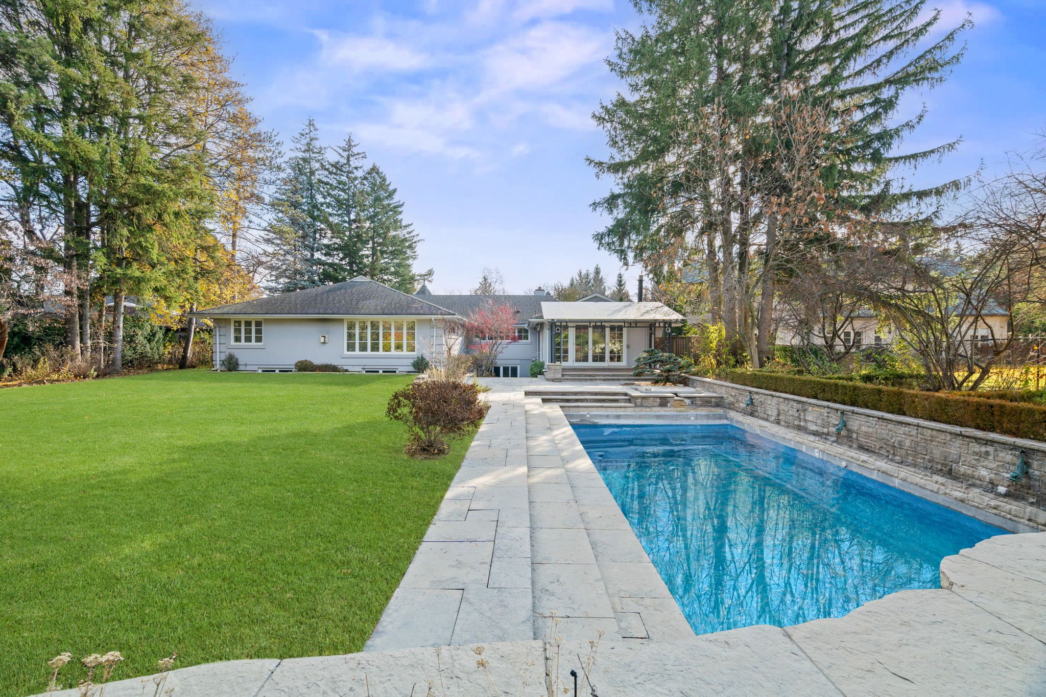 Prestige. Privacy. Possibility. 80 bayview ridge - a signature estate opportunity in one of toronto's most coveted enclaves. Set on an extraordinary 100 x 250 ft estate-style lot, this remarkable property offers exceptional scale, mature greenery, and a beautifully maintained in-ground pool framed by lush perennial gardens-an oasis of complete privacy in the heart of bayview ridge. The existing residence, measuring 7,715 sq. Ft., is warm, inviting, and comfortably livable. Sunlit interiors feature multiple skylights and five fireplaces, enhancing both charm and ambiance. Generous principal rooms include a richly appointed wood-panelled library with fireplace, a classic living room, a formal dining room adorned with luxurious silk wall finishes, and a grand family room with skylight, fireplace, and walk-out to the serene backyard. The walk-out lower level elevates everyday living with a dedicated theatre room, spacious recreation and entertainment areas, and flexible spaces ideal for hosting, relaxing, or accommodating extended family. A three-car garage and the estate's exceptional lot size complete this distinguished offering. While the home is perfectly enjoyable as-is, the value lies in the land and redevelopment potential. Architectural plans by makow architects for a new luxury residence of over 18,000 sq. Ft. Are available, and the building permit is already approved and ready, making this a truly turnkey opportunity for a future signature estate. An exceptional bayview ridge address where privacy, timeless elegance, and limitless opportunity converge-whether you choose to live, enhance, or build new.