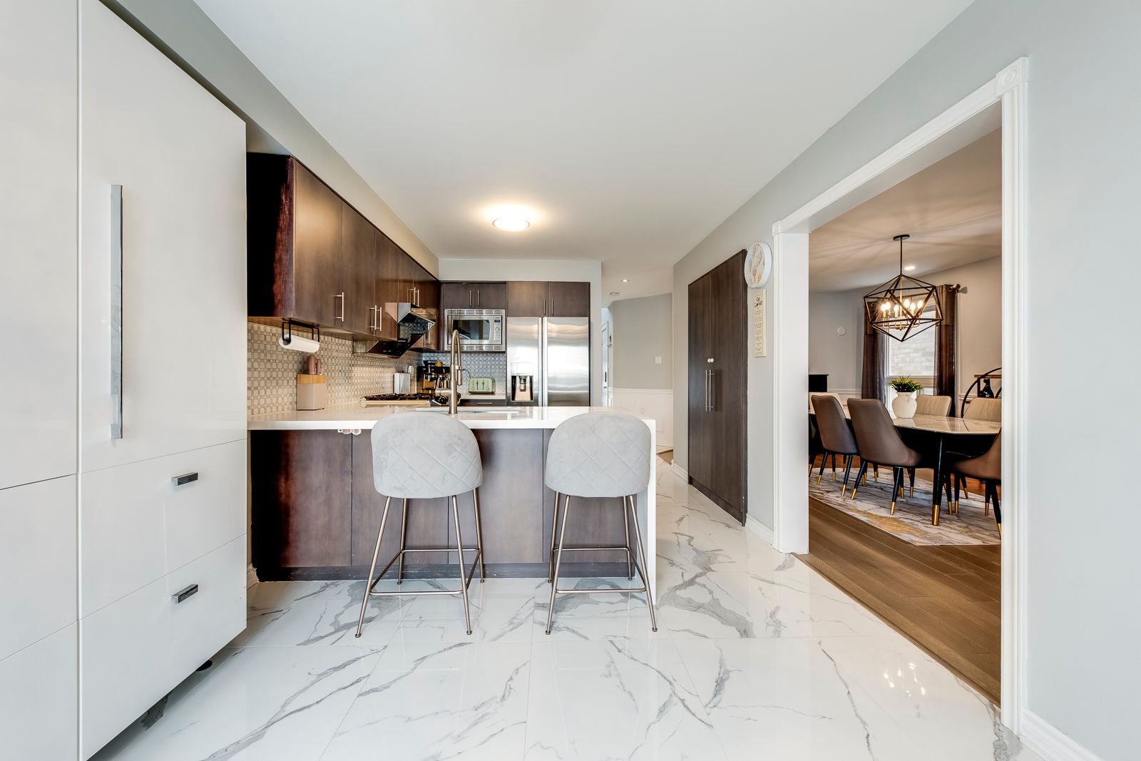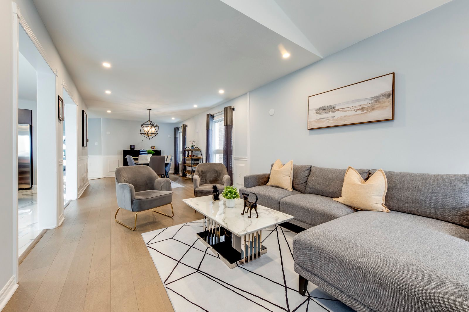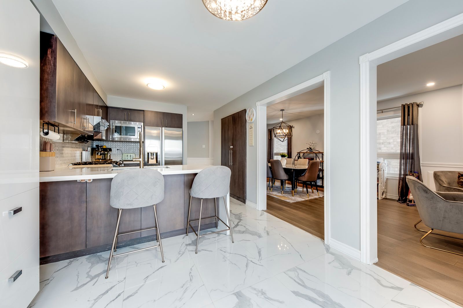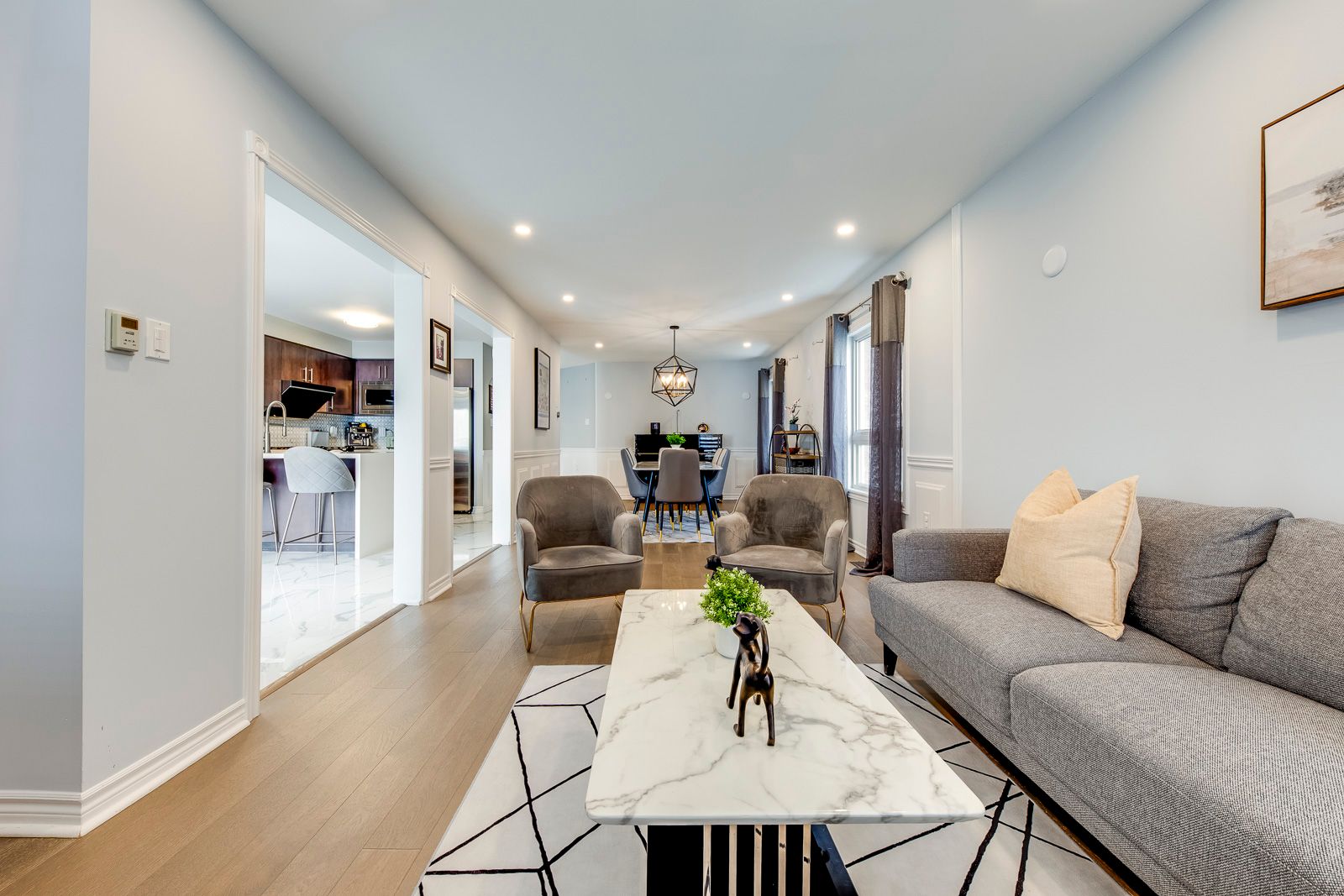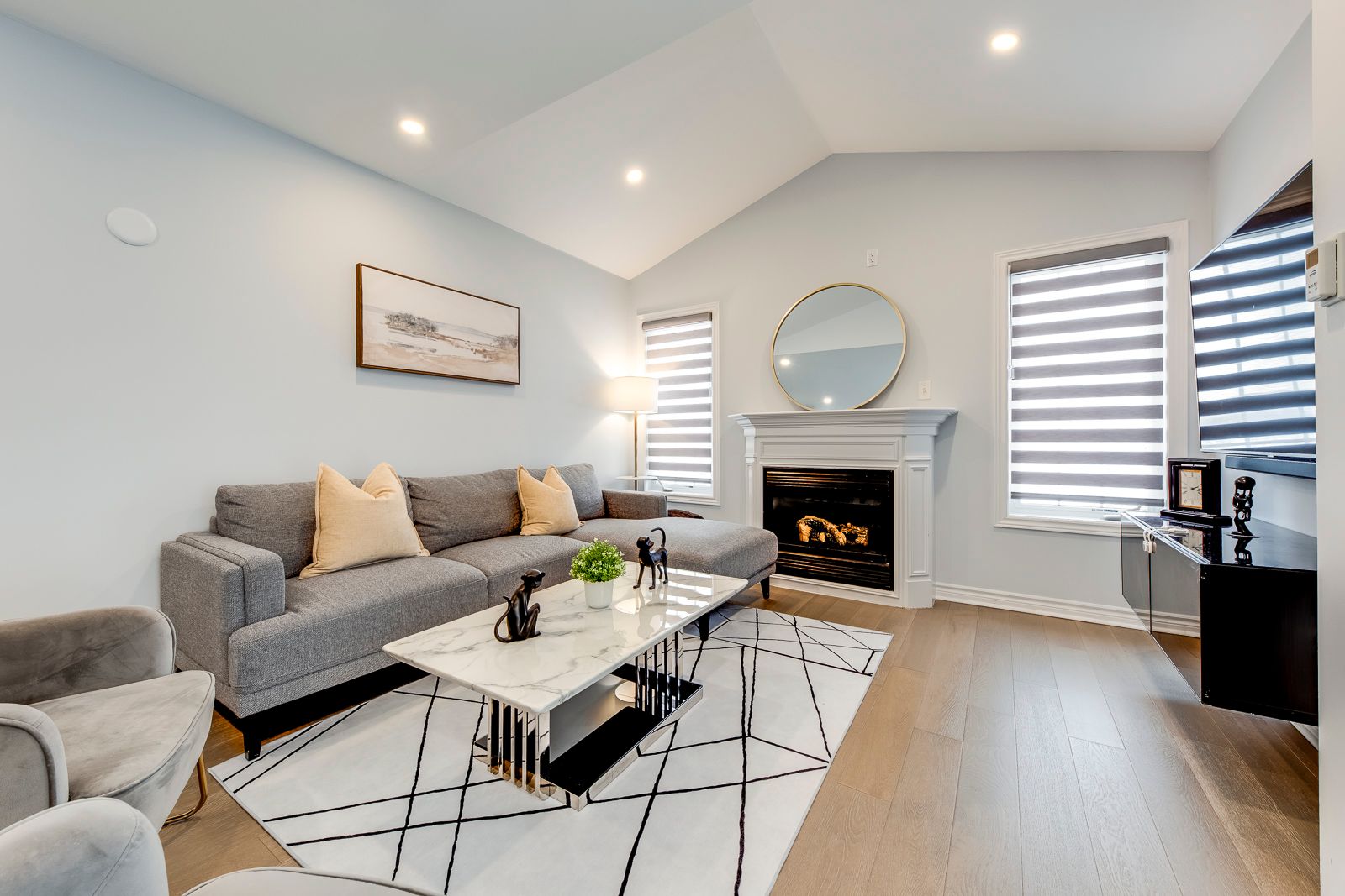 Welcome to this beautifully maintained detached home on an exceptional deep lot with no neighbours behind, offering rare privacy and peaceful outdoor enjoyment in a desirable vaughan location. This sun-filled 2-storey residence features thoughtful upgrades, modern finishes, and a highly functional family layout. The main level showcases elegant tile flooring (2020), stylish décor, and spacious principal rooms ideal for everyday living and entertaining, while the upgraded kitchen offers quality cabinetry, quartz countertops, stainless steel appliances, and a newer dishwasher (2021), flowing seamlessly into the dining and living areas with smooth ceilings, pot lights, and a cozy gas fireplace. Upstairs you'll find three generous bedrooms including a bright primary retreat with walk-in closet and ensuite, plus two fully renovated bathrooms (2020). Zebra blinds throughout add a sleek modern touch. The finished walkout basement provides versatile additional living space for recreation, work, or extended family needs. Major updates include a tankless water heater (2021), roof shingles (2022), interlock driveway (2021), and newly completed backyard fencing and grass (2024). Complete with central air and forced-air gas heating, this turnkey home is perfect for families, professionals, or investors seeking comfort, privacy, and long-term value.