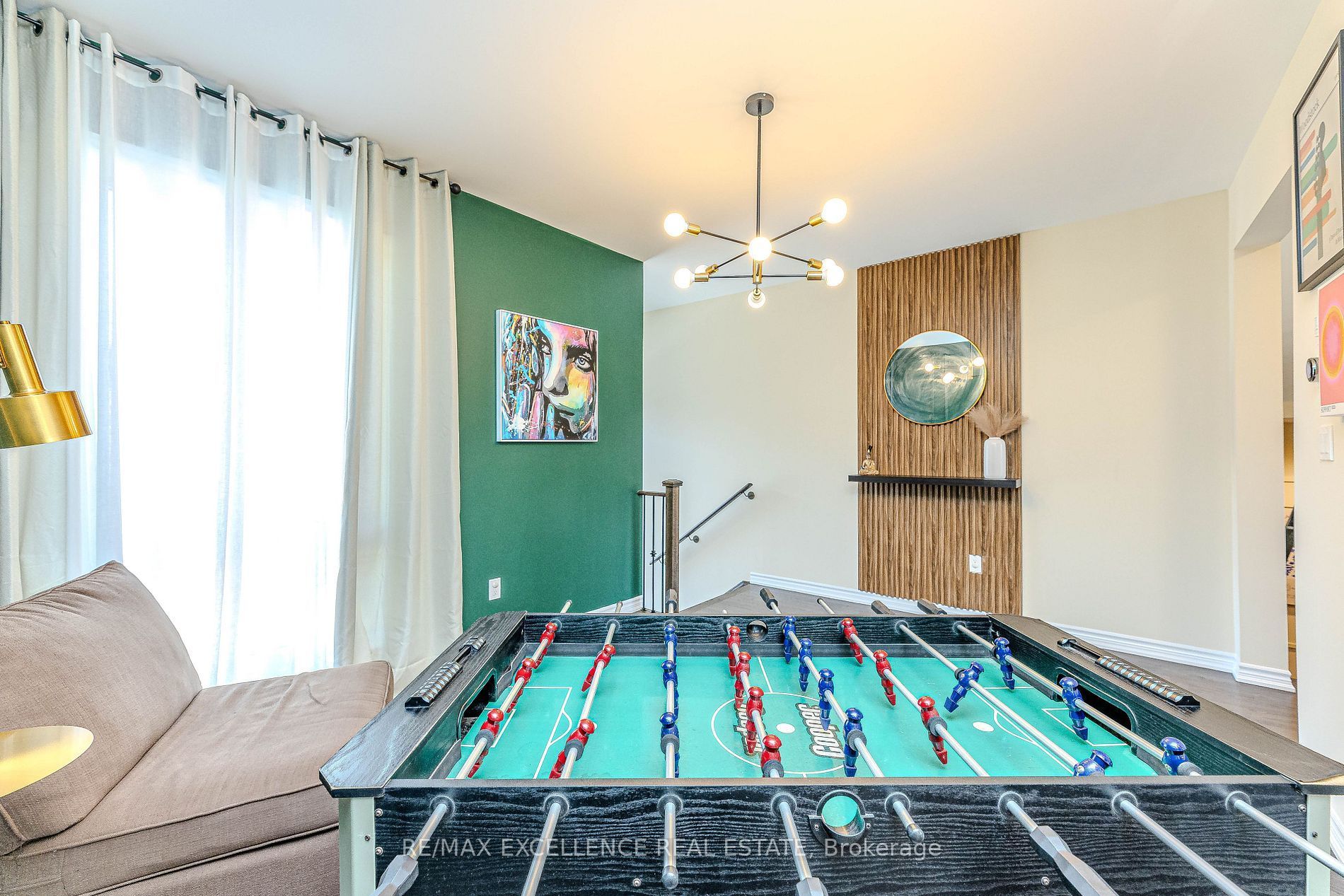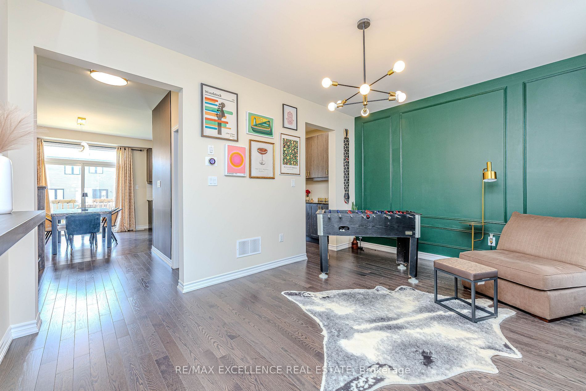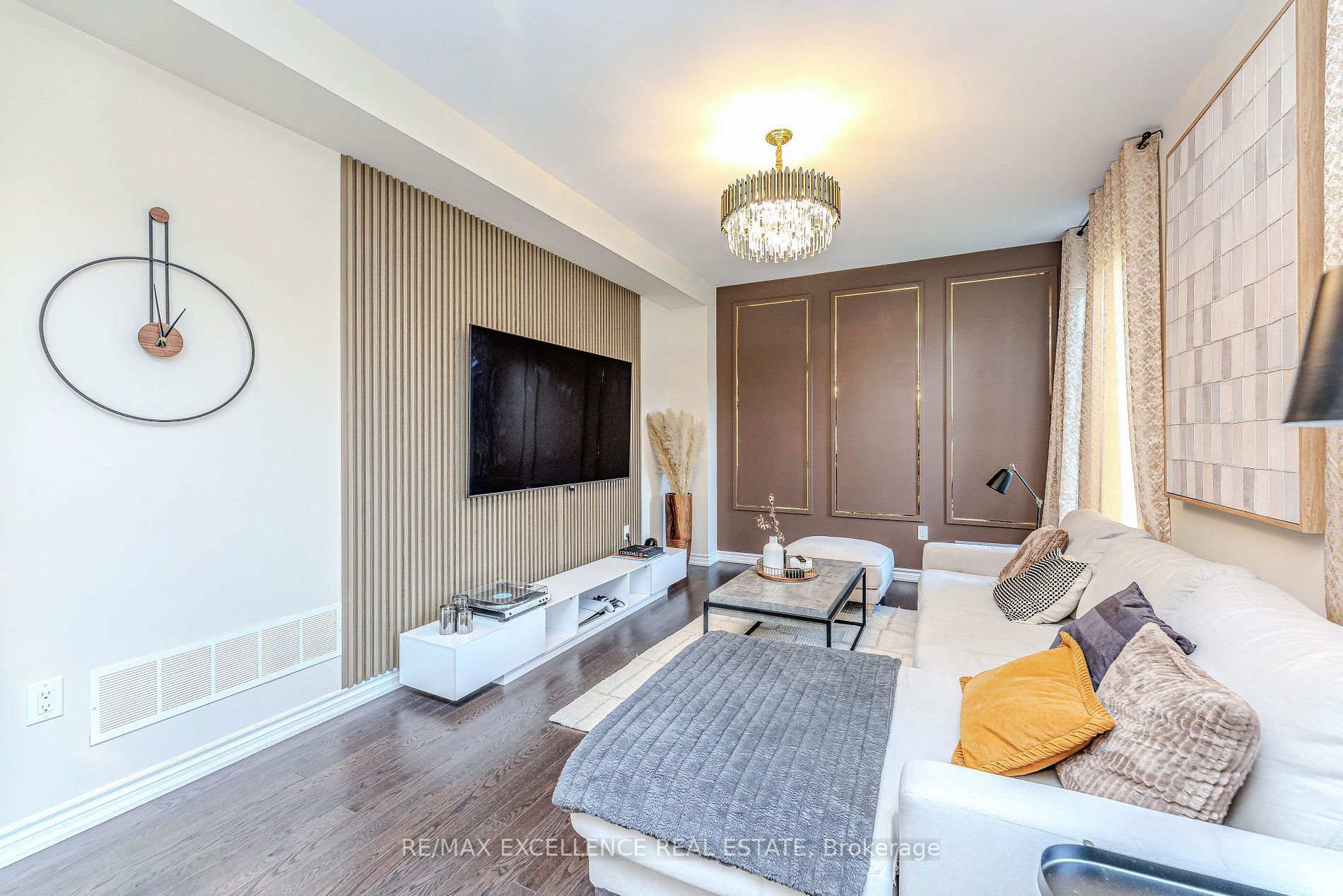 • Custom wall panels and designer light fixtures throughout.