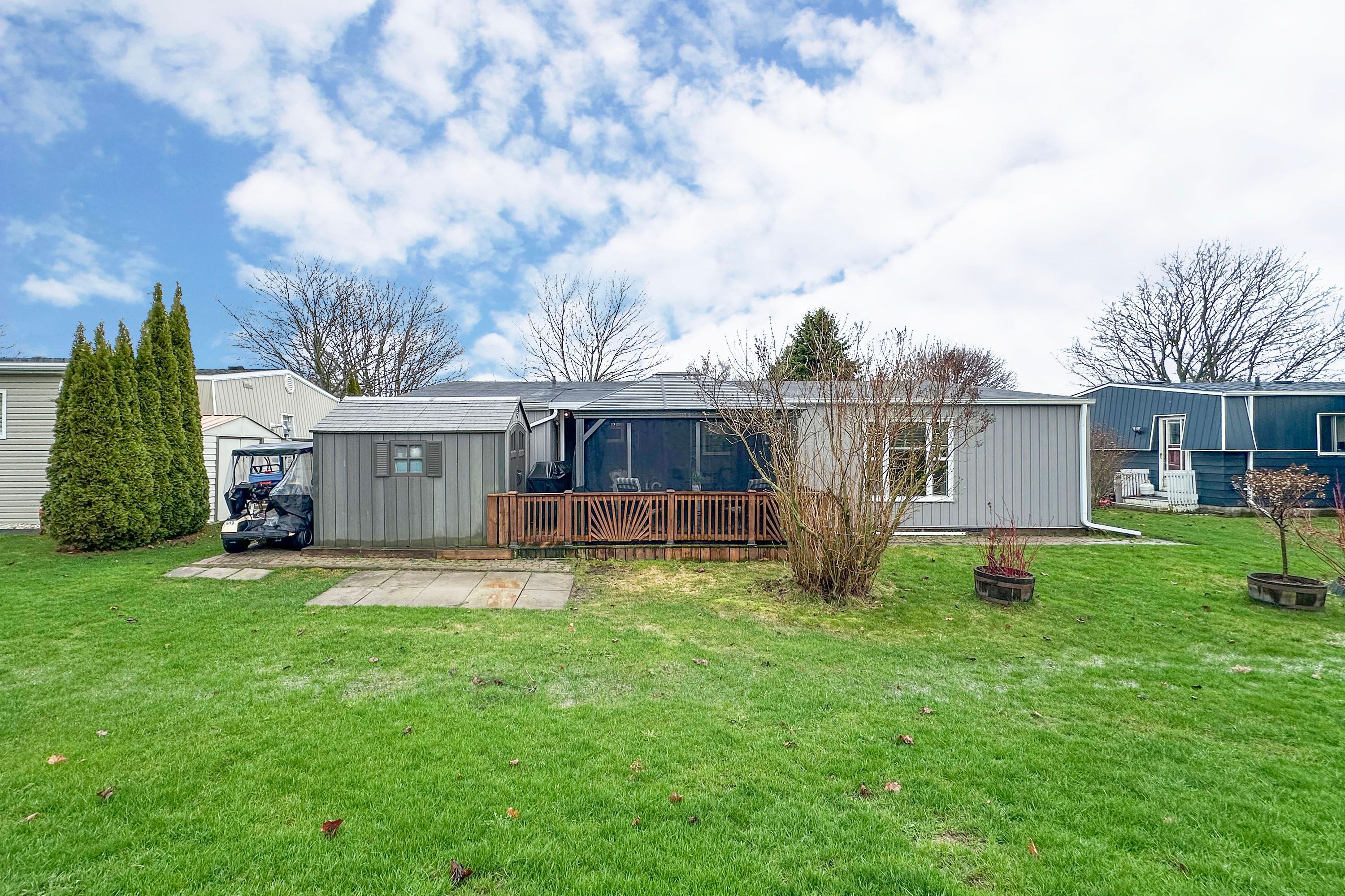 This stunning detached bungalow is located in wilmot creek, situated along the shores of lake ontario-an adult lifestyle community. This home shows pride of ownership throughout. Boasting hardwood floors. Oversized rooms offer an open-concept layout, bright principal rooms, and a seamless flow ideal for relaxed, low-maintenance living. Entertainers delight with a large deck with hardtop awning and gazebo. With its peaceful surroundings and resort-style amenities, it offers comfort, convenience, and community all in one place. Your lease ($1,300. 00/mo) covers plowing of driveways & road snow removal and gives you access to all amenities (including, but not limited to a 9-hole golf course recreation centre, horseshoes, lawn bowling, tennis/pickleball courts, pools, gym , sauna etc.). Plus over 80 activities including cards, shuffleboard, darts, billiards, dances, plays and much more.