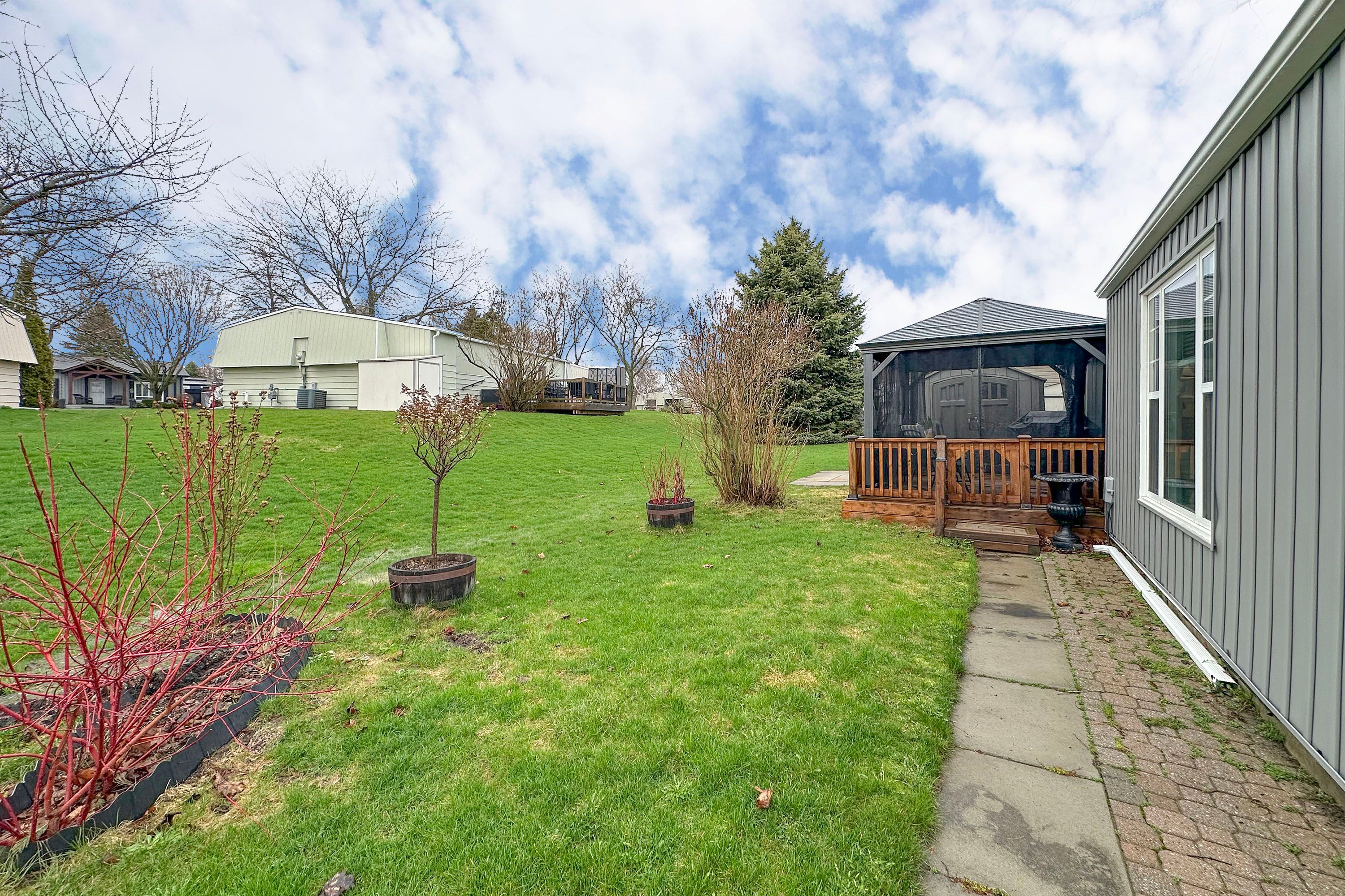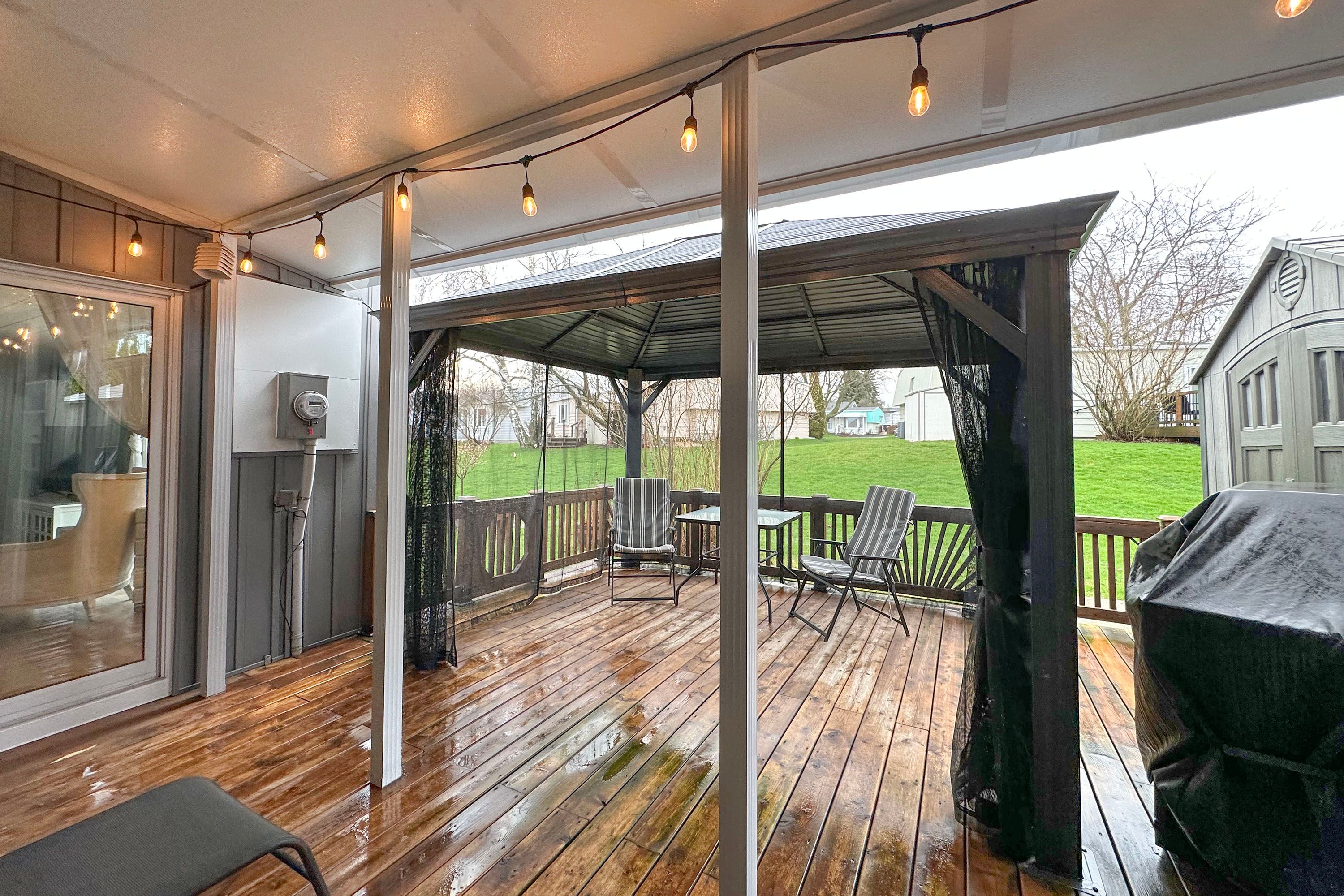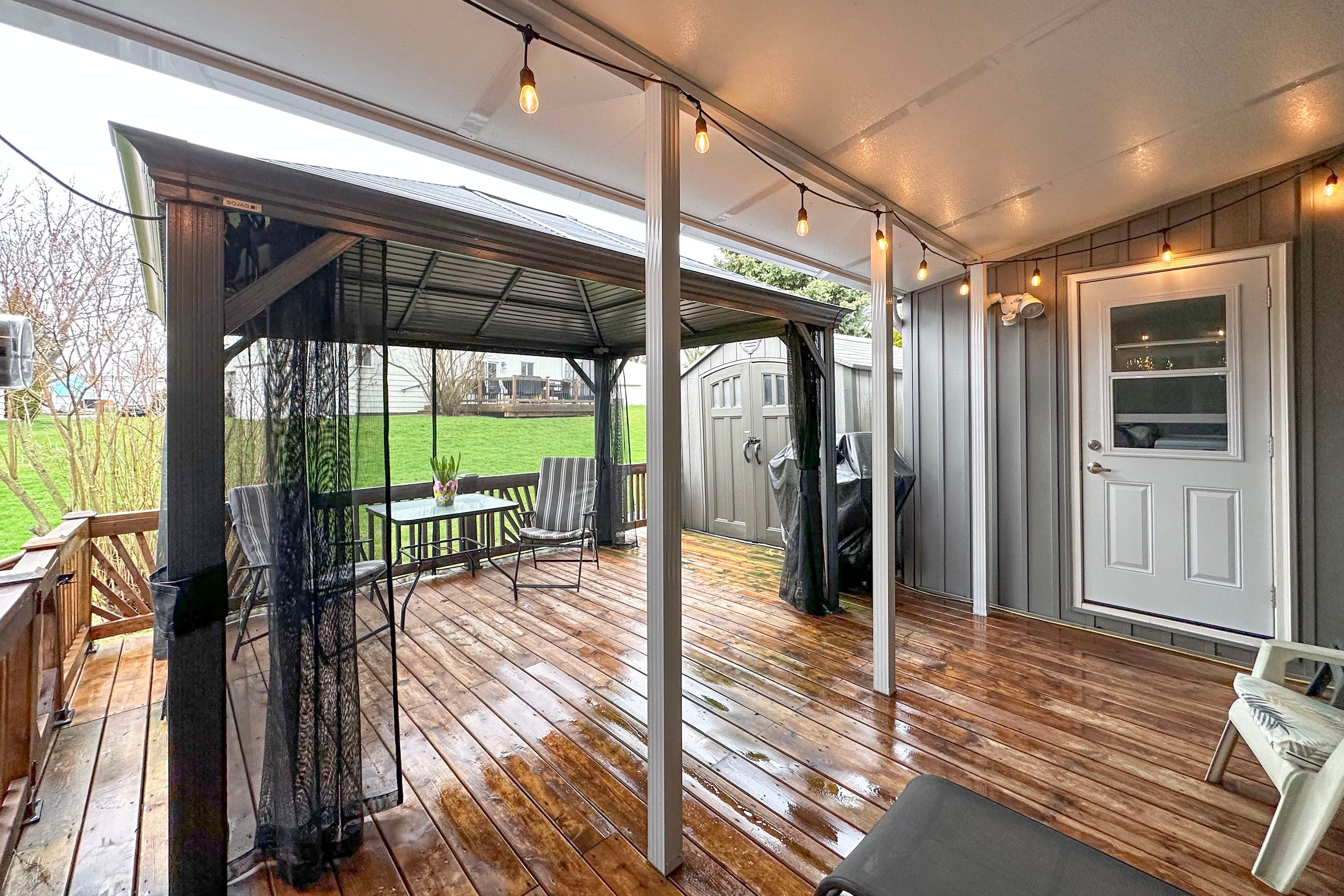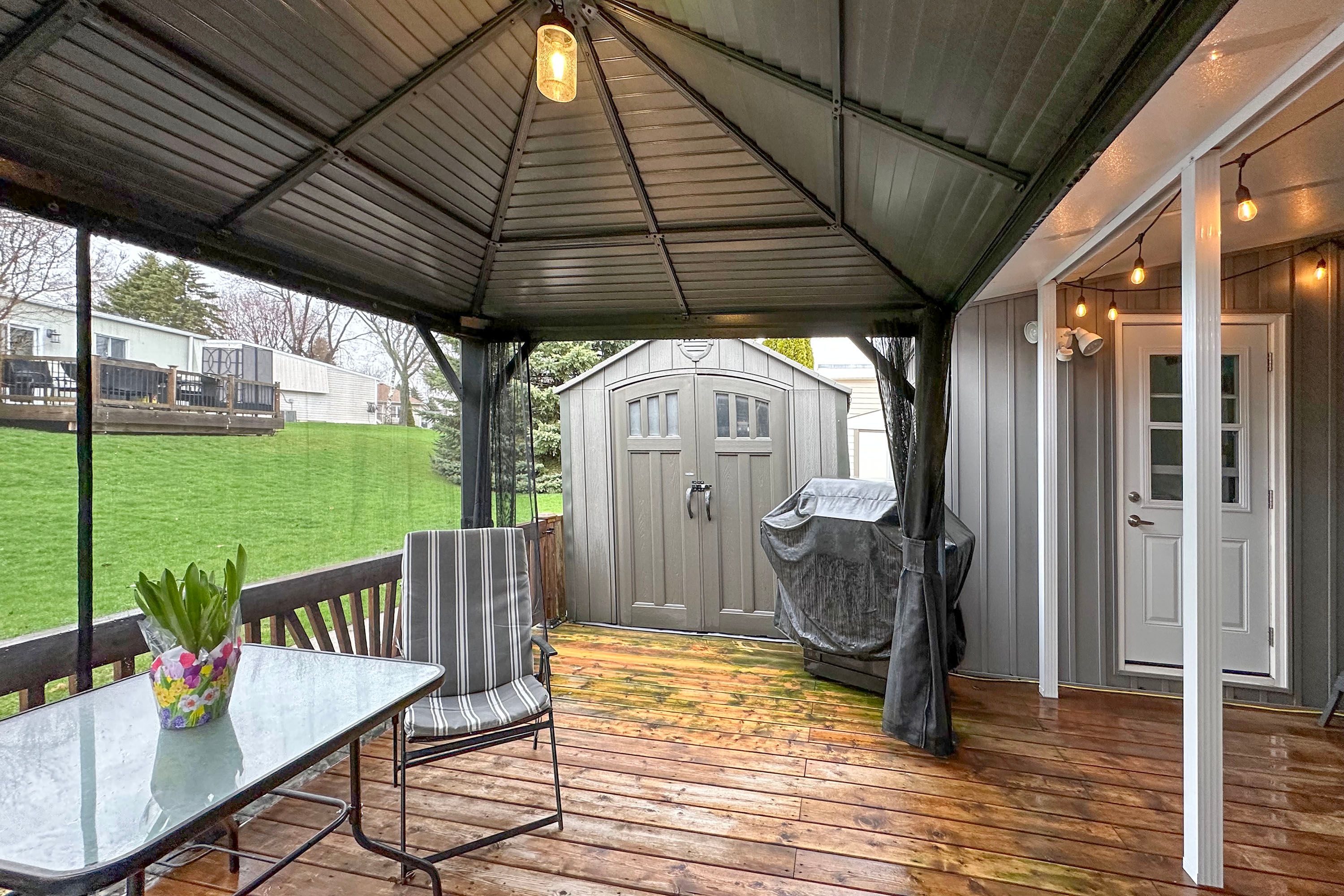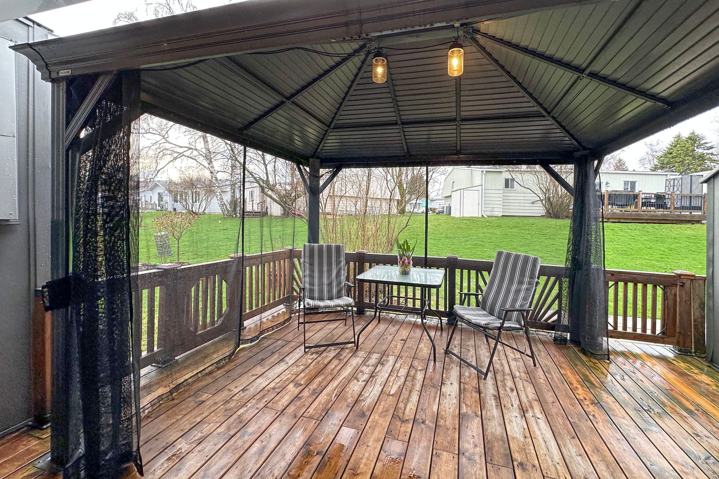 • Large deck with hardtop awning, perfect for entertaining guests.