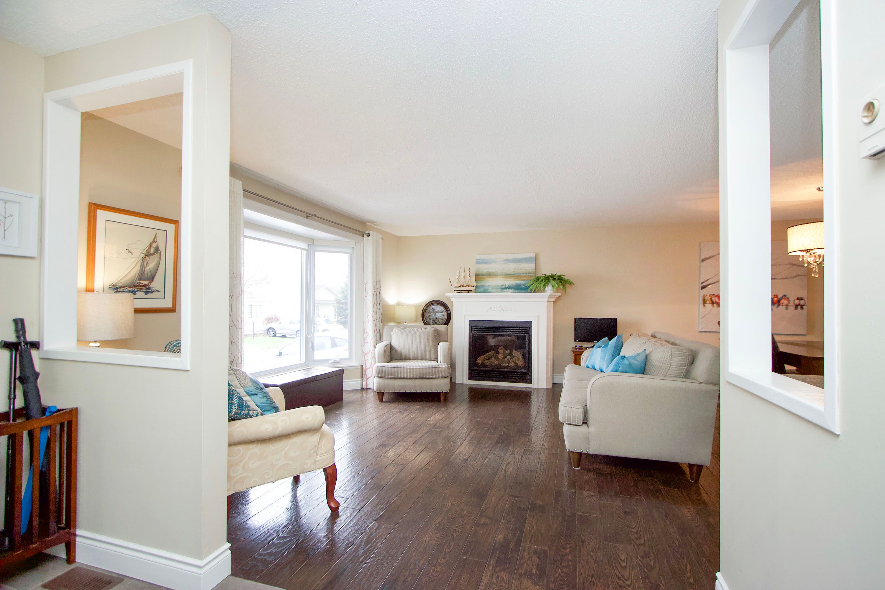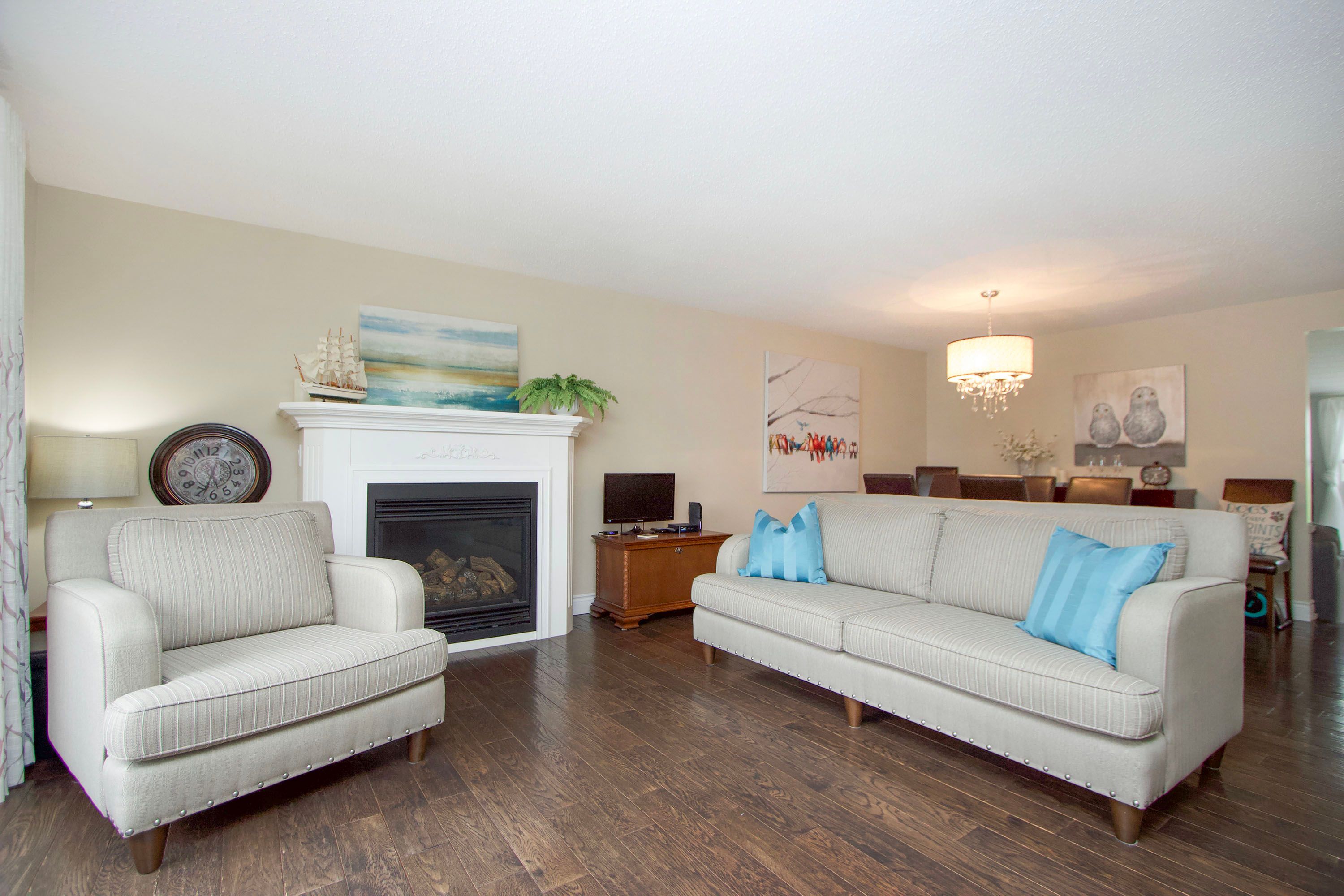 • Spacious open-concept layout with hardwood floors throughout.