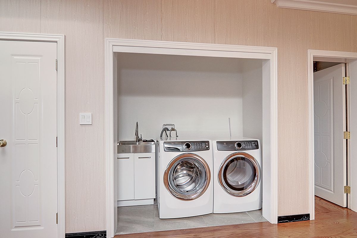 • Finished walk-up basement includes a kitchen and theater.