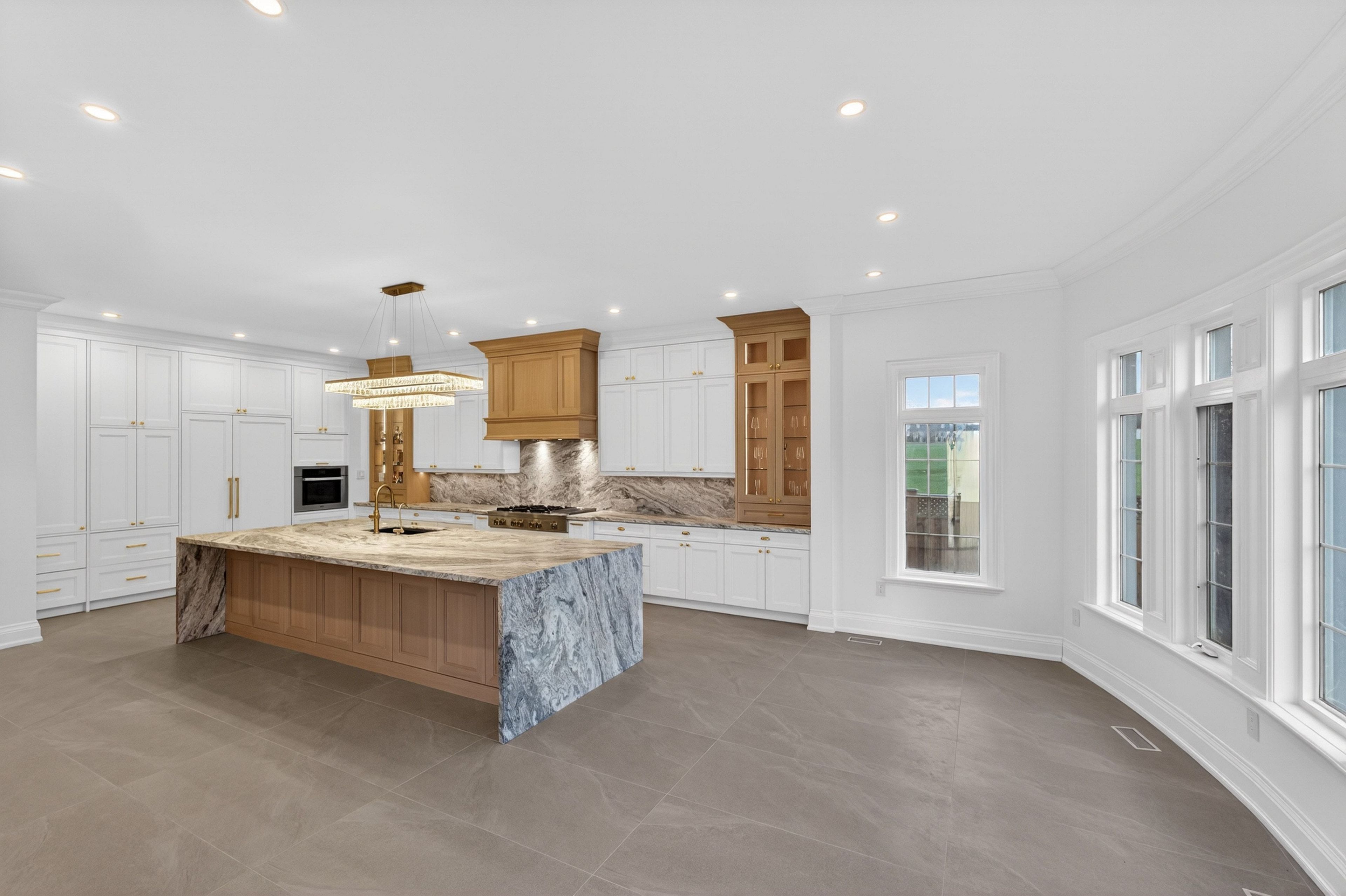 Great value / quality construction! ~ magnificent gated mansion approx. 7,600 sq ft + finished basement on a mature treed lot 100 x 225 ft - $$$ * surrounded by mega-mansions * $$$ circular driveway w/ 4 car garage! ~ interlocked & landscaped grounds! ~ *** all levels elevator *** featuring grand cathedral foyer & great room w/ overlooking terrace ~ *** new kitchen with leathered granite countertops on oversized breakfast bar centre island + stainless steel appliances *** double scarlett o'hara staircase! ~ waffled ceilings! ~ high ceilings throughout! * primary bedroom retreat w/ terrace & multiple main floor walk-outs to large deck & private backyard oasis w/ waterfall feature + multi-purpose oversized sports court, lower level w/ movie theatre room, rec room, bedroom and much more.