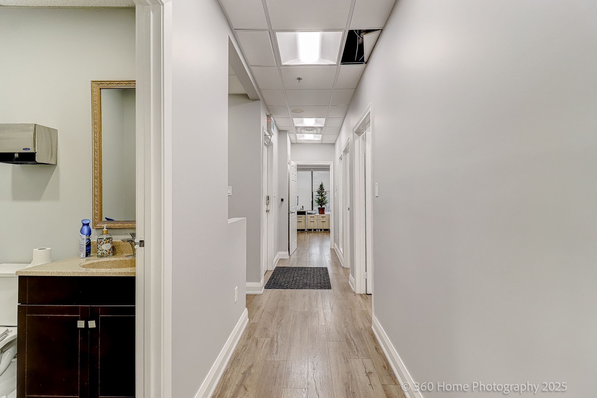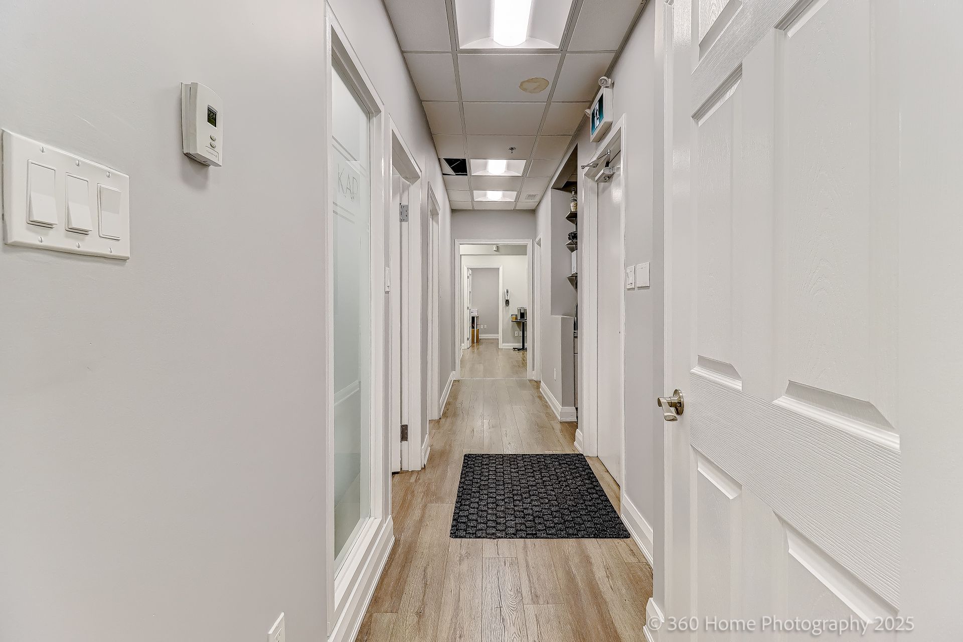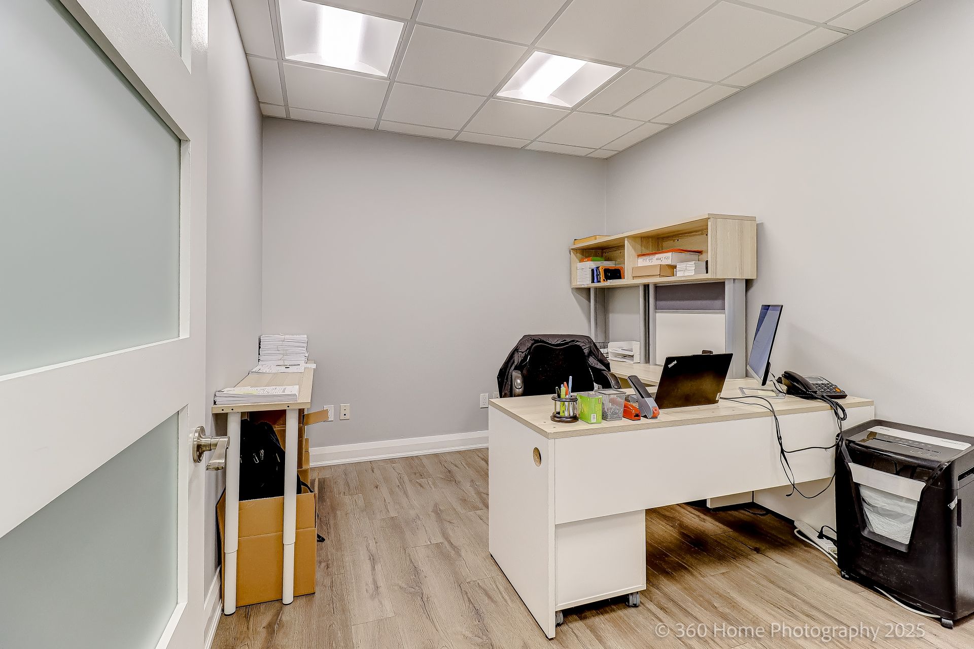 * location location * 2 floors with separate entrances, totaling 2,614 square feet (offices) plus 247 square/feet (industrial space with 12' drive in door), 9 bright & spacious offices, 2 front reception areas, boardrooms, bull pens, 2 kitchenettes, 2 washrooms, rear warehouse... Main floor tenant pays $2,500 plus hst with lease ending may 31st, 2027. Floor plans attached. Amazing opportunity for savvy buyer!