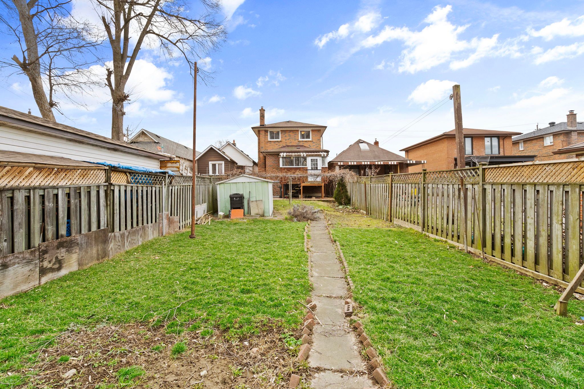 Detached home with 150-ft deep lot and laneway potential. Solid 2-storey 3-bedroom detached home offering an excellent move-in and modernize opportunity. Functional 1,392 sq ft layout featuring hardwood floors and convenient walkouts to both the front porch and a covered rear porch overlooking the yard. Finished basement includes an old-school bar, cold cellar, and a rear walkup that is currently blocked but offers potential for a separate entrance. Big ticket updates: gas furnace and central air (2021), roof and eaves (2019), and updated vinyl windows. Set on a massive 150-foot deep lot with no neighbours behind offering exceptional privacy and room to create your own private garden oasis. Rear laneway access provides potential for additional parking or a future laneway or garden suite (buyer to verify zoning) plus possible additional rear parking. Private driveway and built-in garage provide parking for 3 vehicles. Commuter's dream: ideally located minutes to the stockyards district (big box stores, dining, & groceries) and mount dennis transit hub (up express, go transit, and eglinton crosstown lrt) and ttc to keele station. Quick access to black creek drive and major highways 400 and 401. A solid home with strong upside and the opportunity to build immediate equity.
