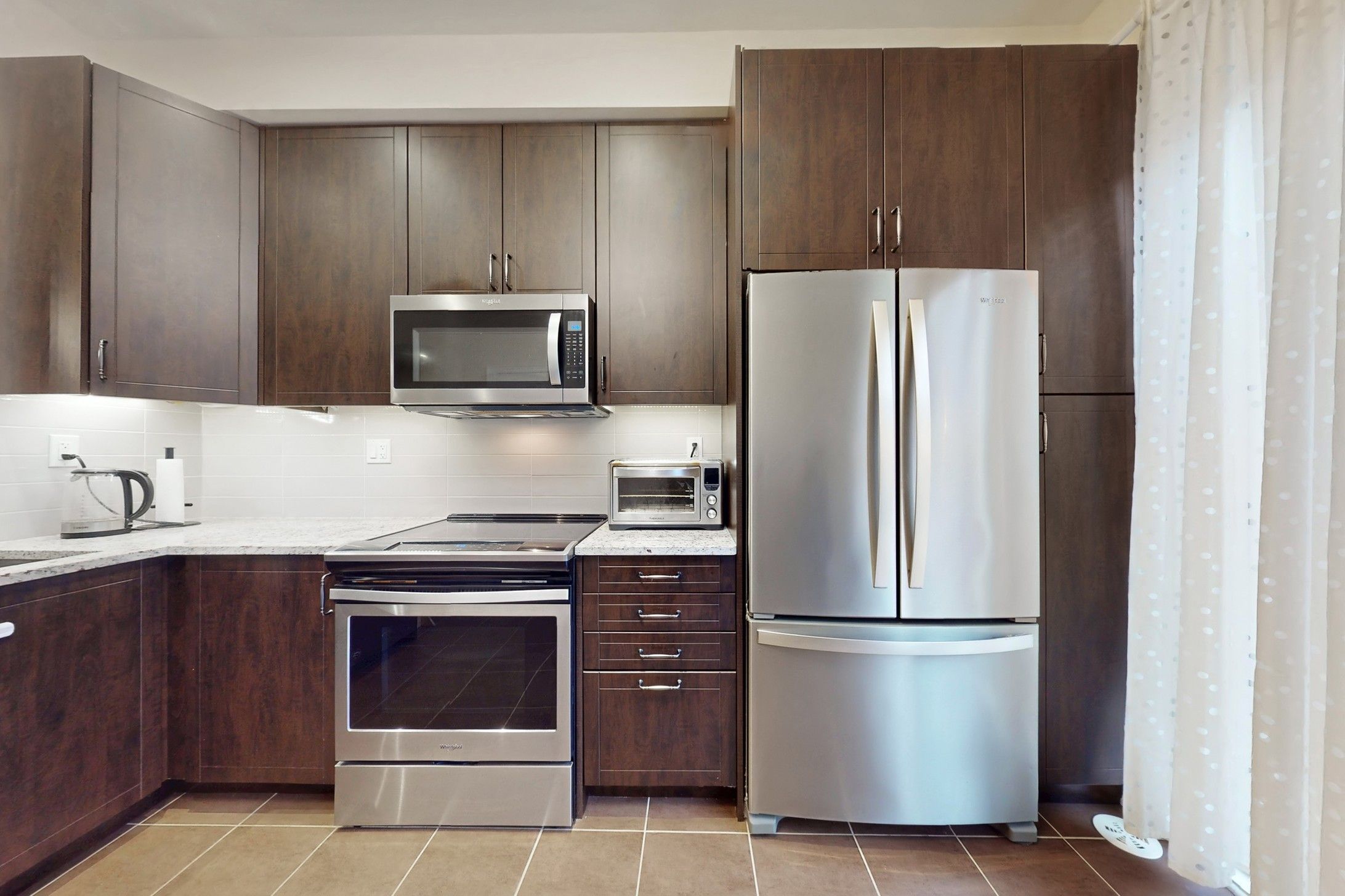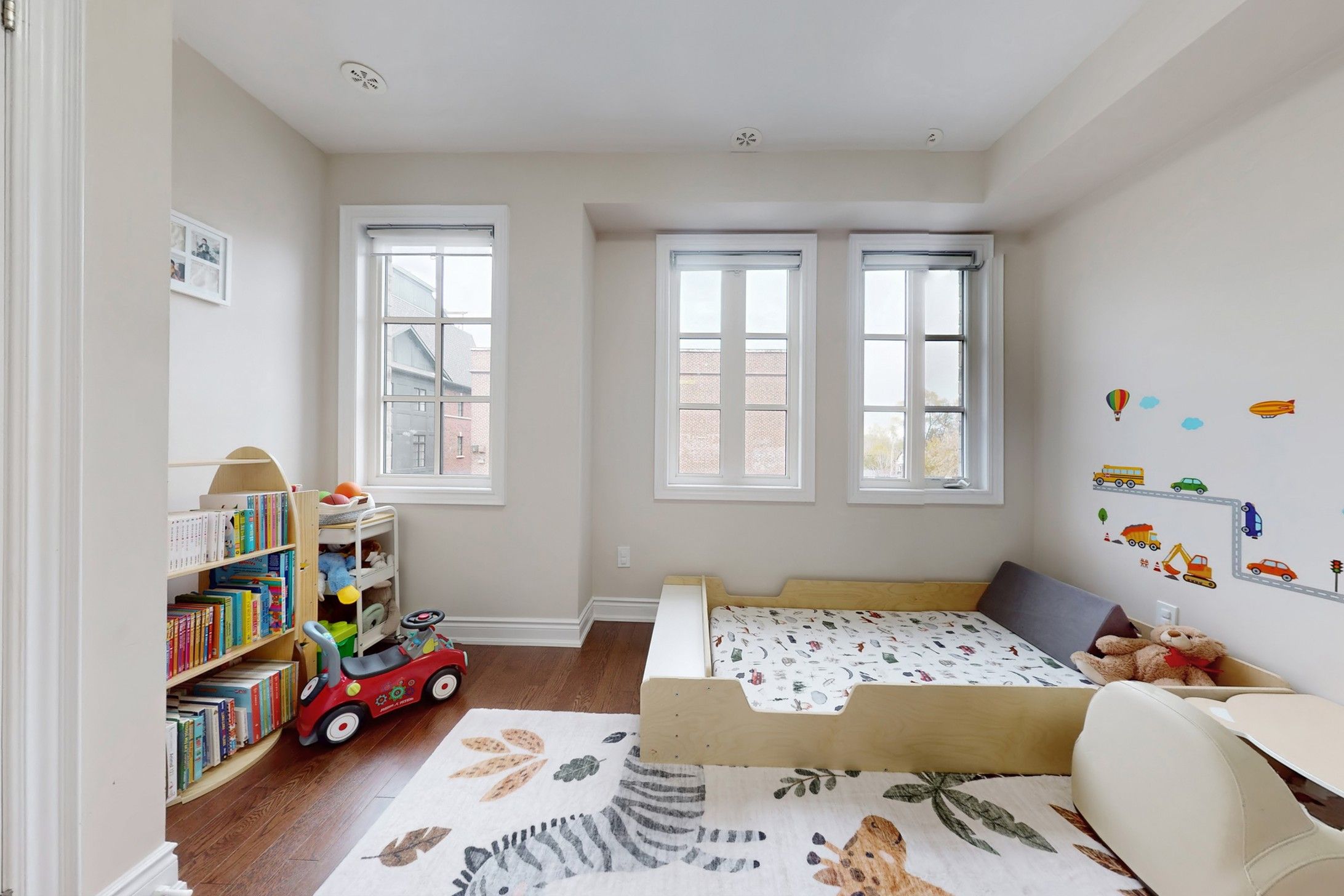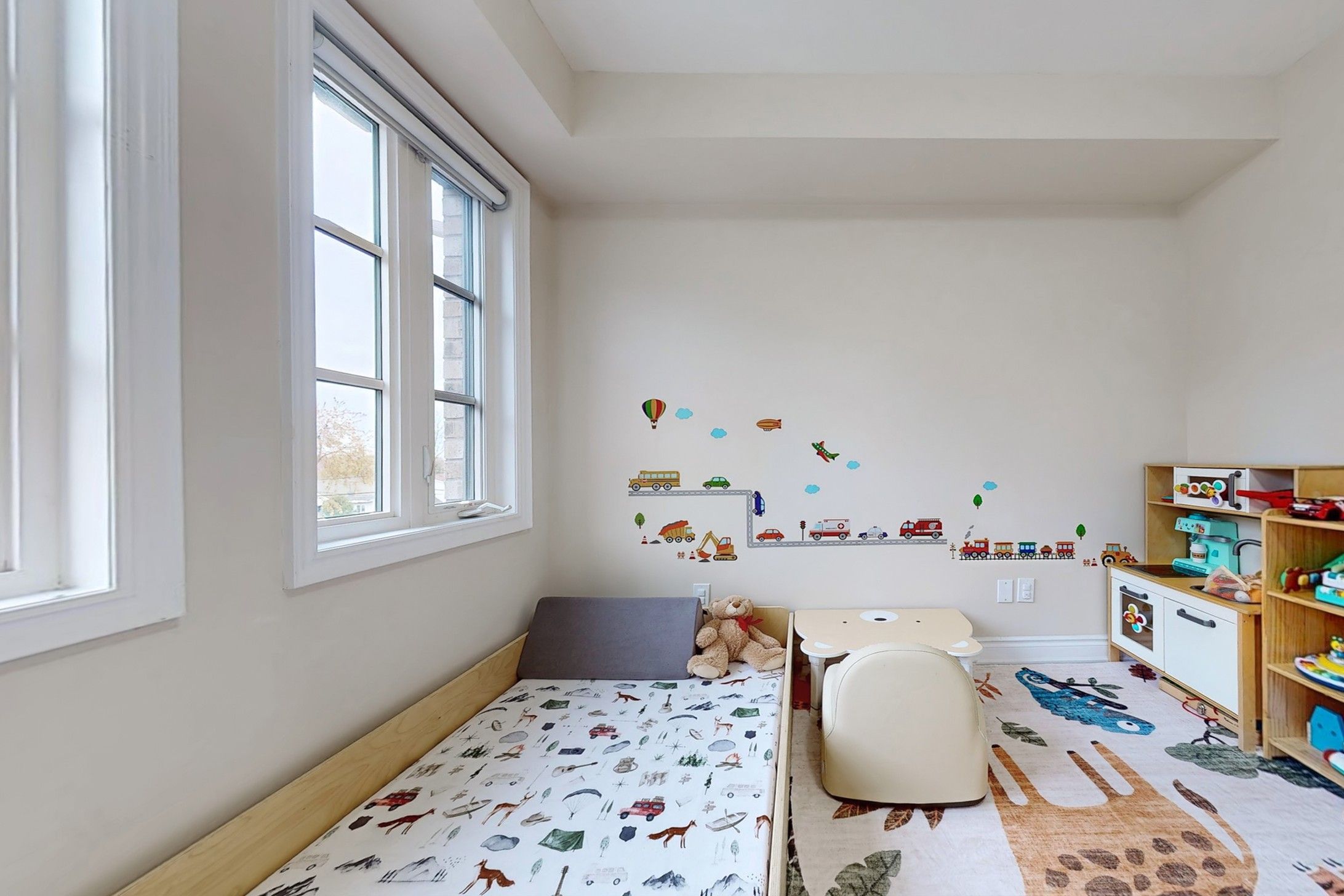 Freehold townhome in a top school district and close to the lake & parks, offering easy access to leisure activities. A highly rated daycare "vincent massey academy", located right in front of the home, makes this an ideal choice for professional couples with children. This carpet-free home features hardwood flooring throughout, a bright and efficient layout, and a spacious 3+1 bedroom, 3-bathroom, 2 parking space design spread over three levels. It offers large windows, a big balcony, and a modern, stylish structure built only four years ago. Conveniently located walking distance to long branch go station, near express way, shopping amenities, many restaurants and built by the well-known builder dunpar homes, this high- quality freehold townhome represents an excellent opportunity not to be missed. Potl $312. 21/m