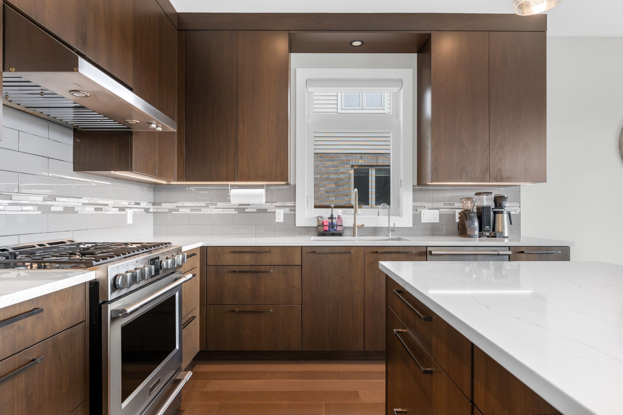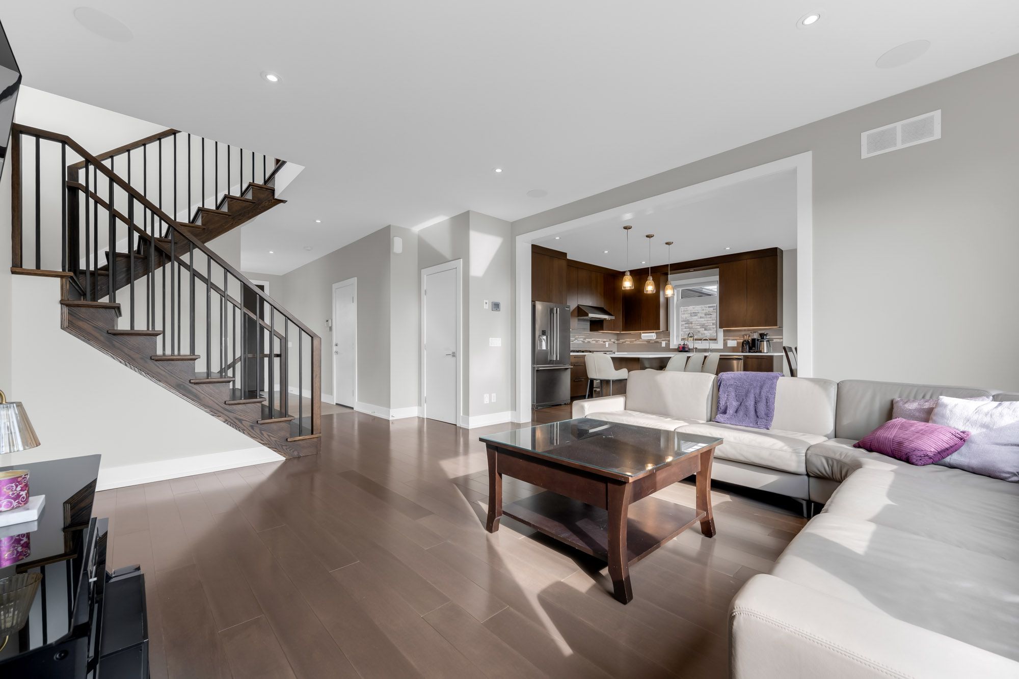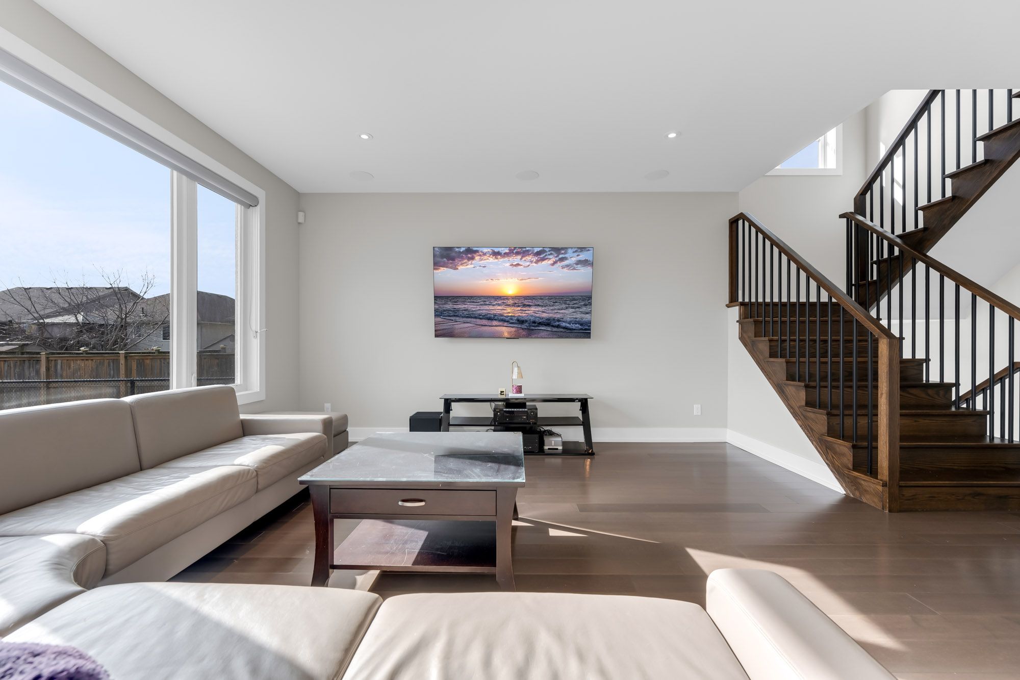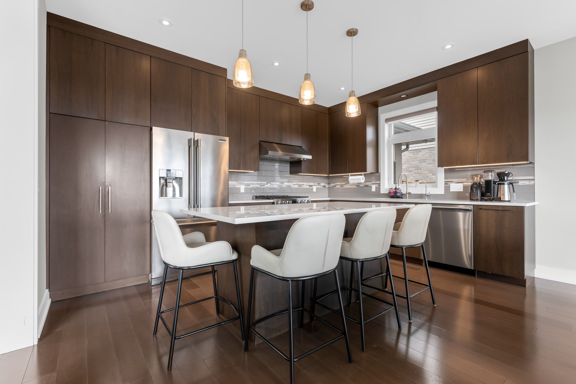 • Open-concept main floor with 9-foot ceilings and chef's kitchen.