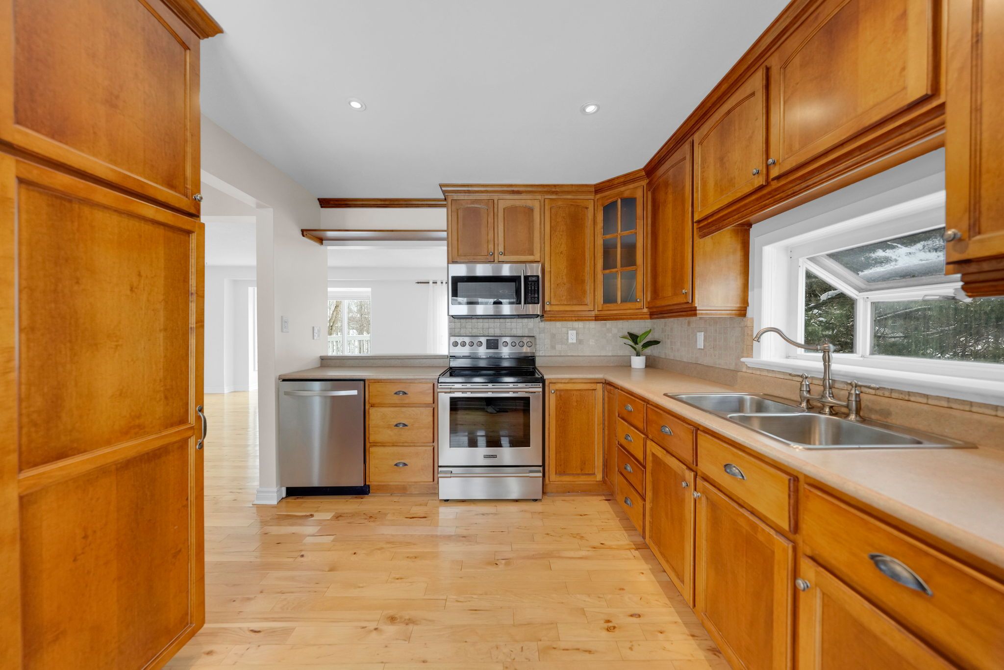 Welcome to a home where nature, tranquility, and everyday convenience come together effortlessly. Perfectly positioned on a breathtaking pie-shaped ravine lot, this beautifully maintained 3-bedroom, 2-bath residence offers exceptional privacy, comfort, and a setting that is truly hard to find. Surrounded by mature trees and peaceful green space, the backyard provides a stunning natural backdrop to enjoy throughout every season. Whether relaxing with your morning coffee or entertaining family and friends, this outdoor space feels like a private retreat. Inside, the home is warm, bright, and inviting, with large windows that frame the natural surroundings and fill the space with light. The freshly painted interior and hardwood flooring throughout the main level add timeless appeal, while the thoughtfully designed layout features generous principal rooms ideal for both entertaining and everyday living. The well-appointed kitchen showcases stainless steel appliances, abundant cabinetry, and ample workspace for effortless meal preparation. Comfortably sized bedrooms offer flexibility for growing families, guests, or a dedicated home office. The finished lower level with walkout adds valuable living space and versatility - perfect for a recreation area, gym, guest suite, or remote workspace. Enjoy the serenity of a nature-filled setting while being just a short walk to schools, parks, shops, restaurants, and everyday amenities - delivering the lifestyle today's buyers are searching for. Recent upgrades include: basement flooring (2025), interior paint (2025), staircase carpeting (2025), furnace (2024), and shingles (2022). A rare opportunity to own a home that blends privacy, natural beauty, and convenience in one exceptional location.