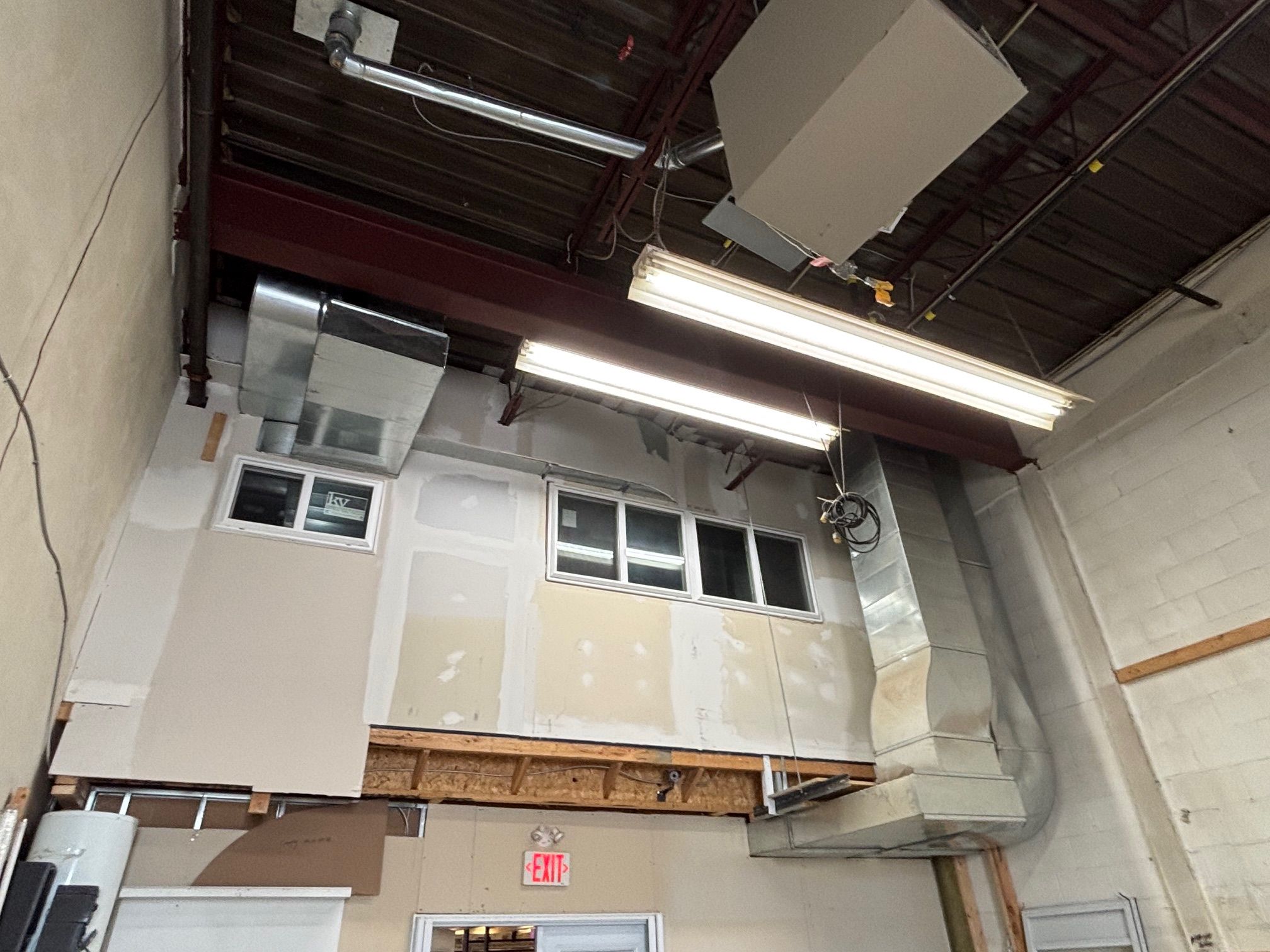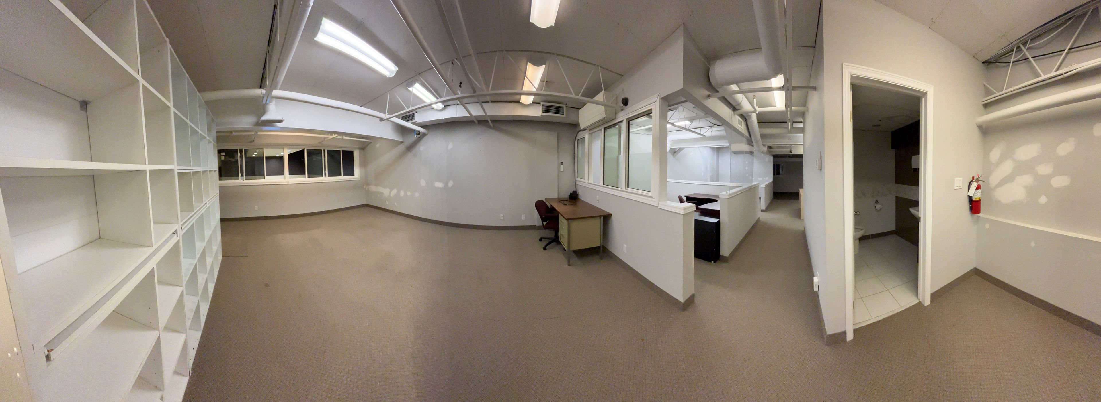 • Mezzanine level offers renovated offices, kitchenette, and additional work space.