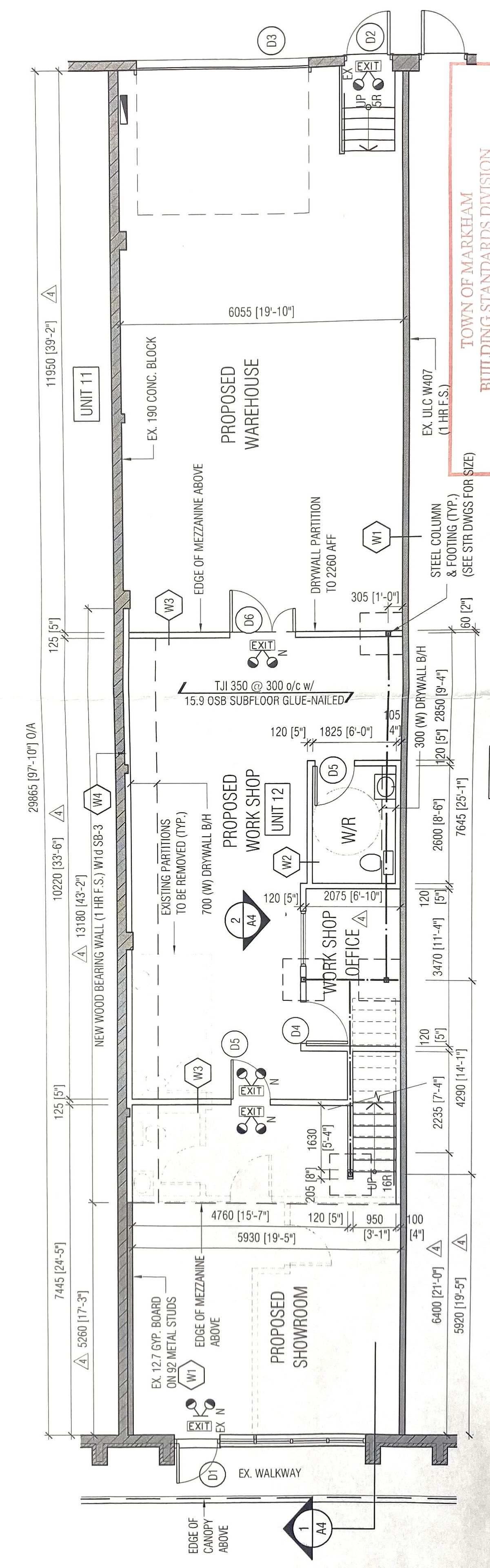 Industrial condo in markham on esna park dr north of steeles ave with truck loading bay. Total useable area of approx. 2,800 sq ft with approx. 2,000 sf on ground floor and approx. 800 sf office space and storage area mezzanine . Ground floor entrance to the showroom area with high ceiling, follow by the sales area with meeting room, presentation area and washroom, through the storage / workshop area, a approx. 800 sq ft warehouse with truck loading dock. Ground floor can be open up and form a 1,800 sq ft work area. Mezzanine level with building permit renovated 2 offices, open work area, kitchenette and washroom . Low monthly condo maintenance fee. Open parking. Buyer/agent to confirm measurements and permitted uses.