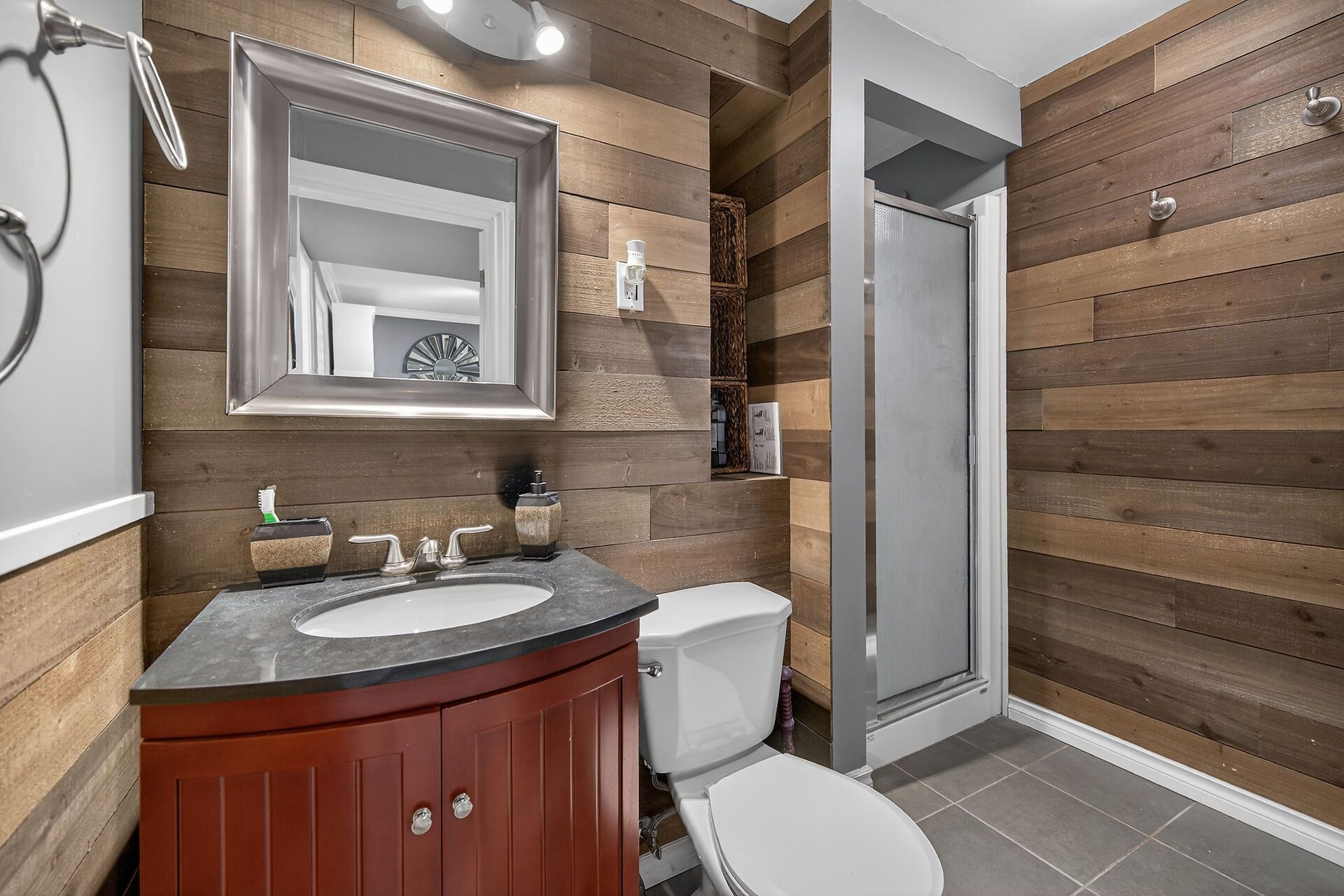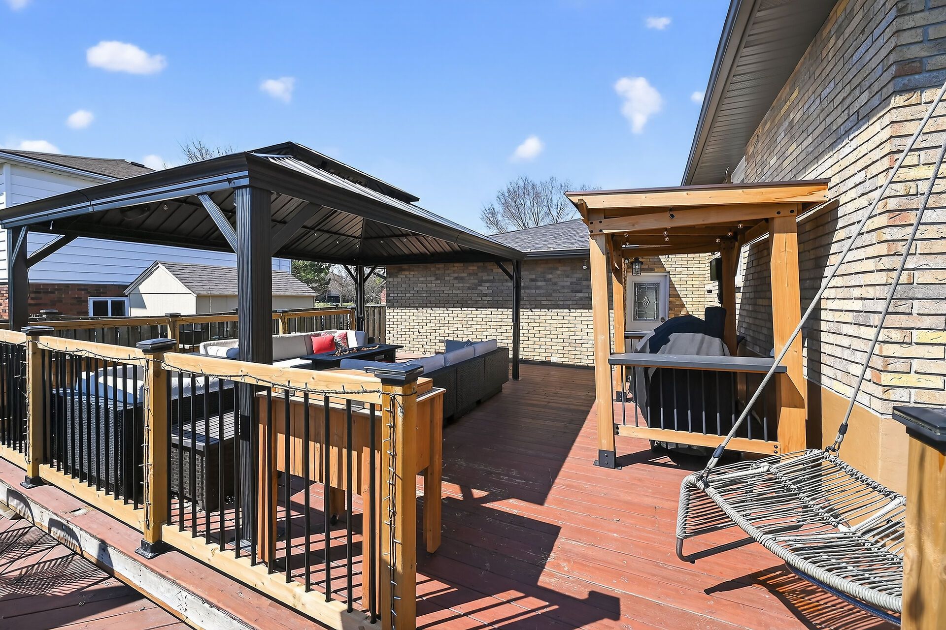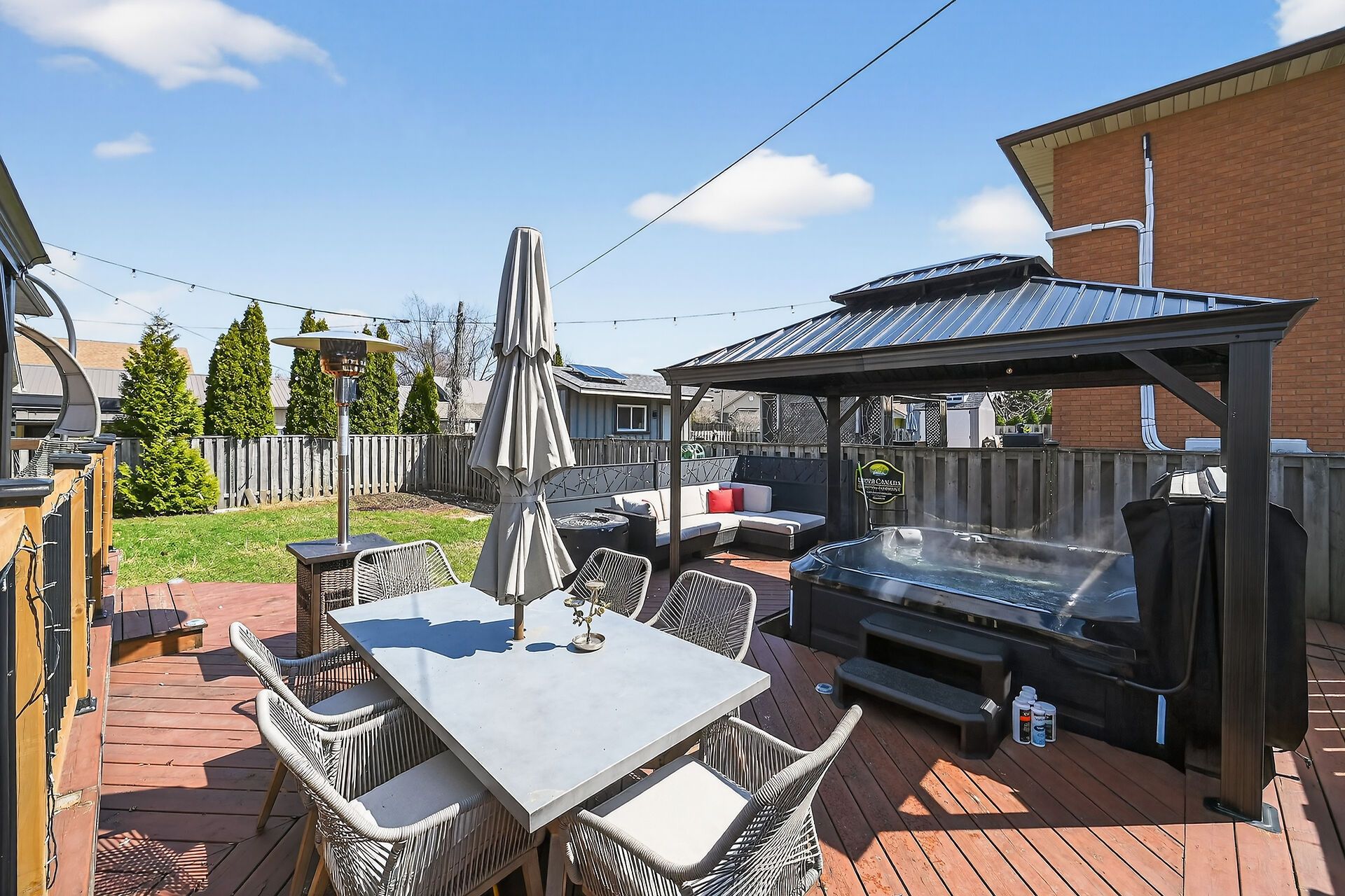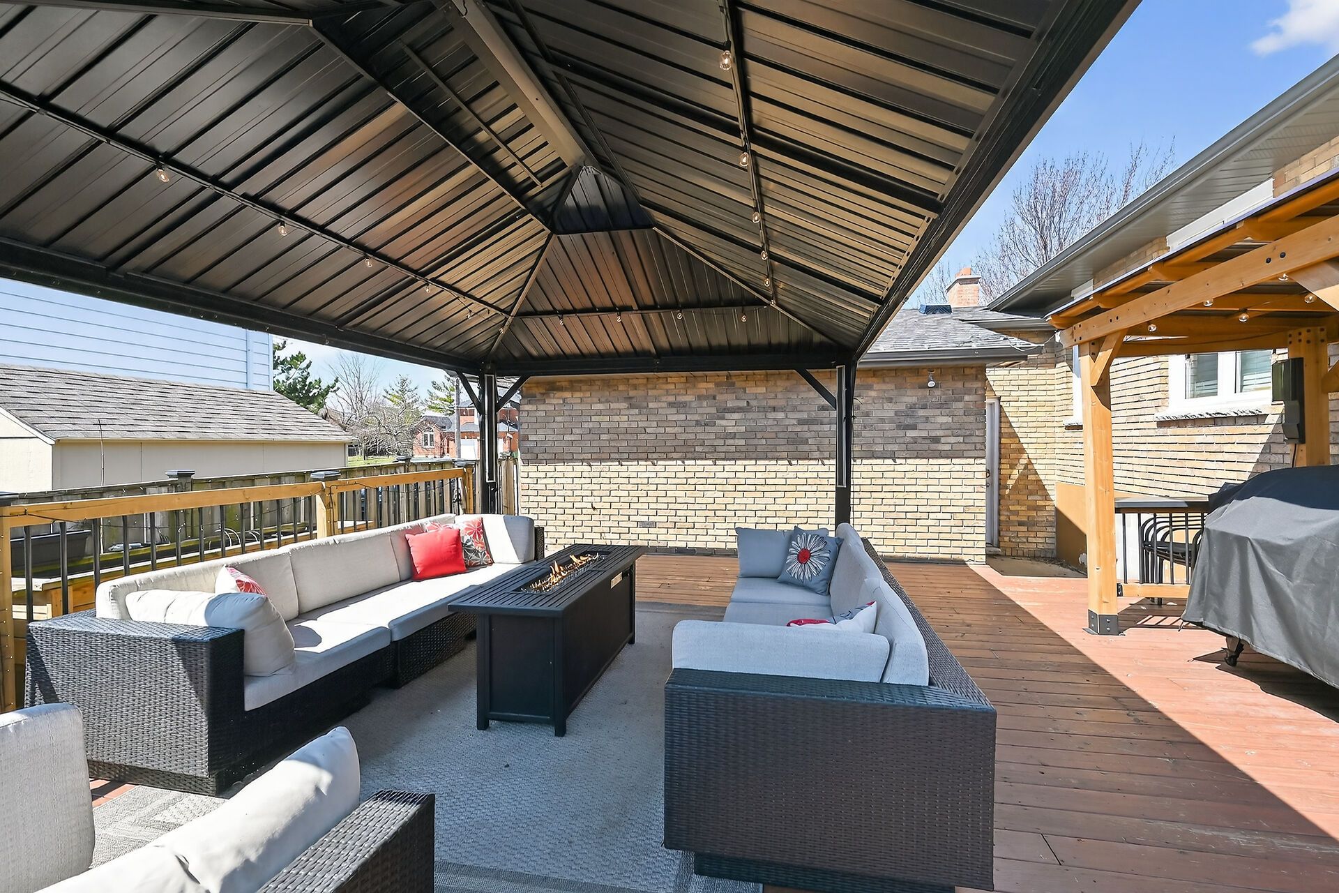 • Private backyard with three gazebos for outdoor living.
