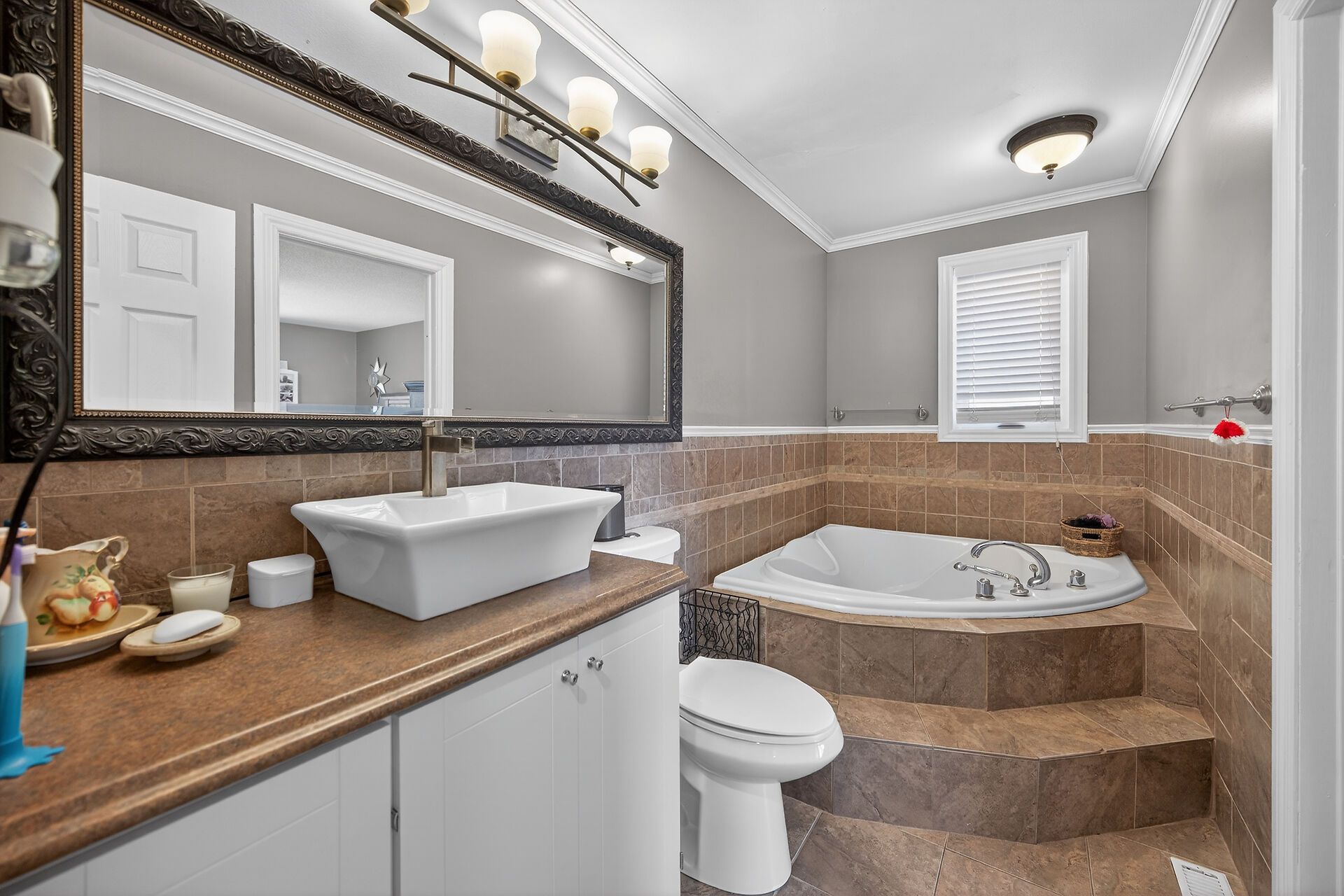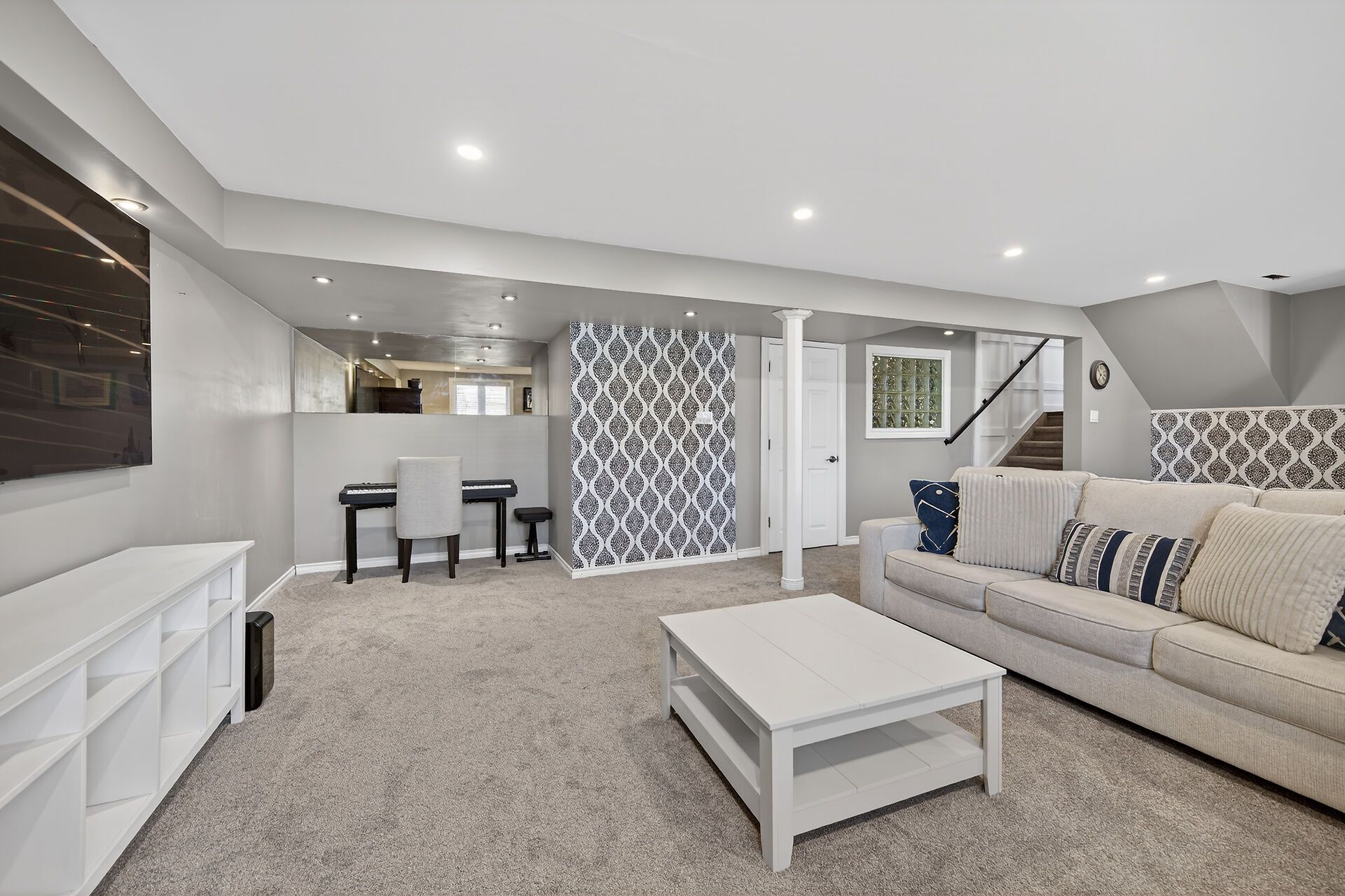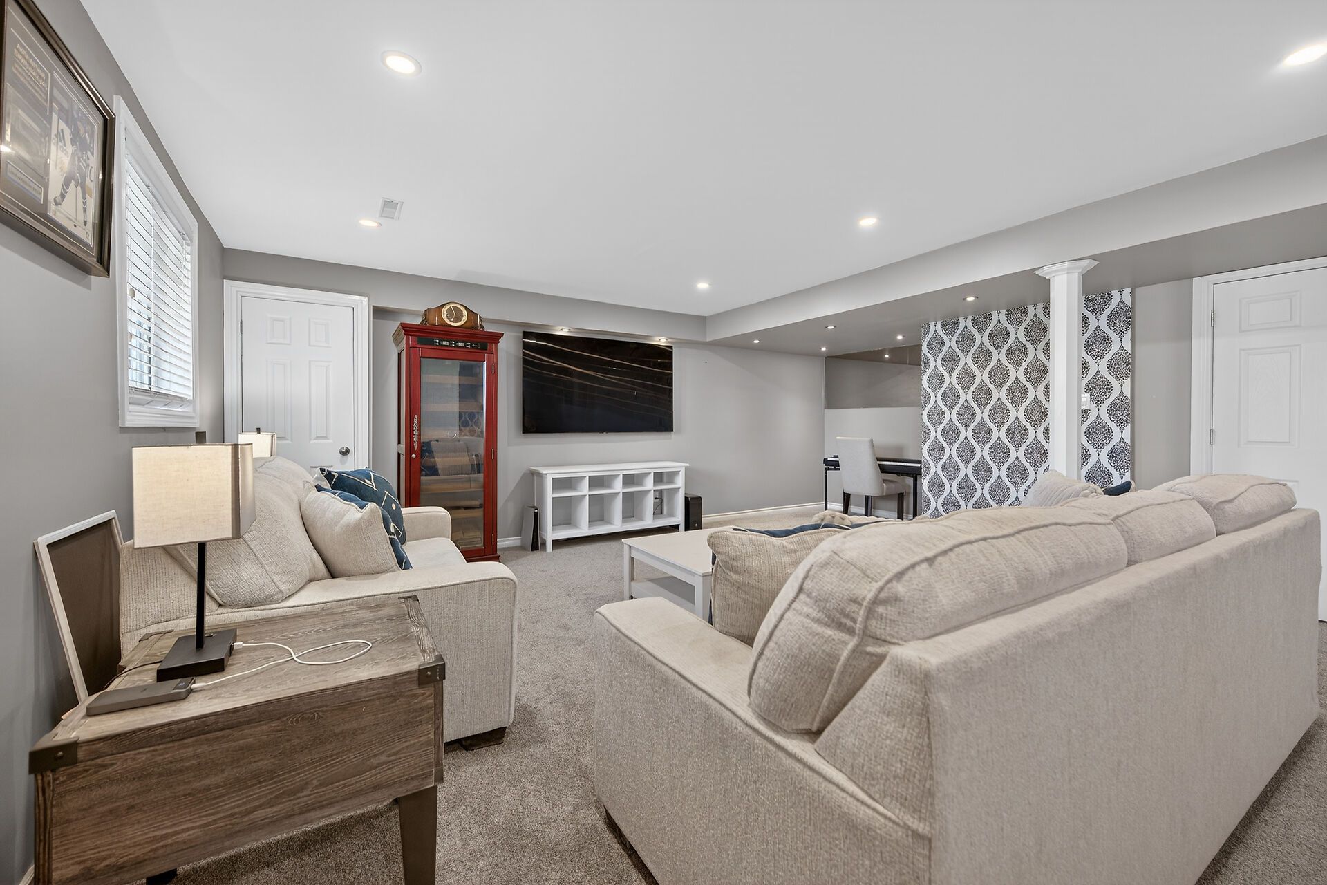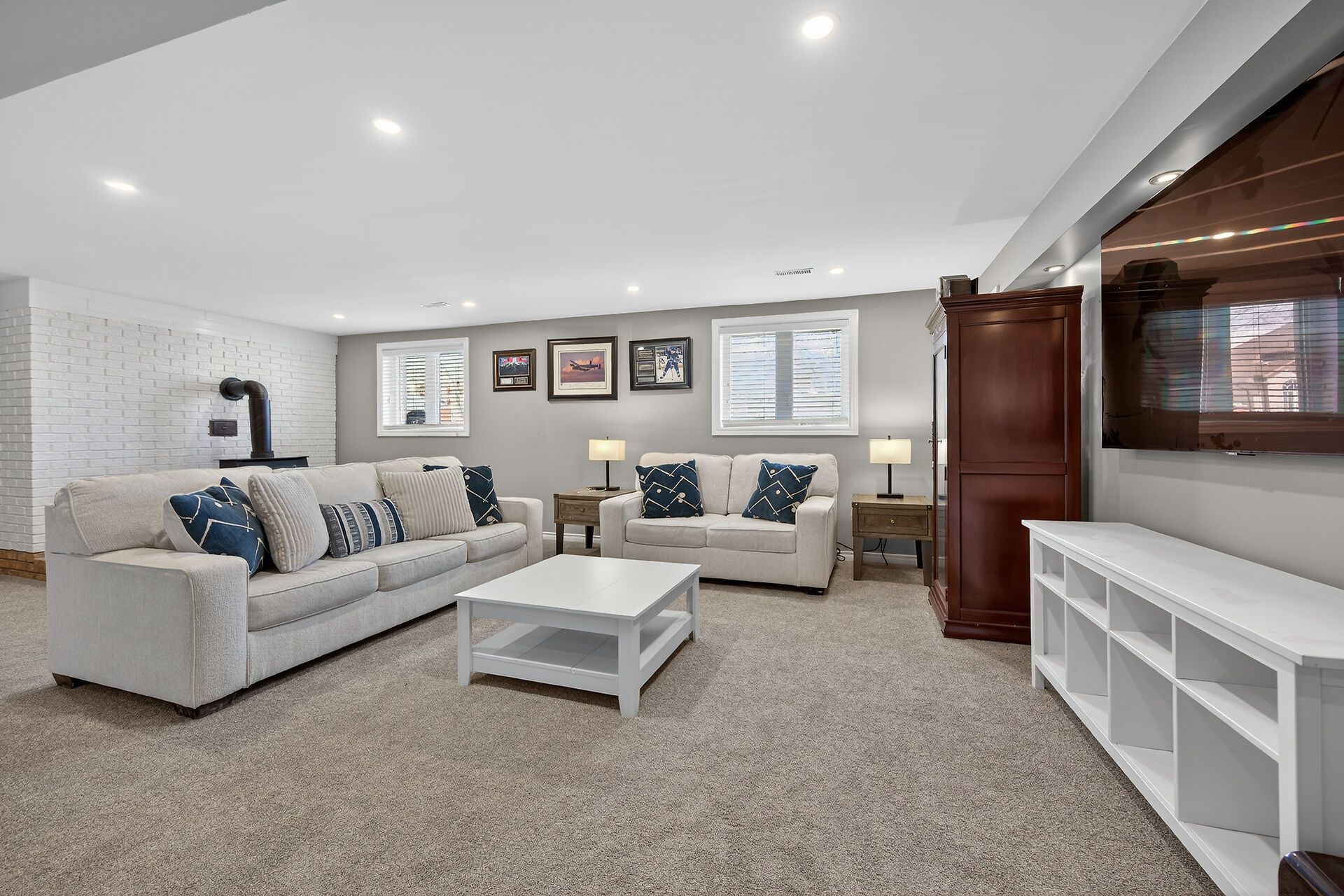 • Finished lower level with family room and extra bedroom.