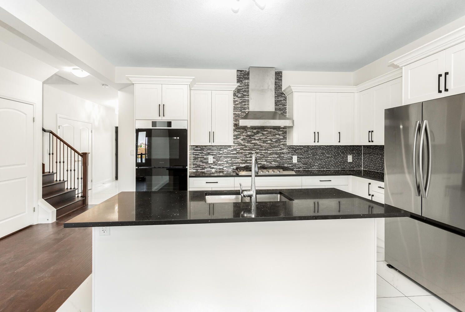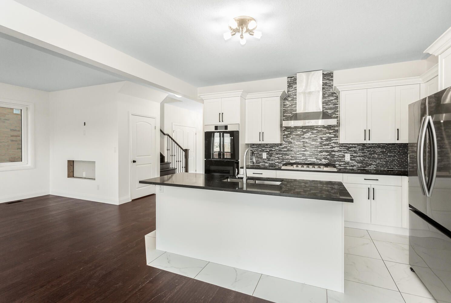 Welcome to 80 grandville circle, featuring the sought-after taj - the modern model with an upgraded elevation that includes elegant partial stone detailing. This stunning 5-bedroom, 4-bathroom detached home offers a functional and spacious floor plan with approximately 3,720 sq. Ft. Of total living space, including the garage. The open-concept main floor showcases a chef's kitchen with upgraded cabinetry, sleek countertops, and brand new appliances including a fridge, cooktop, hood, built-in microwave oven, washer, and dryer. A rare main-floor bedroom with a full bath adds versatility for guests or multigenerational living. The inviting living room is anchored by a cozy fireplace slot and expansive windows that fill the space with natural light. Upstairs, the luxurious primary suite features a spa-inspired ensuite and access to a large balcony deck, perfect for morning coffee or evening relaxation. With a walk-out unfinished basement, 3-car garage, and a premium ravine lot (50. 21 x 114. 42 ft), this home combines style, comfort, and location in one exceptional package. Located in the heart of paris, brant, close to top-rated schools, parks, and shopping, this is a rare opportunity to own a true gem in a thriving community.