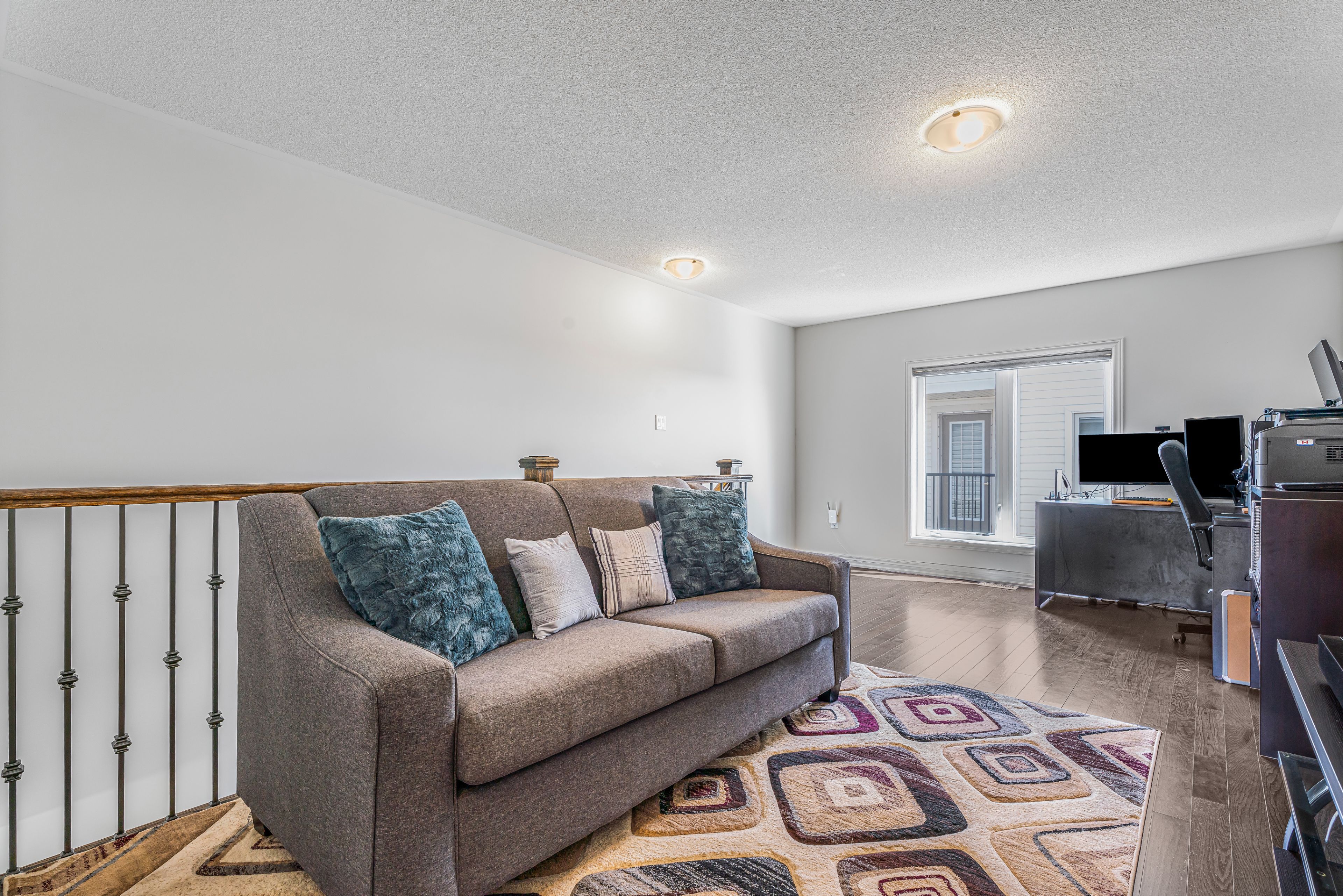 Welcome to 80 harpin way east, an exceptional upgraded detached home, offering over 3500 square foot of thoughtfully designed living space in one of fergus' most desirable family friendly communities. This expansive residence features 5 generously sized bedrooms and 4. 5 washrooms, highlighted by a stunning private loft and third floor study retreat, a rare and highly sought after feature, ideal for a home office, lounge or quiet escape. The added loft level significantly enhances both space and functionality. The main floor showcases an open concept layout with upgraded 9ft and 10ft ceilings, creating a bright and airy atmosphere throughout. Elegant finishes include upgraded flooring, a completely carpet free main level, and a beautifully upgraded staircase with stained oak steps and modern iron spindles. The kitchen is appointed with upgraded silestone countertops, custom cabinetry with crown moldings and premium tile flooring, seamlessly flowing into the main living and dining areas. Upstairs the spacious bedrooms include a primary suite featuring a seamless glass shower and deep soaker tub. A second floor laundry room with a built-in tub adds everyday convenience. The basement offers excellent future potential with enlarged egress windows and a 3 piece washroom rough in already in place. This home also features a high efficiency furnace with hrv system that is owned, a 200 amp electrical panel with level 2 ev charger, a tankless energy efficient water heater that is rented, and a water softener that is owned. Exterior upgrades include a professionally completed interlock driveway and front walkway, adding both curb appeal and functionality, a rare opportunity to own a move in ready home with over 3,500 sq ft of living space, upgraded finishes, and modern systems in a growing and highly sought after community.