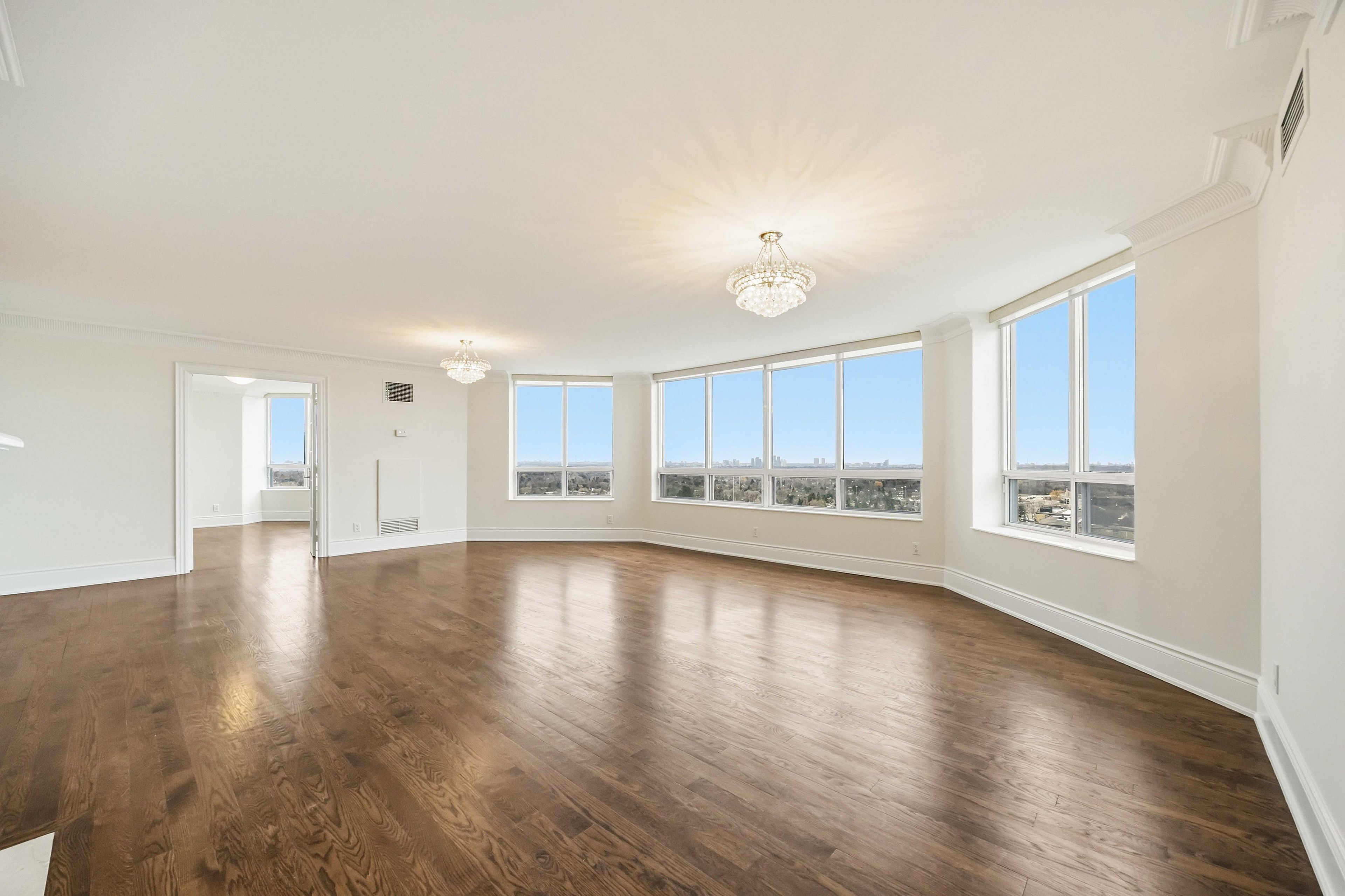 A rare offering in the heart of north york. Boasting 2,350 sq ft of living space, this is one of the largest units in the building perfect for family's, or downsizers, who refuse to compromise on space, comfort, or style. Breathtaking panoramic south-facing view of toronto's iconic skyline, flooding the home with natural light and offering stunning day and night views. The expansive layout includes generously sized principal rooms, a large eat-in kitchen, 2 large bedrooms and 2 large dens, which could easily be used as guest bedrooms. Top tier amenities including a golf simulator, 4 lane bowling alley, tennis court, indoor pool, gym, guest suites, party room, 24hour concierge, and beautifully landscaped grounds. This unit also comes with 3 parking spots and a rare, dedicated large locker room not just a locker, but a private storage space that adds incredible convenience. Don't miss your chance to own this exceptional residence in a highly sought-after tridel-built building. * some photos are virtually staged *