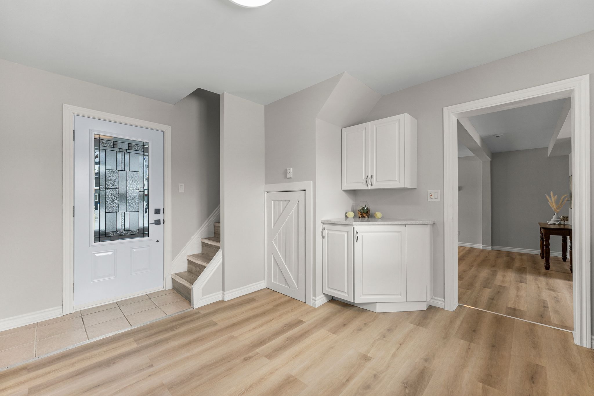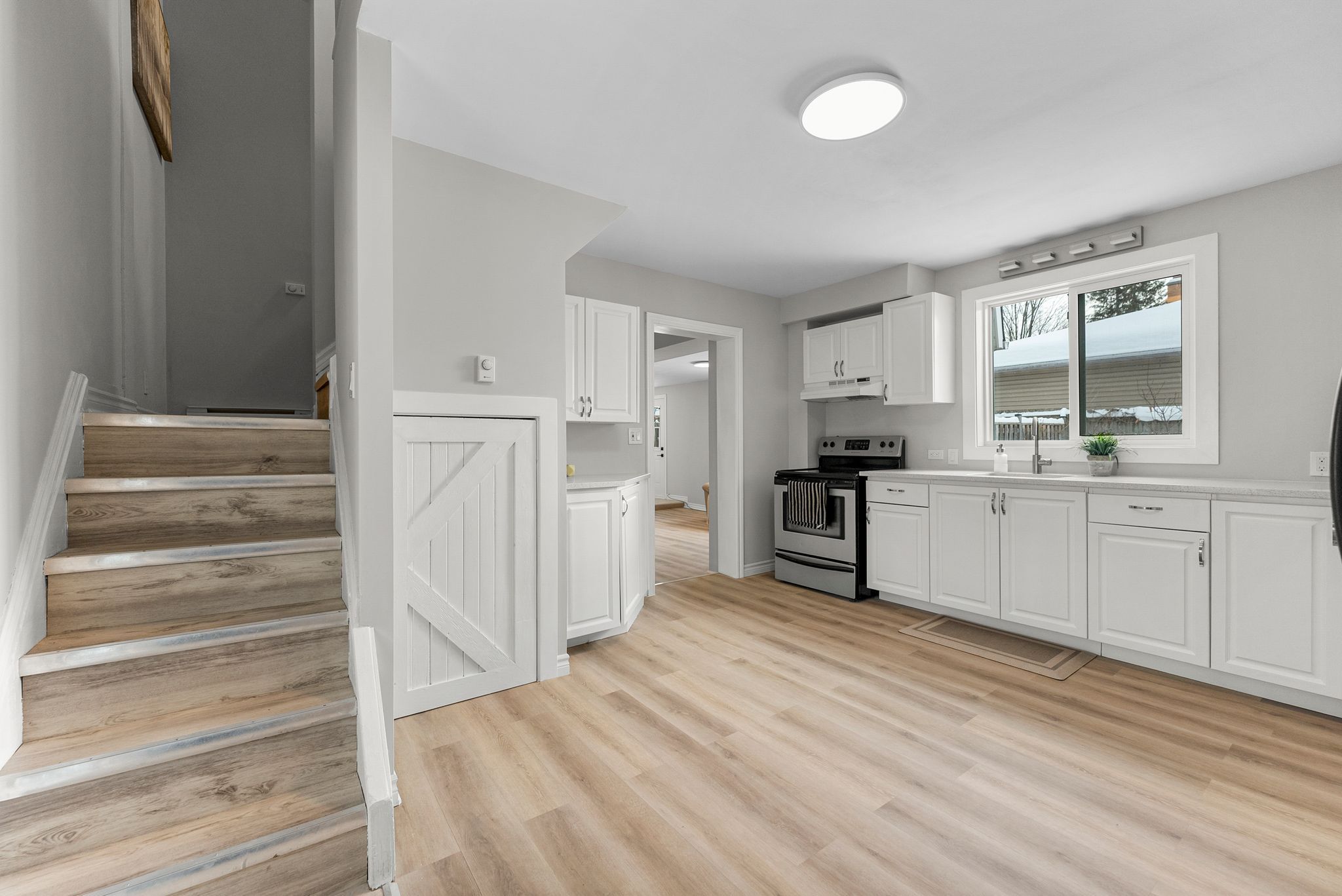 Investment opportunity - 80 hunter street, pembroke. Well-maintained turn-key triplex featuring two 3-bedroom apartments and one 2-bedroom apartment, each with its own garage space plus fenced yard/green space-a rare tenant-friendly bonus. The 2-bedroom unit and one 3-bedroom unit are occupied by quality tenants, while the centre 3-bedroom unit is available for rent and has been beautifully refreshed with quality flooring, quartz counters, and fresh paint. Extensive improvements have been completed throughout the property, including: roof sections redone (2020 and autumn 2025), three new garage doors (2022), exterior paint including aluminum siding (2025), new bathroom fans with improved venting, and re-clad front garage pillars. Updated list unit 1 upgrades include a new gas furnace (2017), windows replaced (2018), plus new vinyl flooring (2026) and new stair carpet runner (2026). Updated list unit 2 (centre) was completely redone 2025-2026, featuring new windows and exterior doors, new vinyl flooring (1st floor and stairwell), updated electrical finishes (baseboard heaters, light fixtures, receptacles, switches), updated kitchen with quartz countertops and newer appliances, new drywall and full repaint, new interior and closet doors, updated bathrooms with new vanities/toilets/fixtures, new tile in second bath, plus added soundproofing between units. Updated list unit 3 includes new exterior doors (2025) and three new bedroom windows scheduled for installation feb 24, 2026.