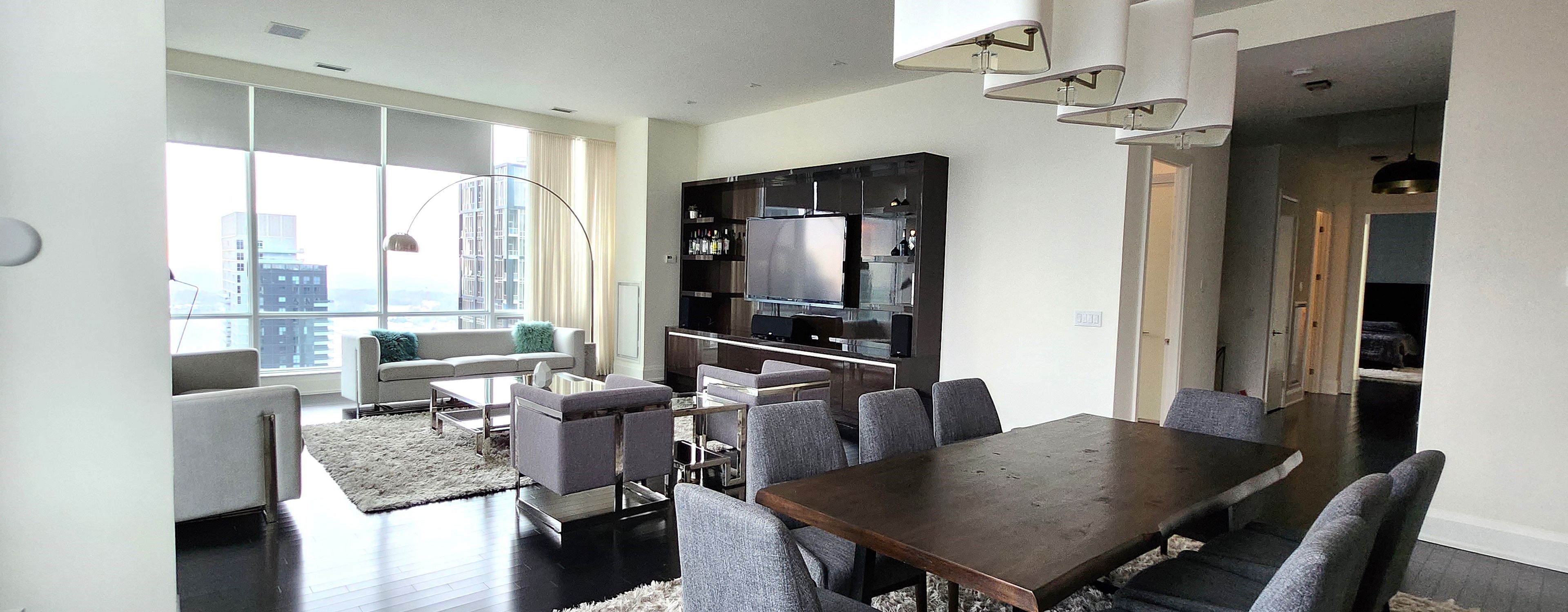 • Bright living space with 12-foot ceilings and floor-to-ceiling windows.