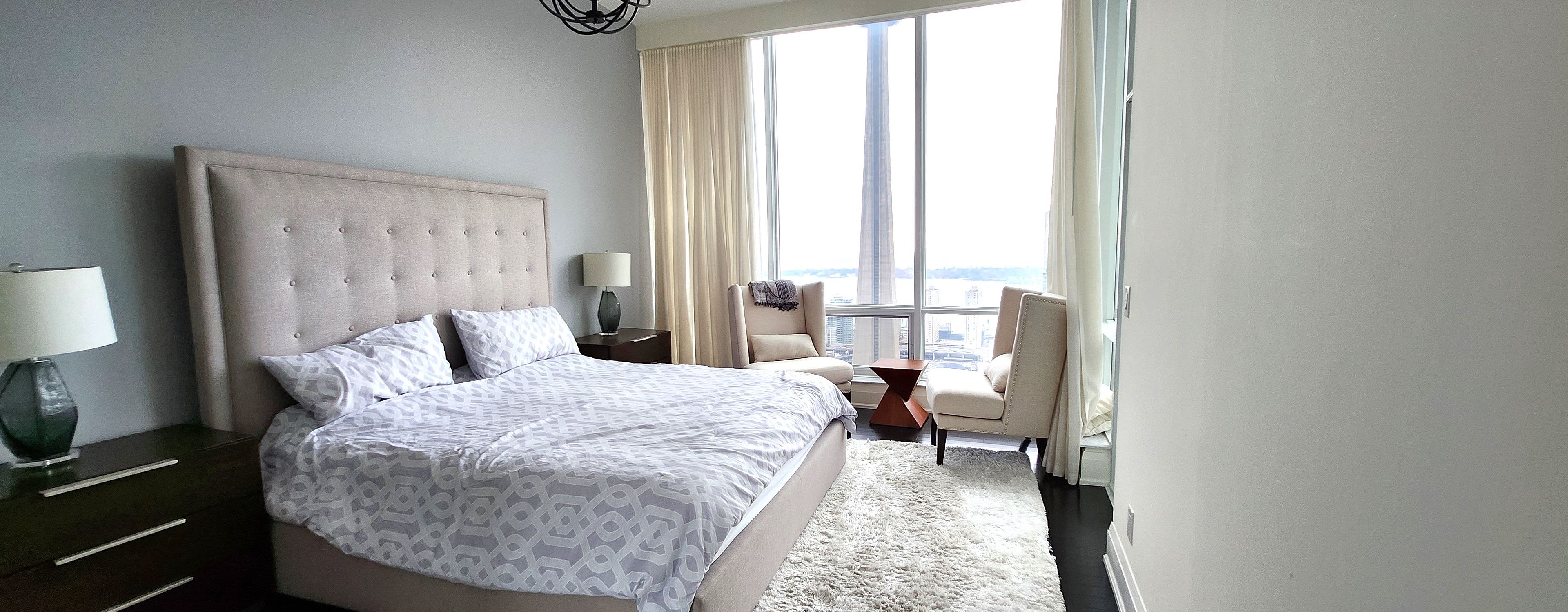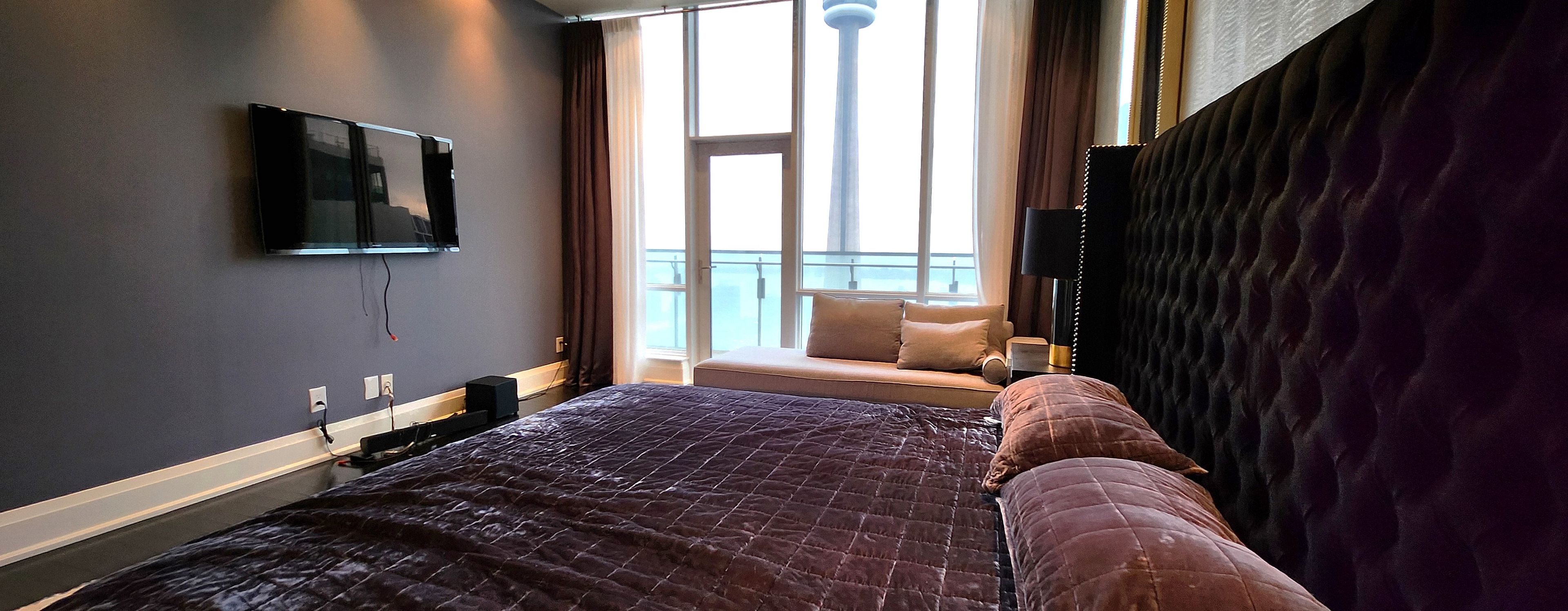 Live in the heart of the entertaining district with spectacular view of the cn tower, lake, rogers centre, and city skyline. 12 foot ceiling with ceiling to floor windows makes the living space vibrant with natural light. Two balconies to take in the fresh air and breathtaking views. Steps to shops, resturants, bars, etc. **extras** closed off parking area and a huge locker included. Electrical blinds.