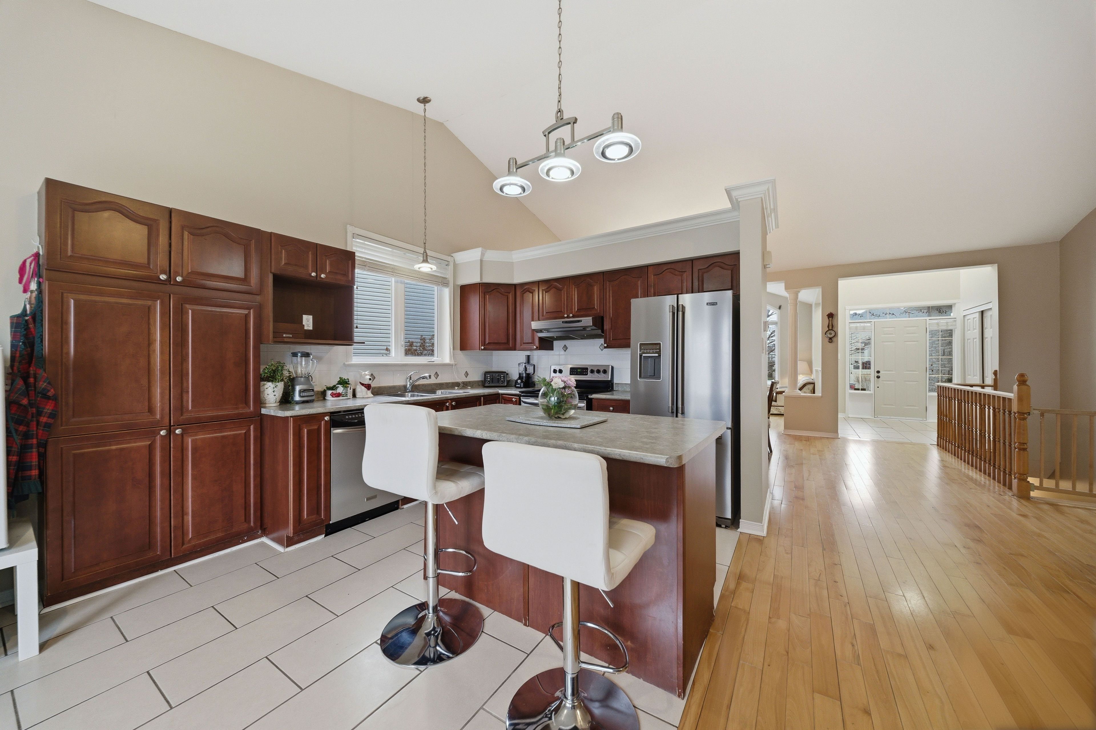 Welcome to 80 la prairie street in the sought-after community of embrun. This former model home offers an exceptional blend of comfort, style, and functionality, ideal for families and those who love to entertain. Step inside to a bright and spacious main level featuring a thoughtfully designed layout with a welcoming family room, elegant living room, formal dining area, and a charming eat-in kitchen. Beautiful vaulted ceilings enhance the sense of space and natural light, creating an inviting atmosphere throughout. Cozy up by the fireplace on cold winter evenings or enjoy warm summer days in your private backyard oasis. Outdoors, the fully fenced yard features a stunning heated in-ground saltwater pool, perfect for relaxing or hosting guests. With no rear neighbours and a park directly behind the property, you will appreciate the added privacy and easy access to green space. The yard also includes raspberry bushes that produce fresh, homegrown fruit! The primary bedroom offers a peaceful retreat with a walk-in closet and a well-appointed 4-piece ensuite bathroom. Additional highlights include a double car garage, convenient main floor laundry, and a combination of tile, hardwood, and wall-to-wall carpet flooring throughout. The finished basement provides a generous additional living space, ideal for a recreation room, home gym, office, or media area. This home delivers space, comfort, and location in one complete package.