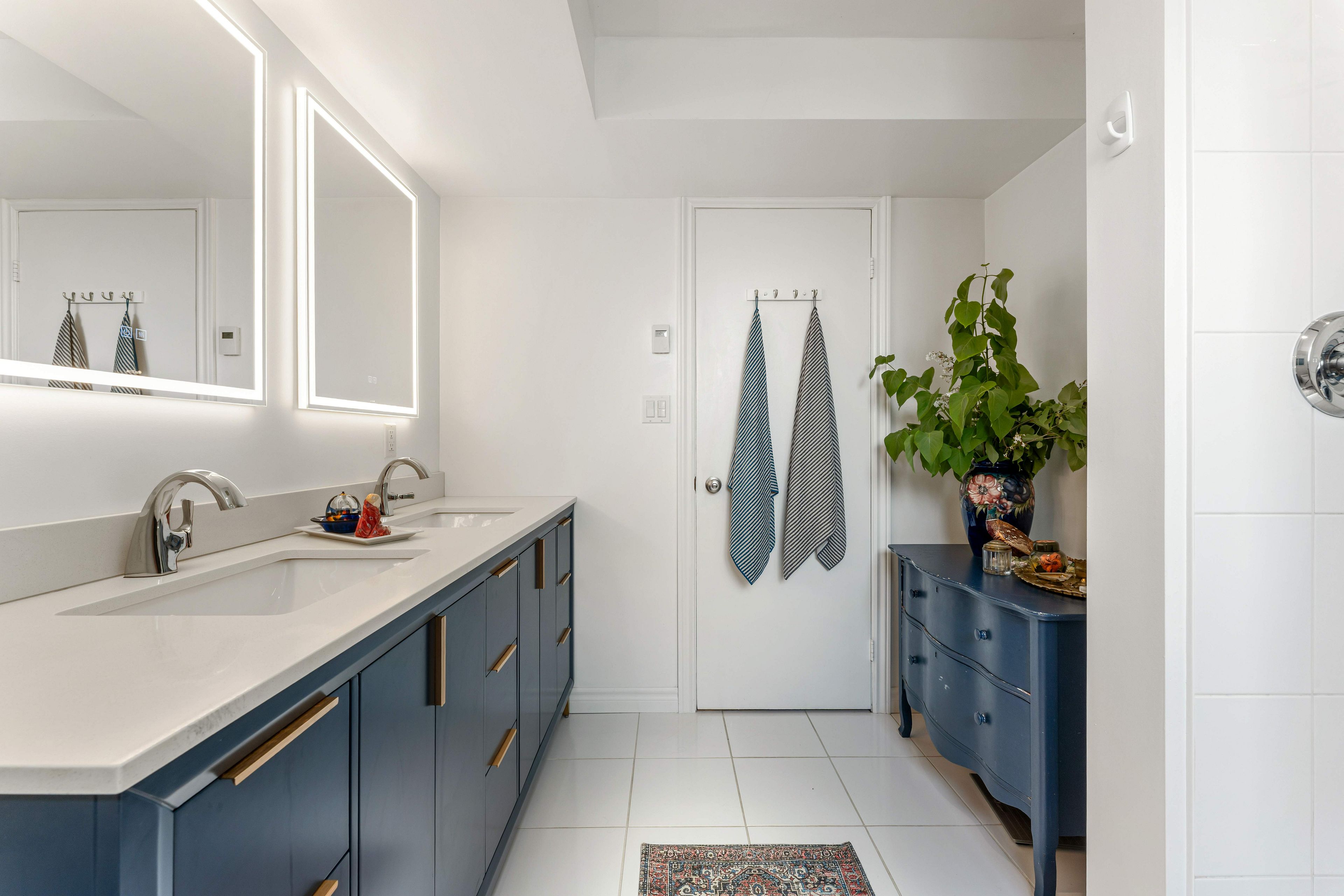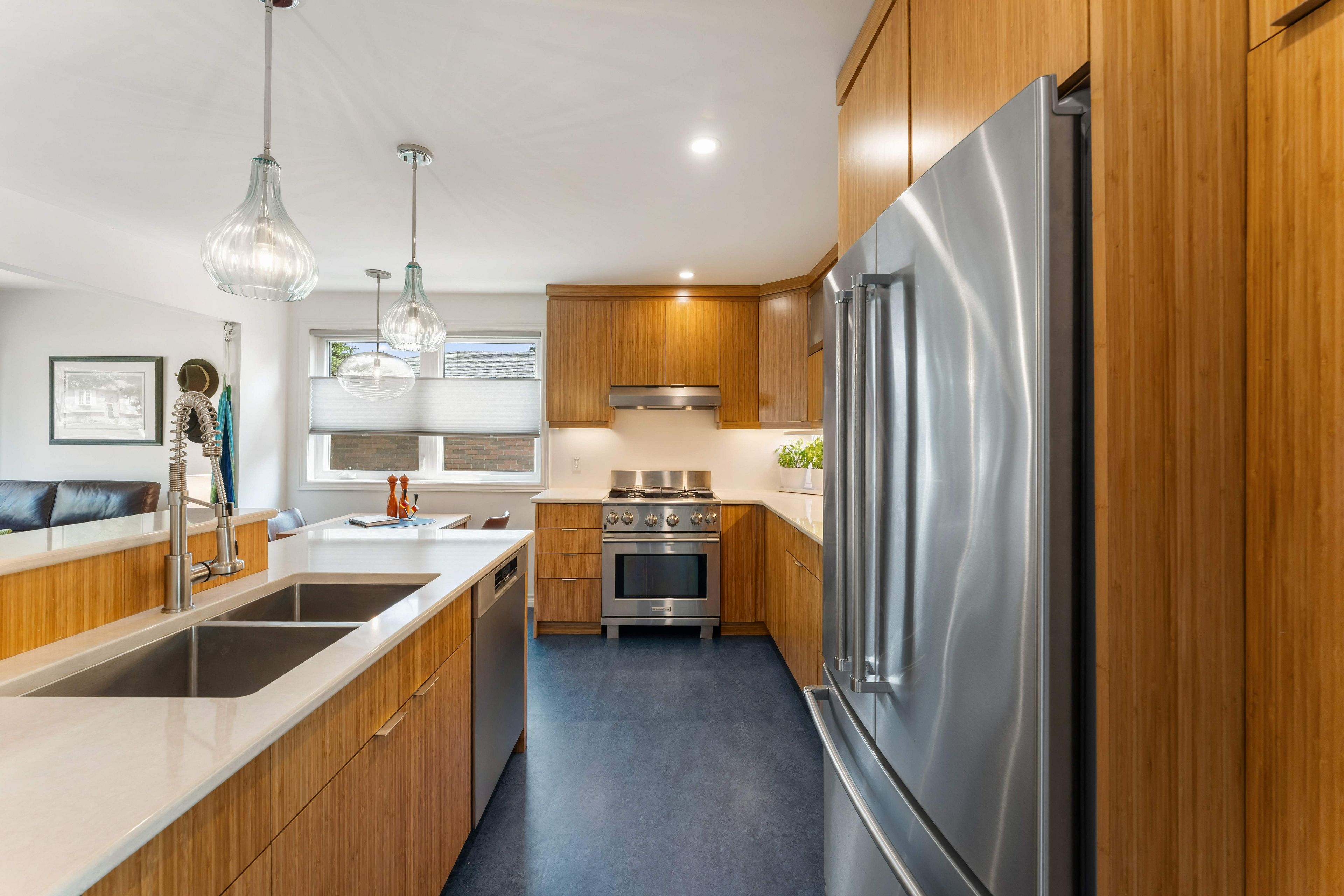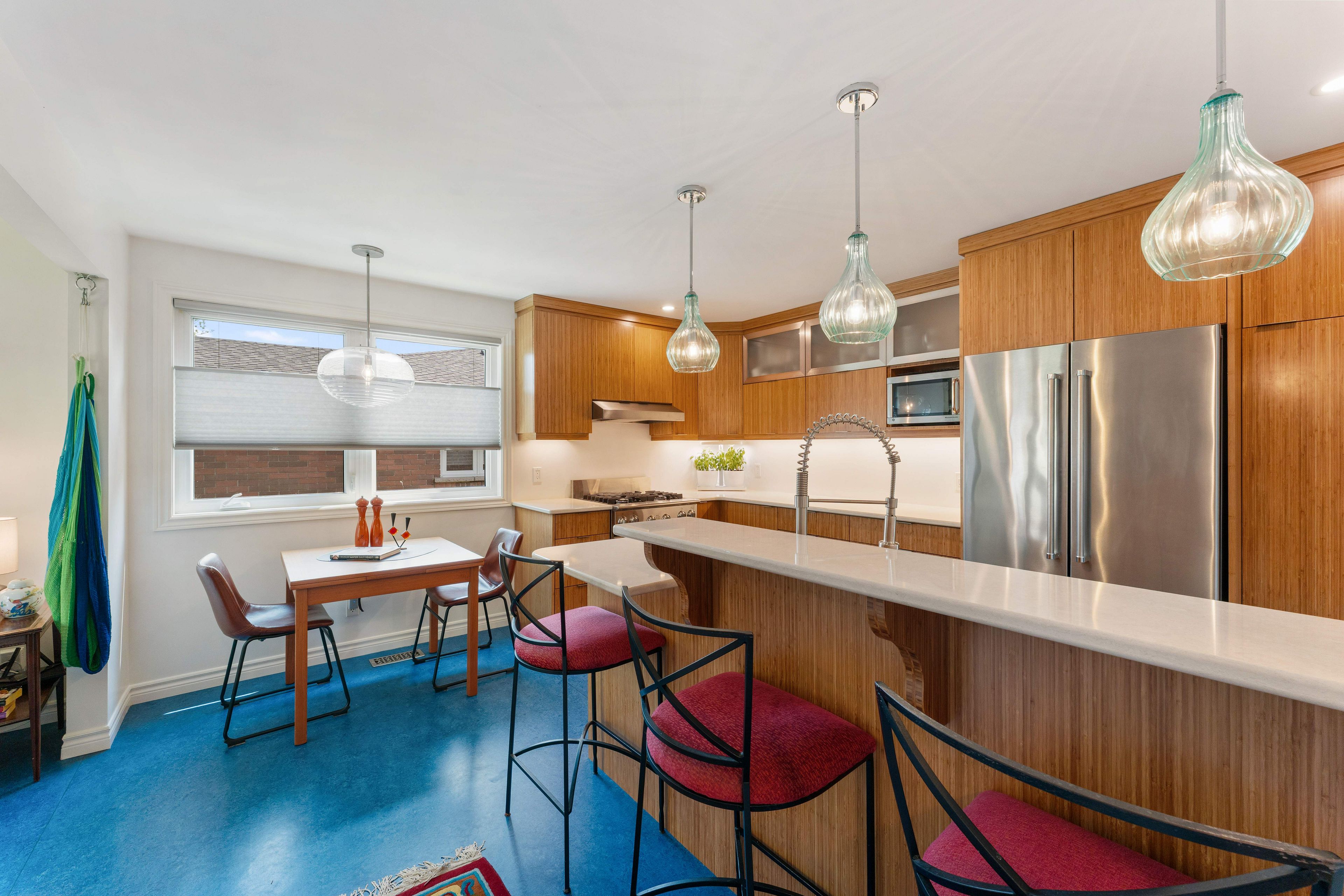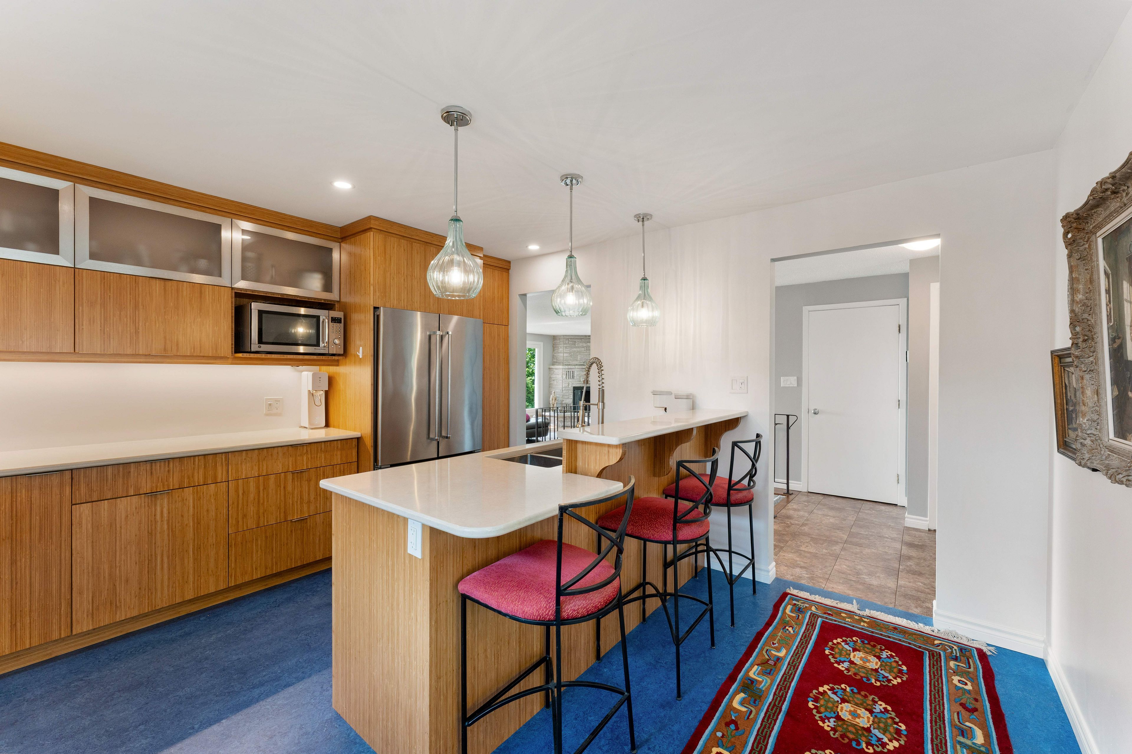 • Well-appointed kitchen with quartz countertops and breakfast bar.
