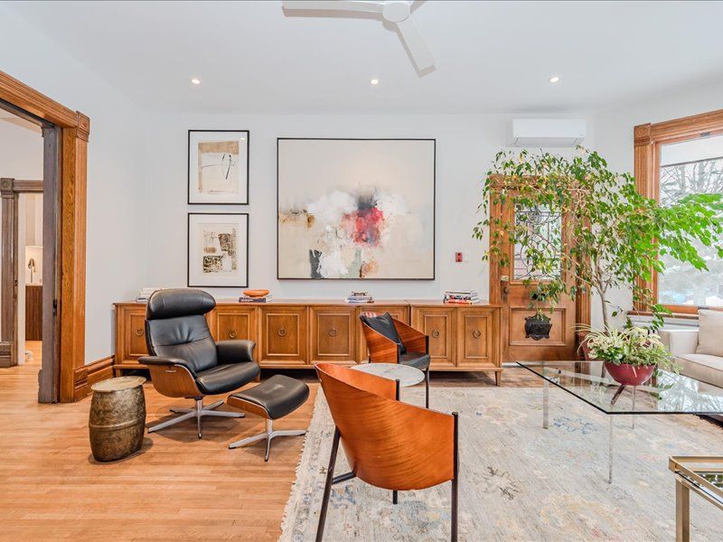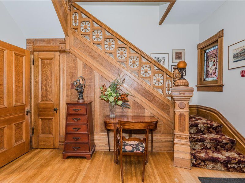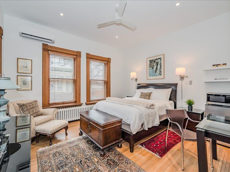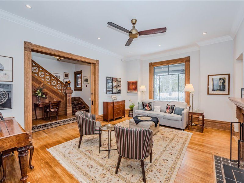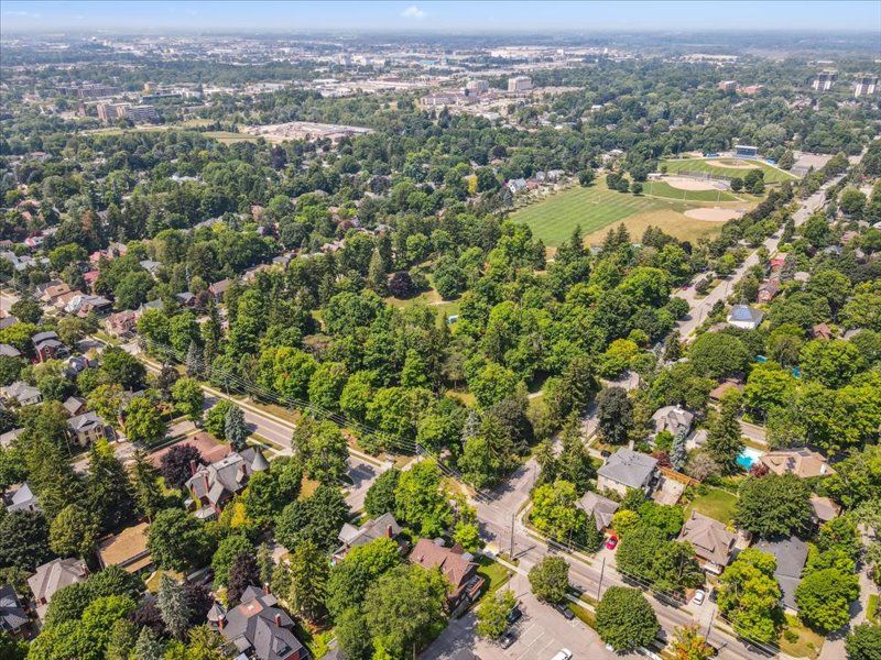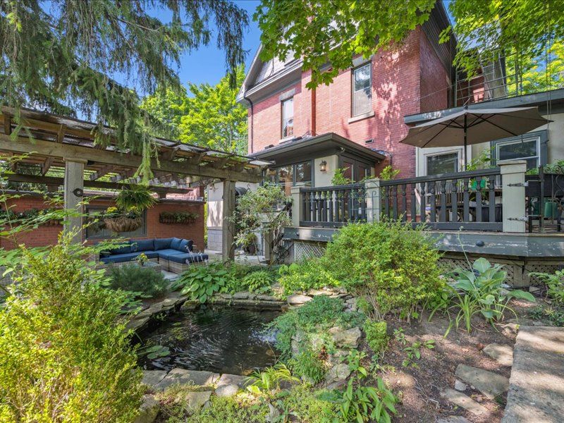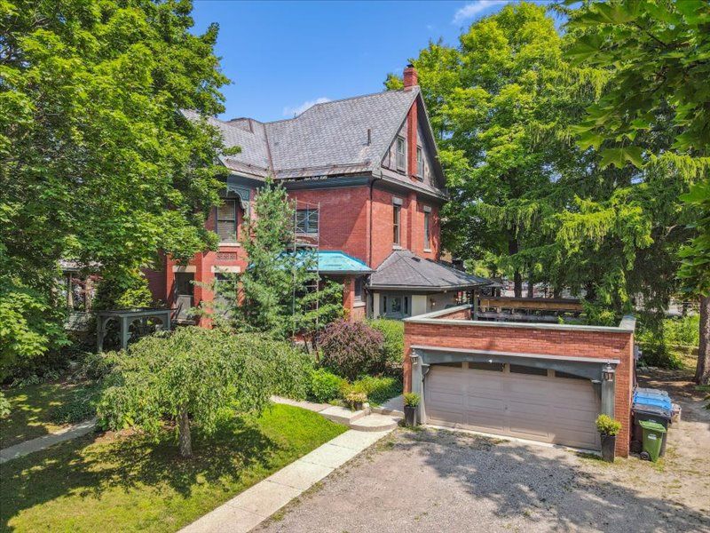 Experience the best of both worlds in this exquisite heritage victorian, where historic charm meets modern family life. Located just steps from exhibition park, a guelph landmark with playgrounds, tennis courts, sports field and gorgeous landscaping. A quick walk to downtown guelph's vibrant core, this home is designed for today's active family. The main living space is a showcase of classic style and contemporary comfort, with soaring 9-foot ceilings and custom burled oak woodwork. The chef-inspired paragon kitchen, equipped with high-end fisher & paykel and miele appliances, is perfect for everything from daily meals to large family gatherings. Recent updates have meticulously preserved the home's character while enhancing its livability. This expansive residence offers incredible versatility with 7 bedrooms and 7 bathrooms. The upper level features a beautifully appointed legal three-bedroom apartment, ideal retreat for an au pair, private space for a teenager, or a suite for visiting relatives. A separate legal one-bedroom suite on the lower level is perfect for in-laws or a tenant, providing comfort and privacy for multi-generational living. Fully equipped with 9 mini-split heat pumps, as well as radiant heating, to keep everyone comfortable year round. Outside, the unique patterned slate roof and charming wrap-around porch add to the home's curb appeal. The peaceful backyard oasis, featuring a fish pond, covered pergola and a lovely perennial garden that blooms in all seasons, is truly a private retreat for family and friends. A detached double garage provides excellent parking and storage solutions. So many living options with this legal triplex, don't miss this one-of-a-kind home built for family life.