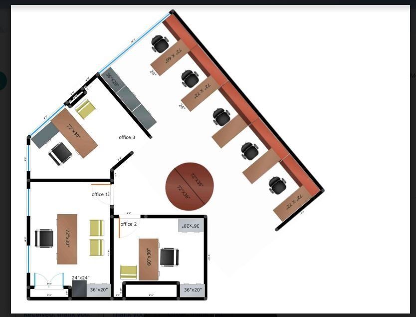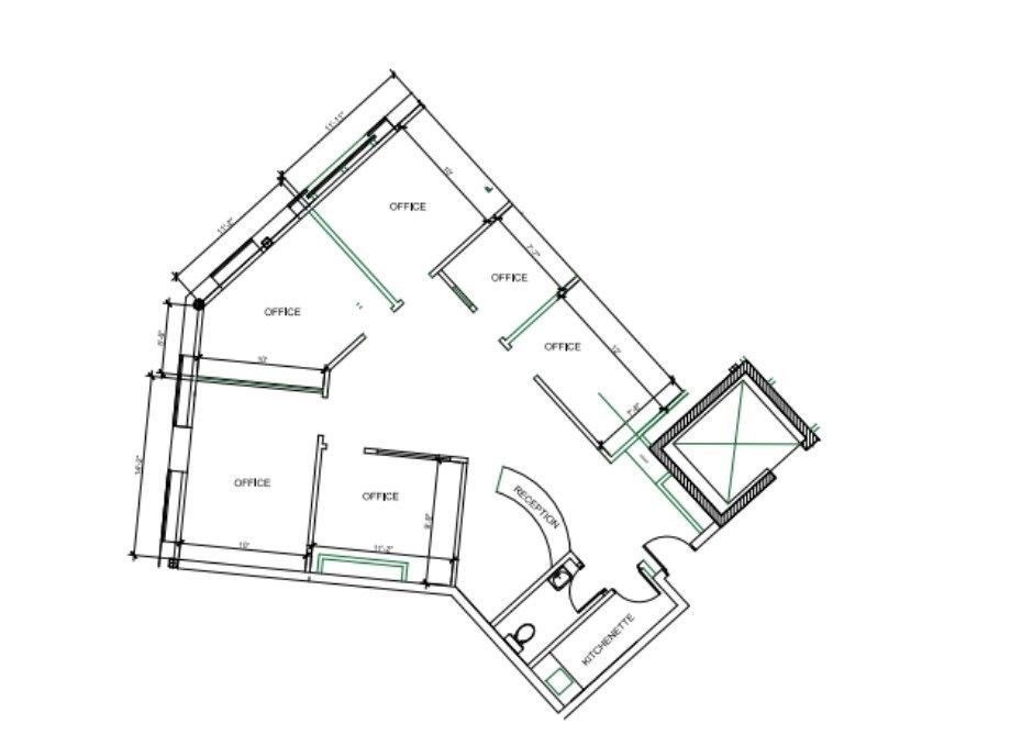 • Approximately 1,200 sq. ft. with three private offices and reception area.