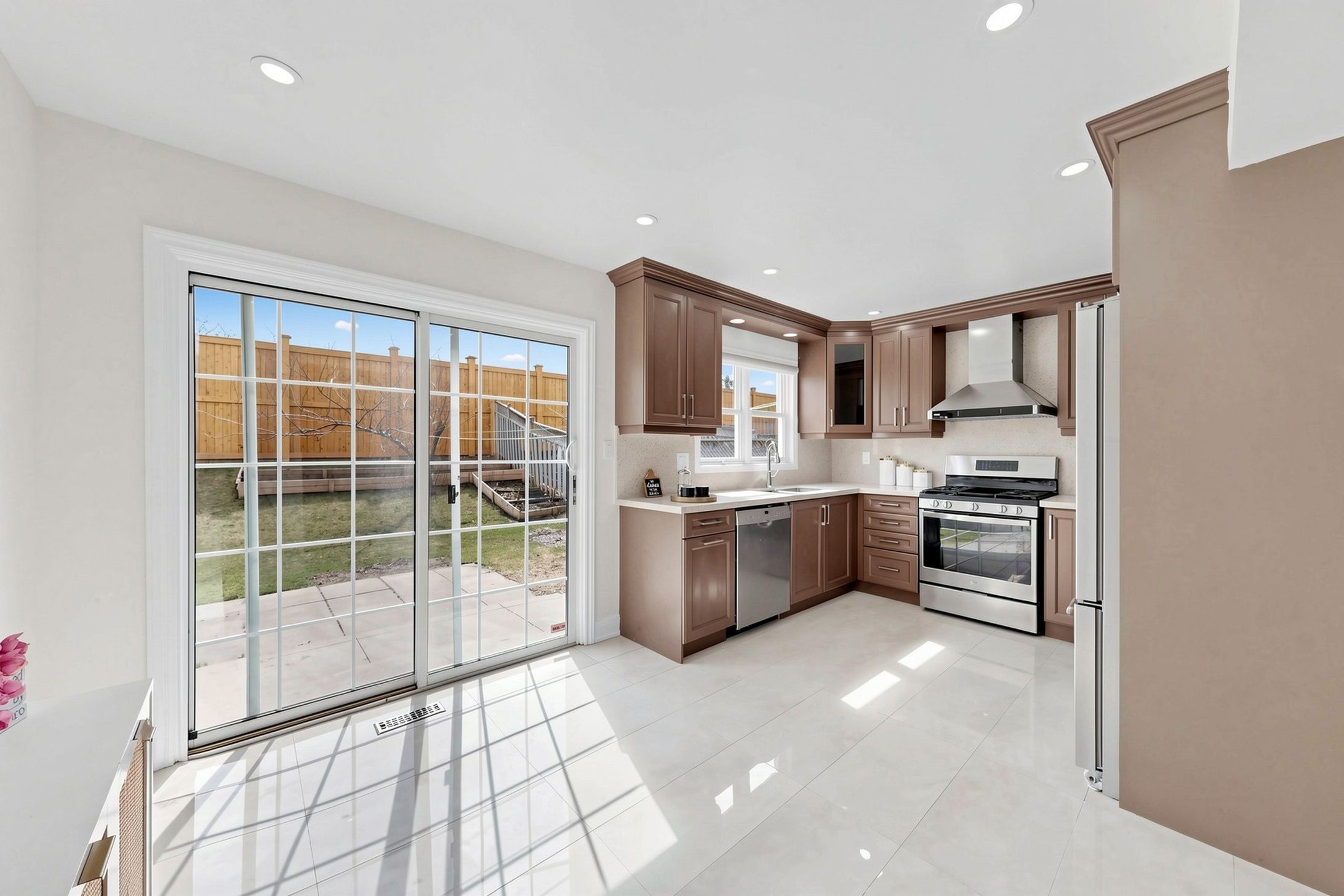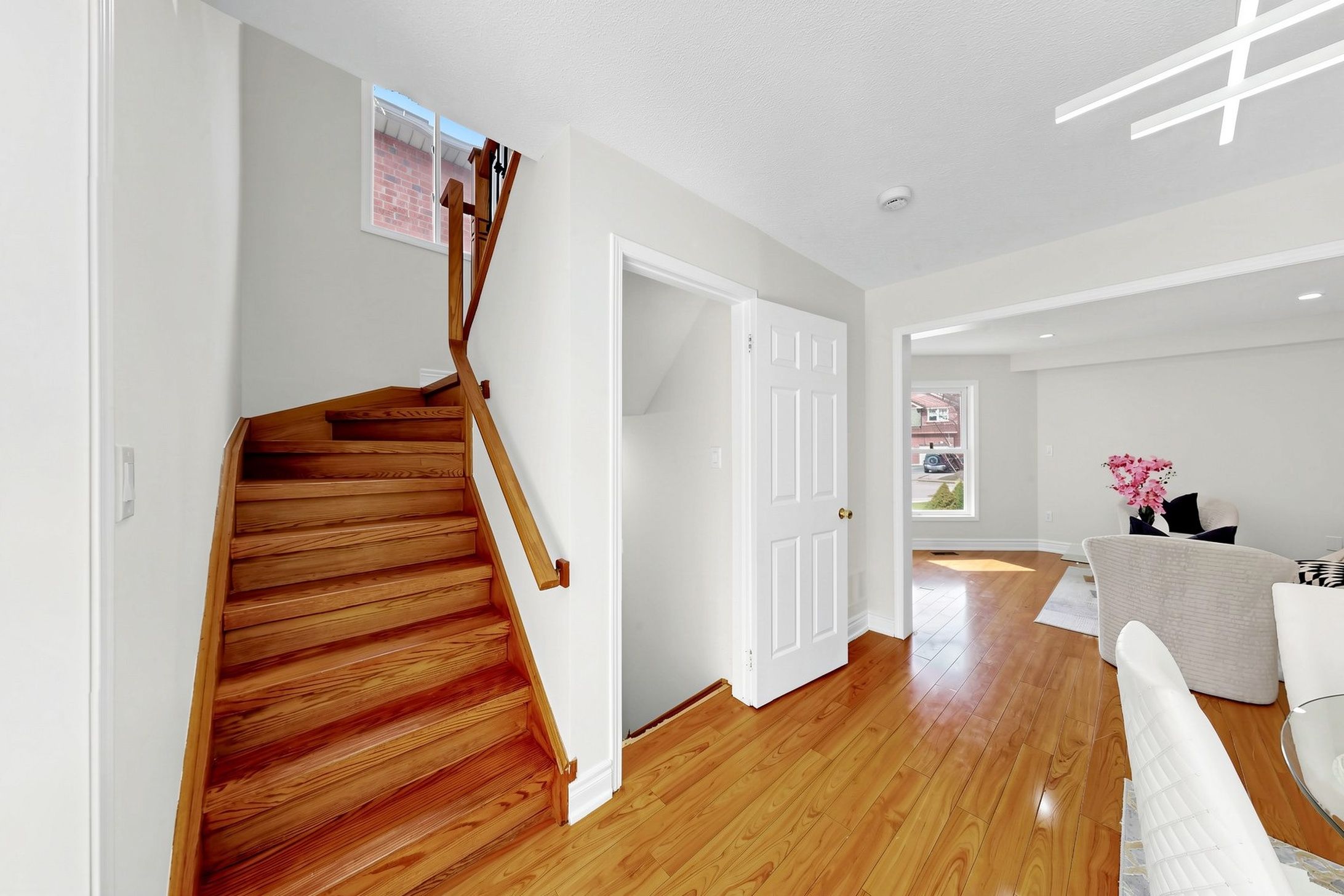 Welcome to this elegantly designed 3-bedroom semi-detached home, set on a generous lot with anexpansive backyard perfect for relaxation and entertaining. The home boasts stunning laminateflooring throughout, providing a seamless, carpet-free environment. The modern kitchen,highlighted by quartz countertops ,backsplash and s/s appliances. The finished basement,featuring a separate entrance and an additional bedroom, 3 pc wrm and a small kitchen offersversatility ideal for guests, in-laws, or potential rental income. Located close to a rangeof amenities, schools, and public transit. Don't miss this opportunity to own a home thatperfectly balances style, comfort, and location. Lots of upgrads- new powder rm, new painting,hot water tank owned.