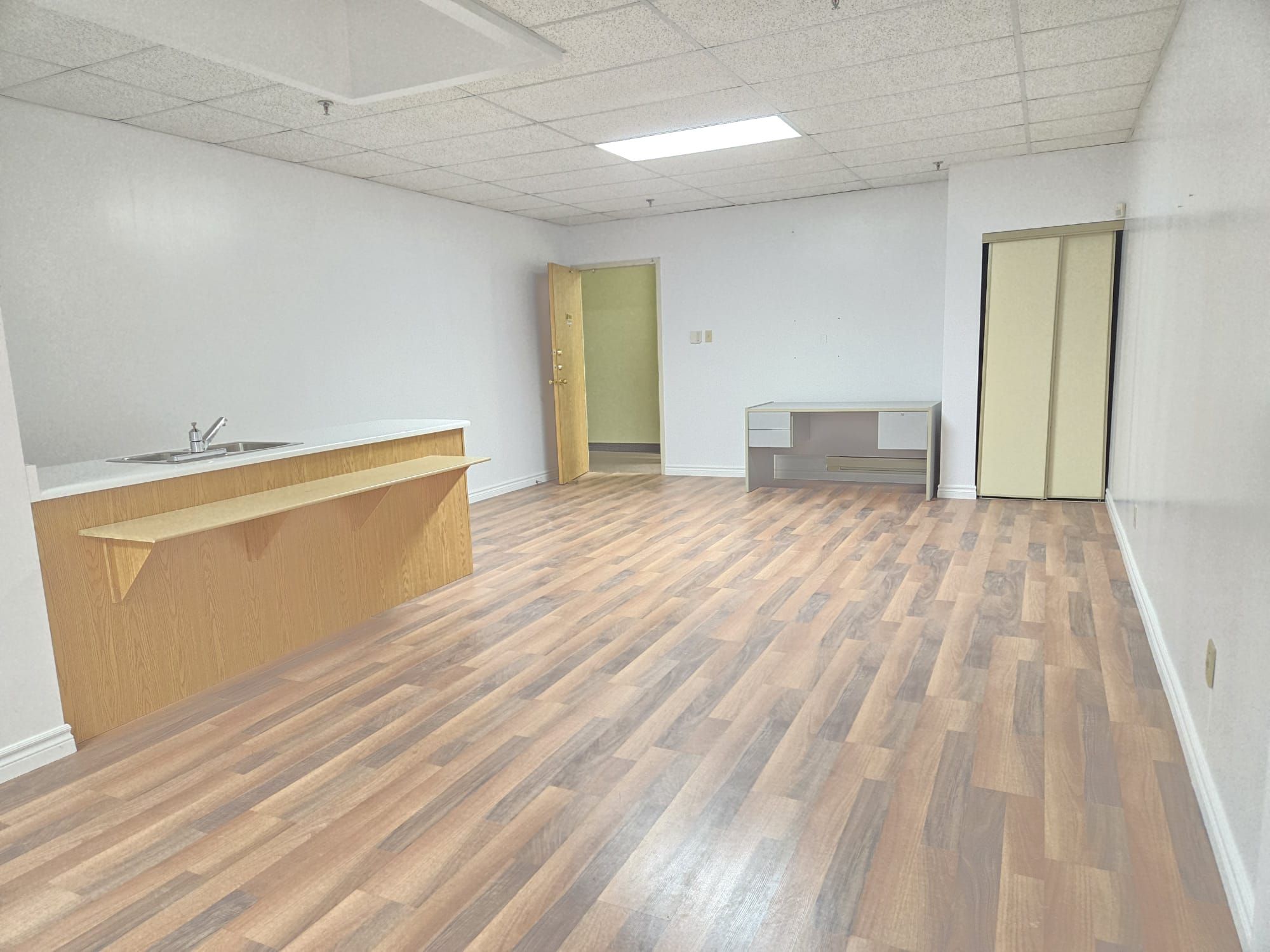 • Office condominium suite with laminate flooring and skylight for a bright atmosphere.