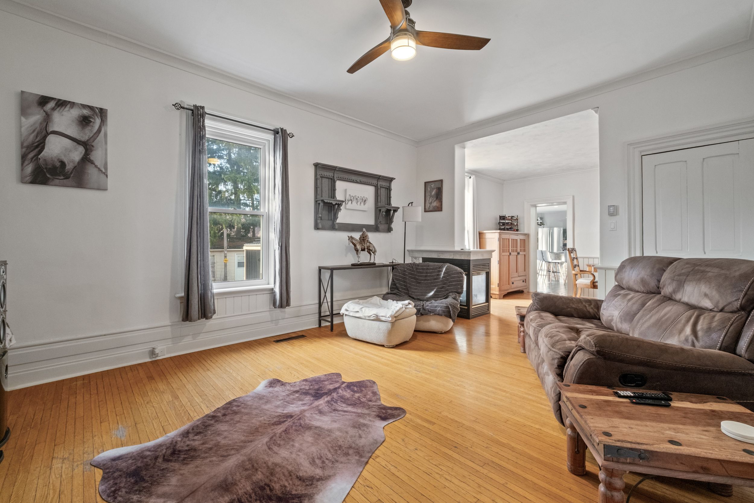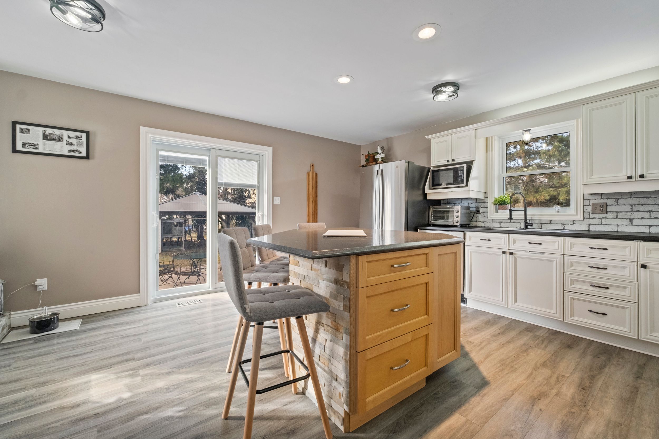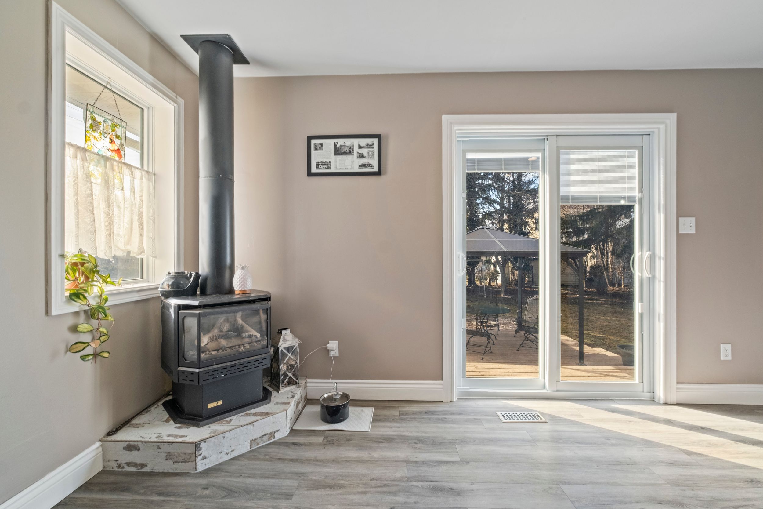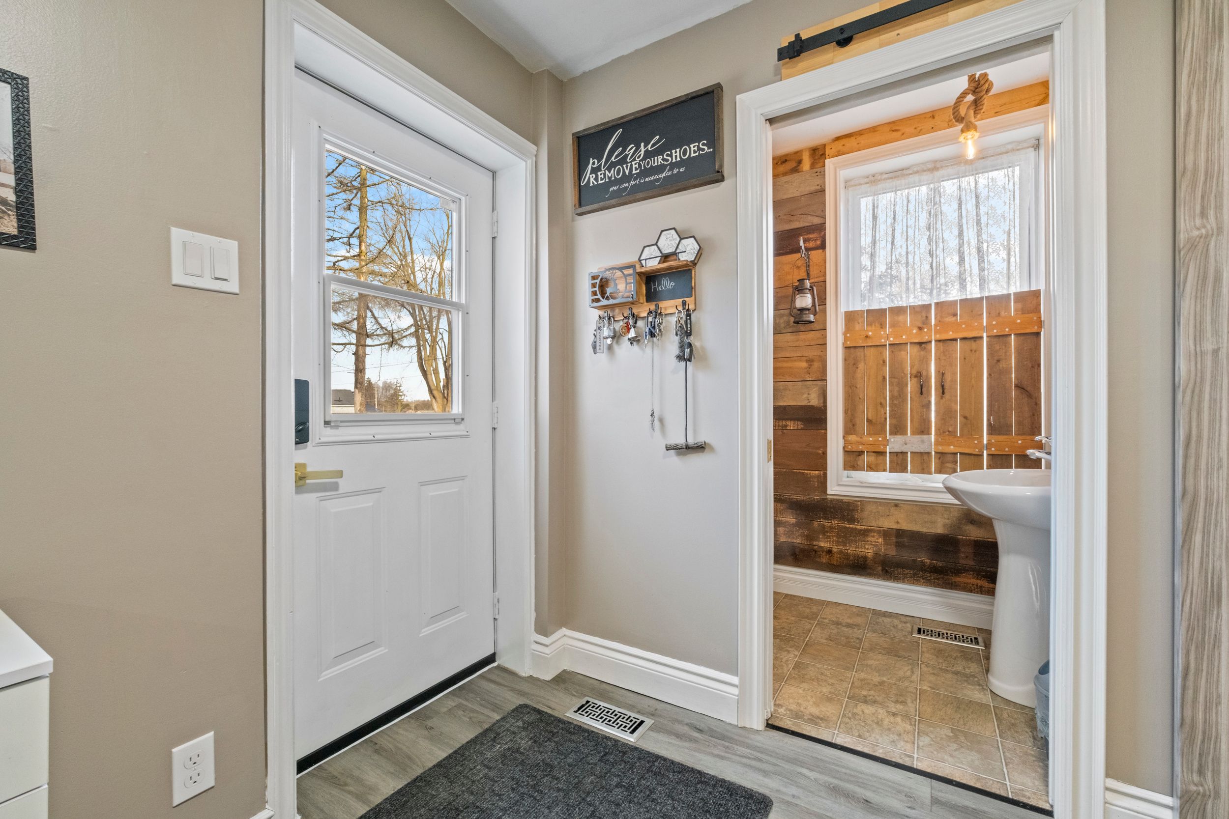 This charming yellow brick 2-storey home offers a blend of character and functionality in the heart of hensall, complemented by incredible curb appeal. Featuring 4 bedrooms and 2 bathrooms, the home includes a spacious kitchen with island seating and appliances that flows seamlessly into a large dining area and inviting living room, highlighted by a striking 3-sided fireplace. Hardwood floors, high ceilings, and original details such as pocket doors add timeless appeal, while a dedicated office space with built-ins enhances everyday living. A thoughtfully designed mudroom with direct access from nelson street adds convenience for busy households. Upstairs, you'll find four well-sized bedrooms, a 4-piece bathroom, and the added convenience of second-floor laundry. The basement provides excellent storage, a 2-piece bathroom, and in-floor heating in the addition for added comfort. Mechanical updates include 200-amp electrical service and central air (2022). Set on a fully fenced lot, the outdoor space is ideal for entertaining, featuring a two-tier deck, two gazebos, and an outdoor kitchen with hydro. A detached insulated shop with a concrete floor and steel exterior, along with a separate guest or pool house with hydro, adds versatility. The expansive lot also offers potential for severance (buyer to verify), presenting additional future opportunity. Complete with a double-wide paved driveway, this property delivers space, character, and flexibility both inside and out.