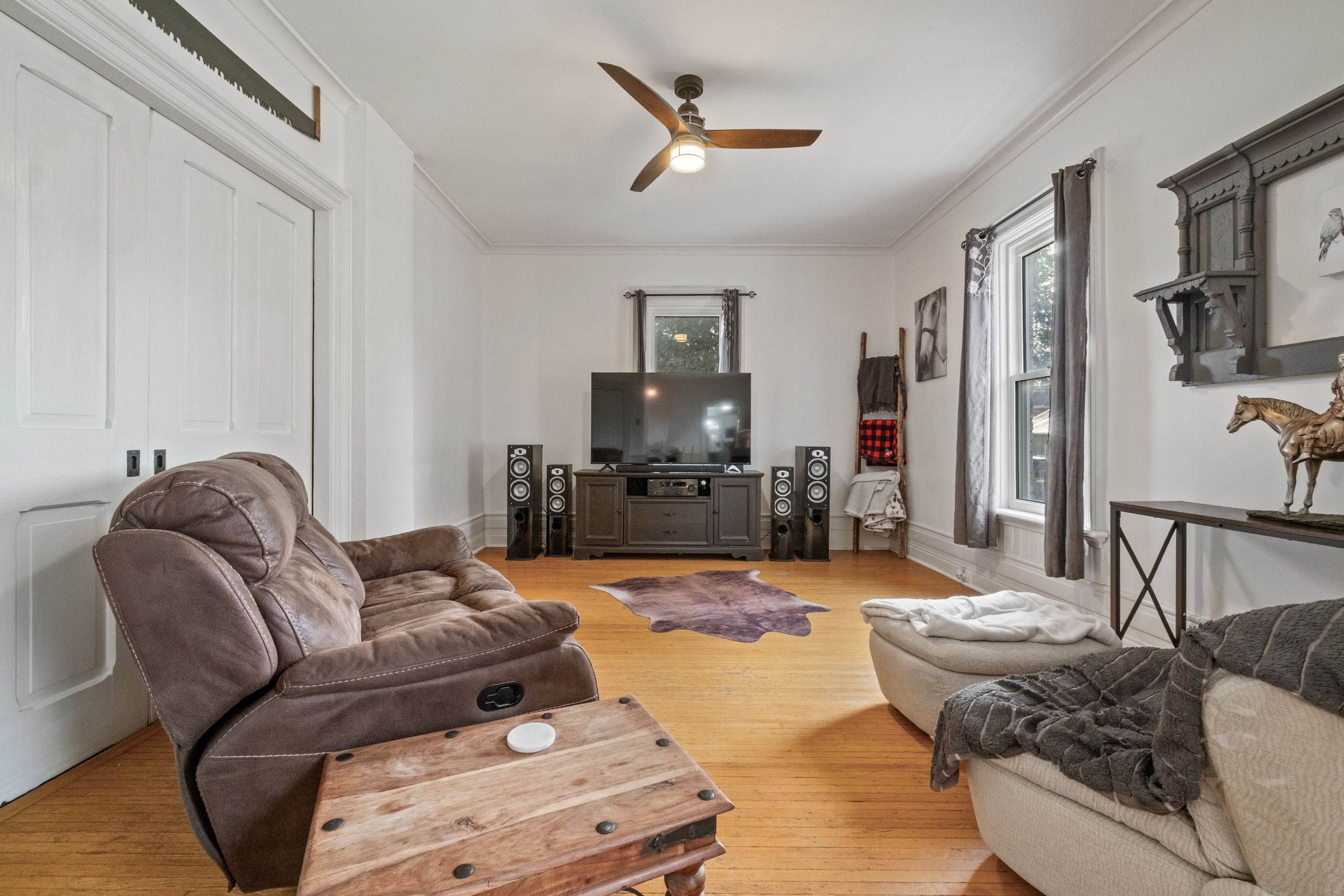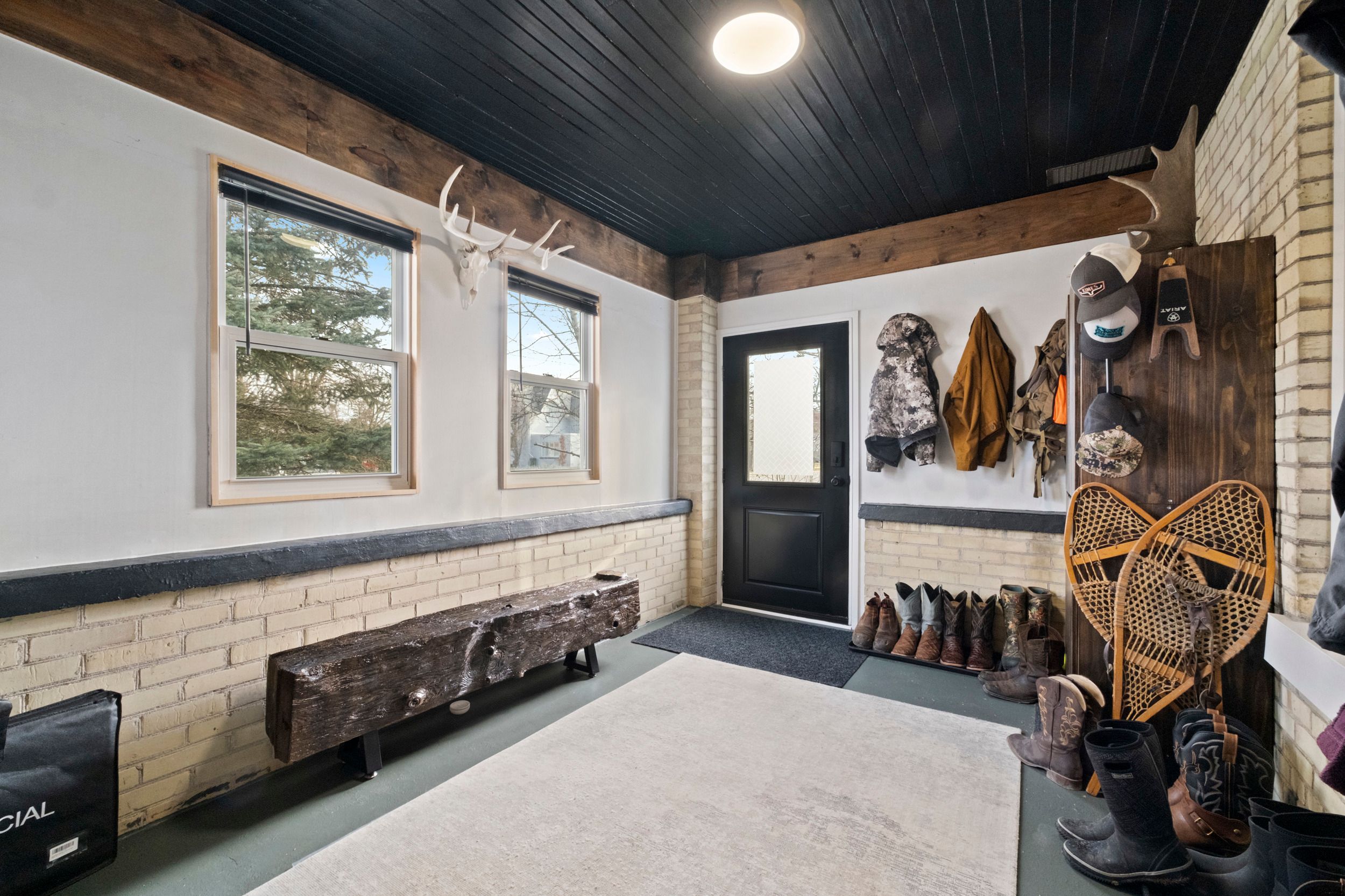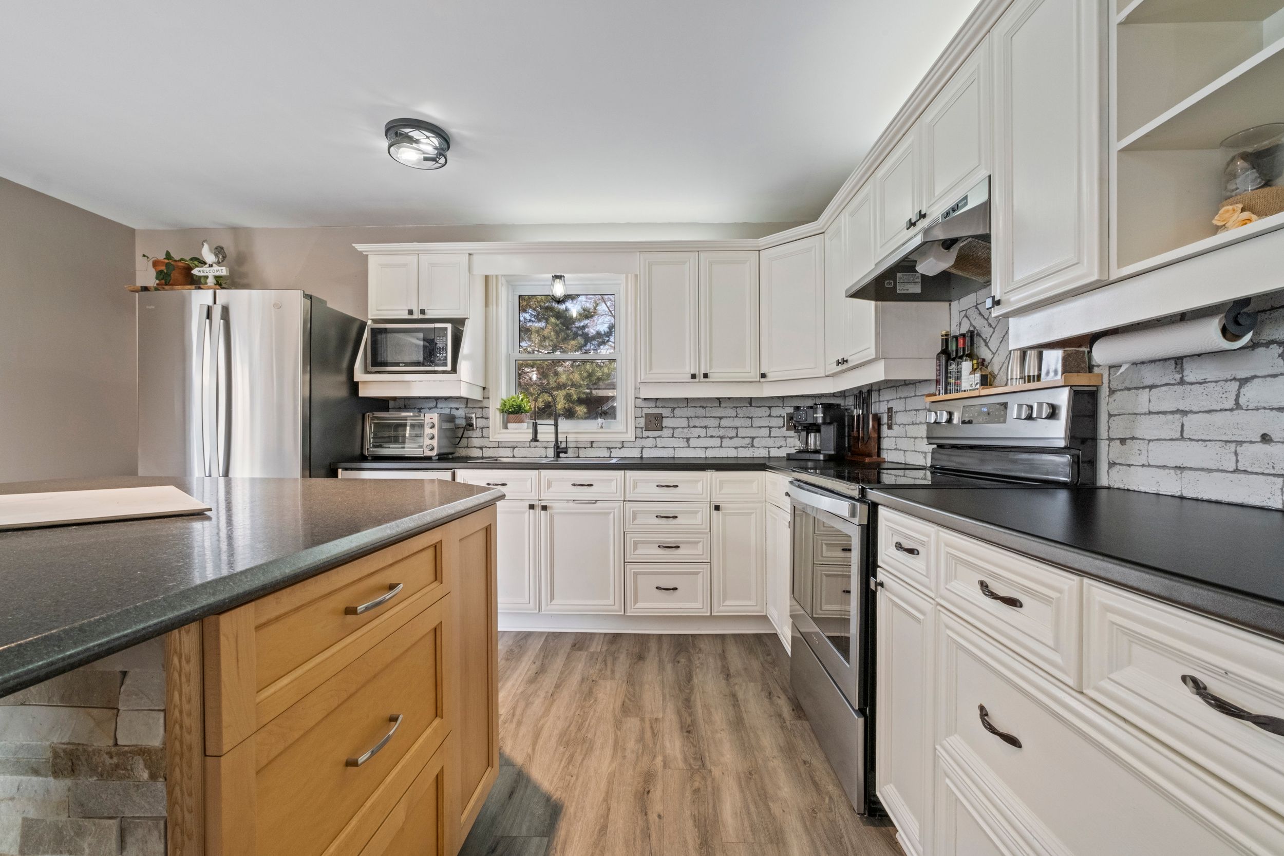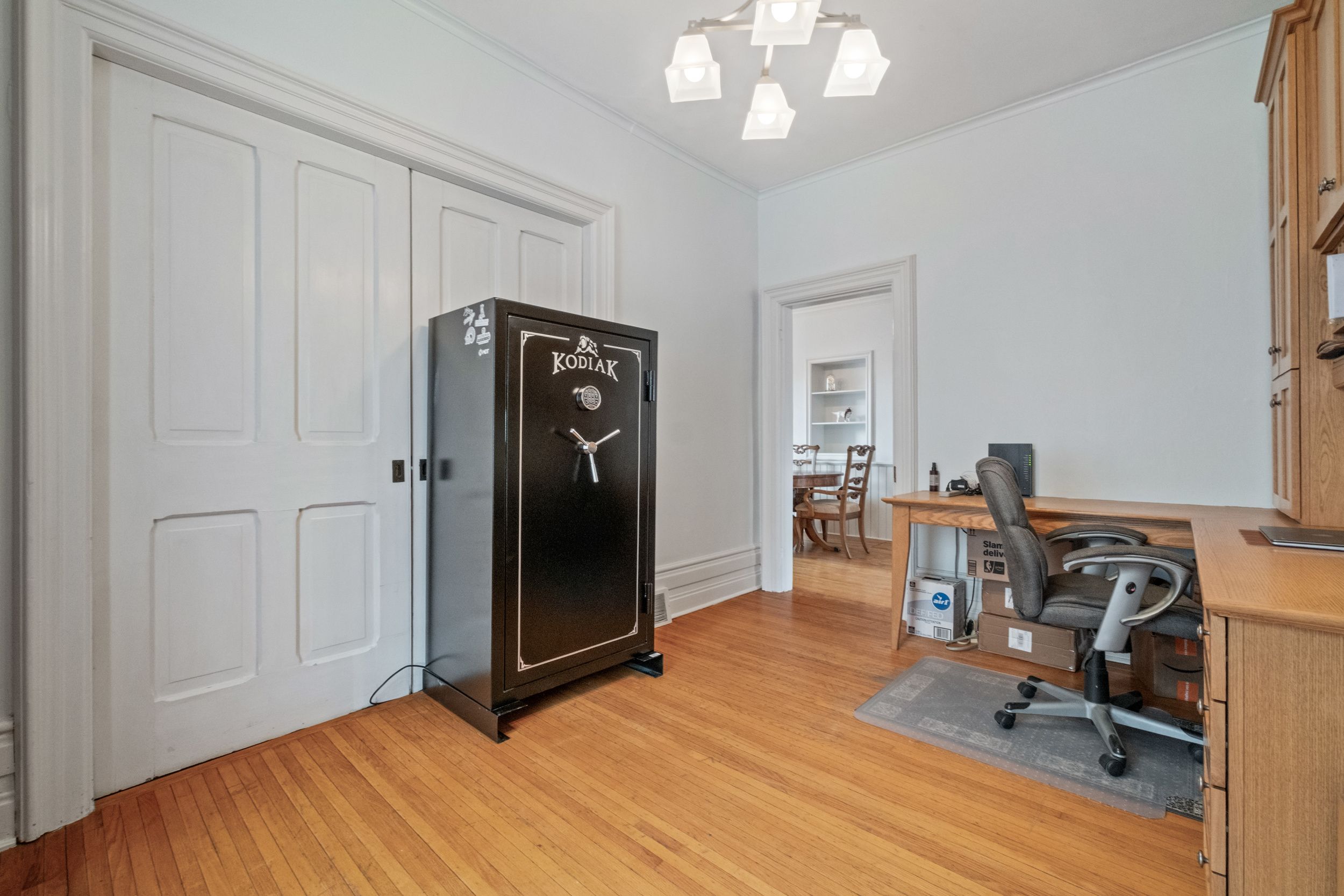 This charming yellow brick 2-storey home offers a blend of character and functionality in the heart of hensall, complemented by incredible curb appeal. Featuring 4 bedrooms and 2 bathrooms, the home includes a spacious kitchen with island seating and appliances that flows seamlessly into a large dining area and inviting living room, highlighted by a striking 3-sided fireplace. Hardwood floors, high ceilings, and original details such as pocket doors add timeless appeal, while a dedicated office space with built-ins enhances everyday living. A thoughtfully designed mudroom with direct access from nelson street adds convenience for busy households. Upstairs, you'll find four well-sized bedrooms, a 4-piece bathroom, and the added convenience of second-floor laundry. The basement provides excellent storage, a 2-piece bathroom, and in-floor heating in the addition for added comfort. Mechanical updates include 200-amp electrical service and central air (2022). Set on a fully fenced lot, the outdoor space is ideal for entertaining, featuring a two-tier deck, two gazebos, and an outdoor kitchen with hydro. A detached insulated shop with a concrete floor and steel exterior, along with a separate guest or pool house with hydro, adds versatility. The expansive lot also offers potential for severance (buyer to verify), presenting additional future opportunity. Complete with a double-wide paved driveway, this property delivers space, character, and flexibility both inside and out.