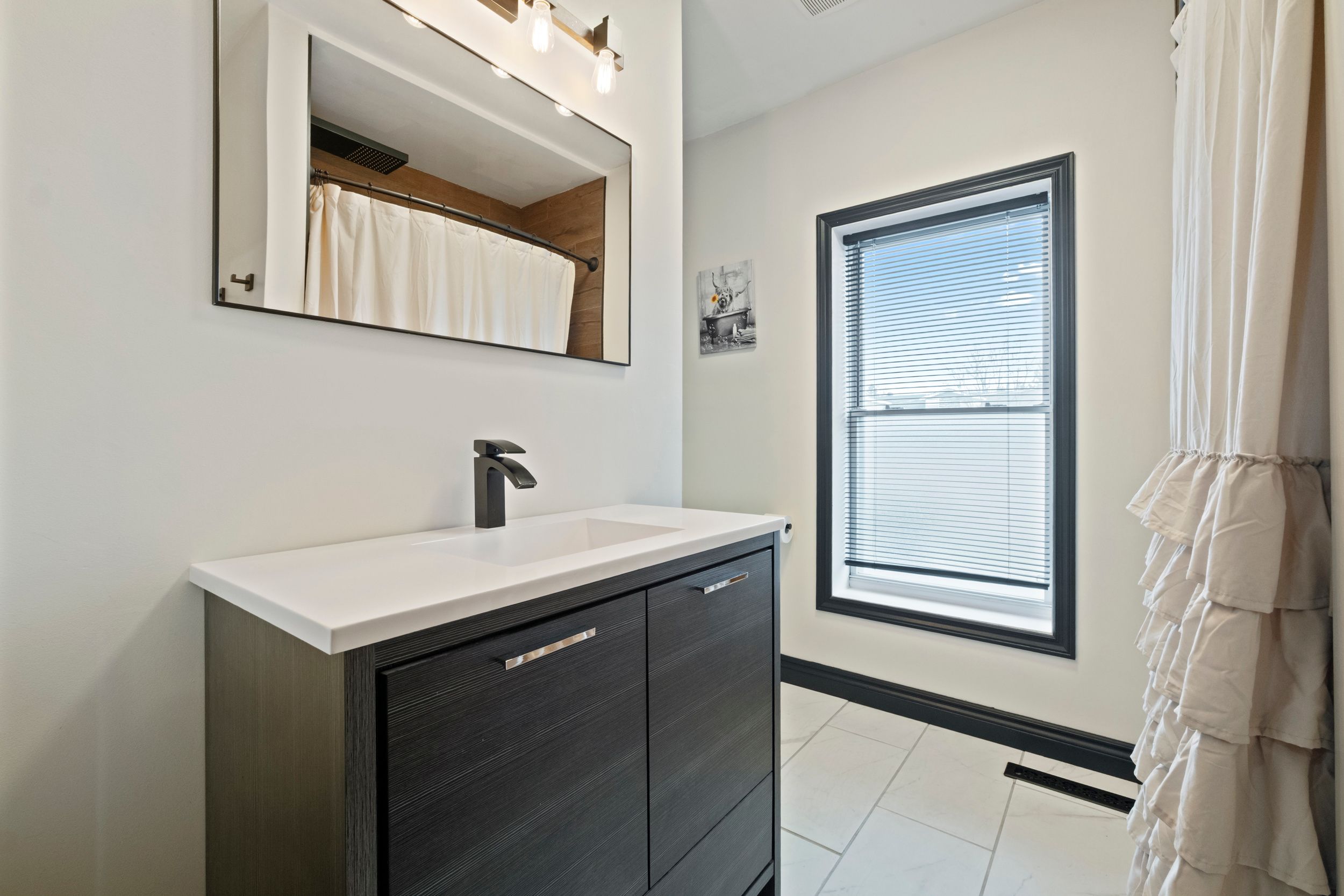 • Fully fenced lot with two-tier deck and outdoor kitchen for entertaining.