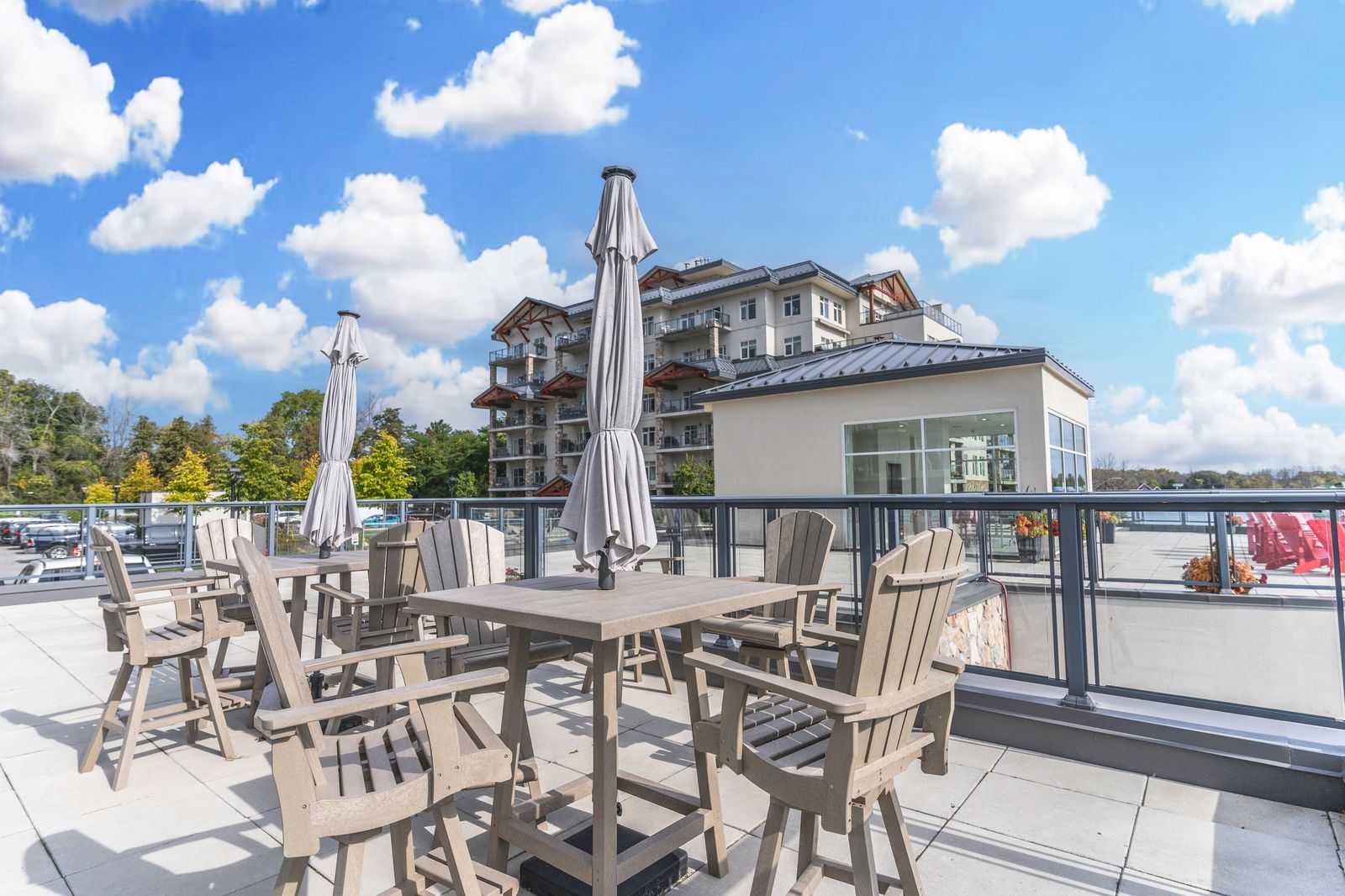 • Resort-style amenities including infinity pool, hot tub, and fitness centre.